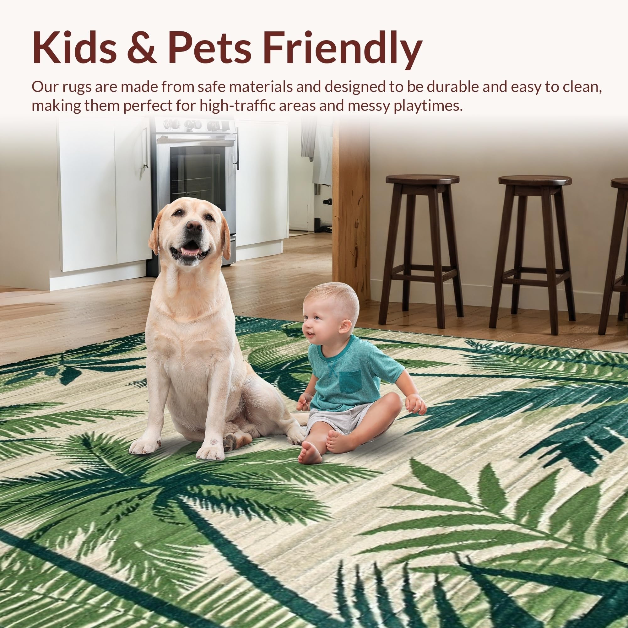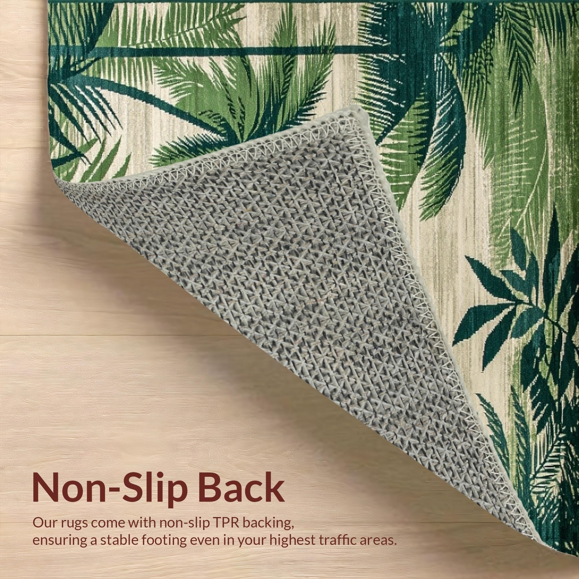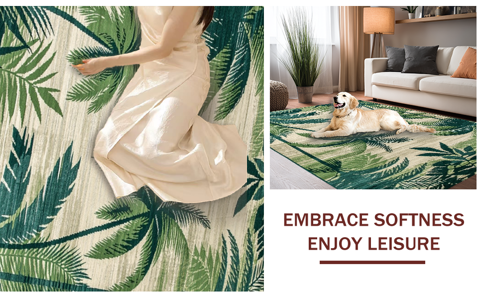 Ultra Soft Area Rug, Non Slip, Stain Resistant, Washable Area Rugs for Living Room, Bedroom, Chic Warm Toned Botanical Design(Green) Overview: