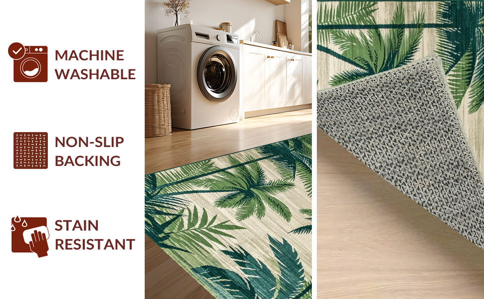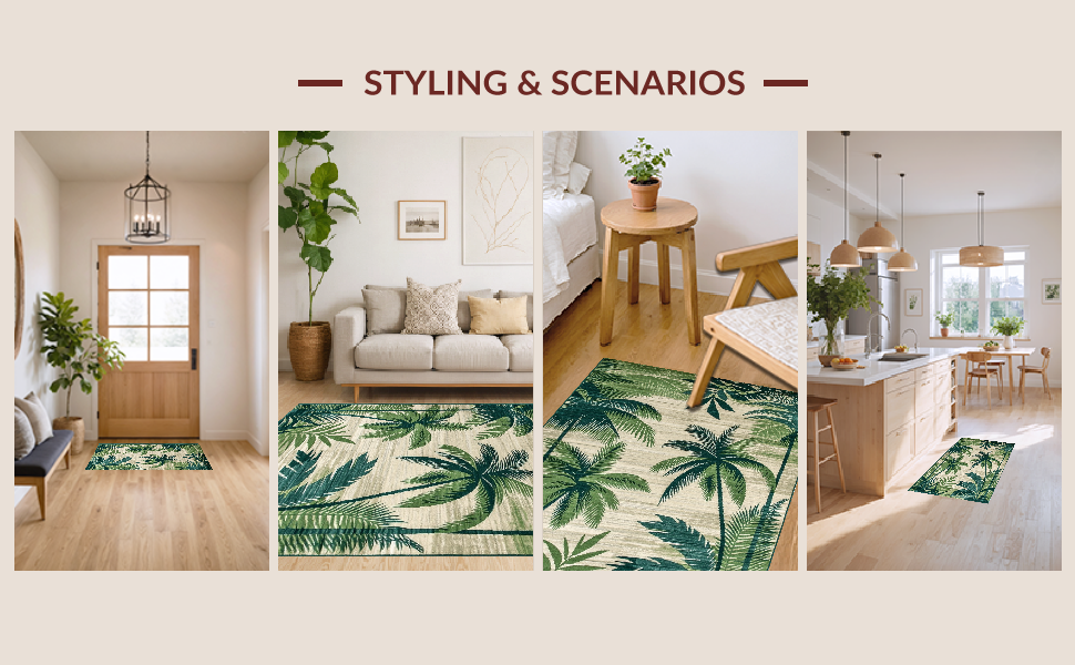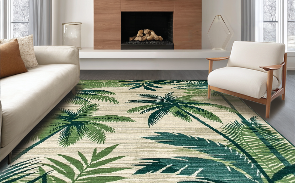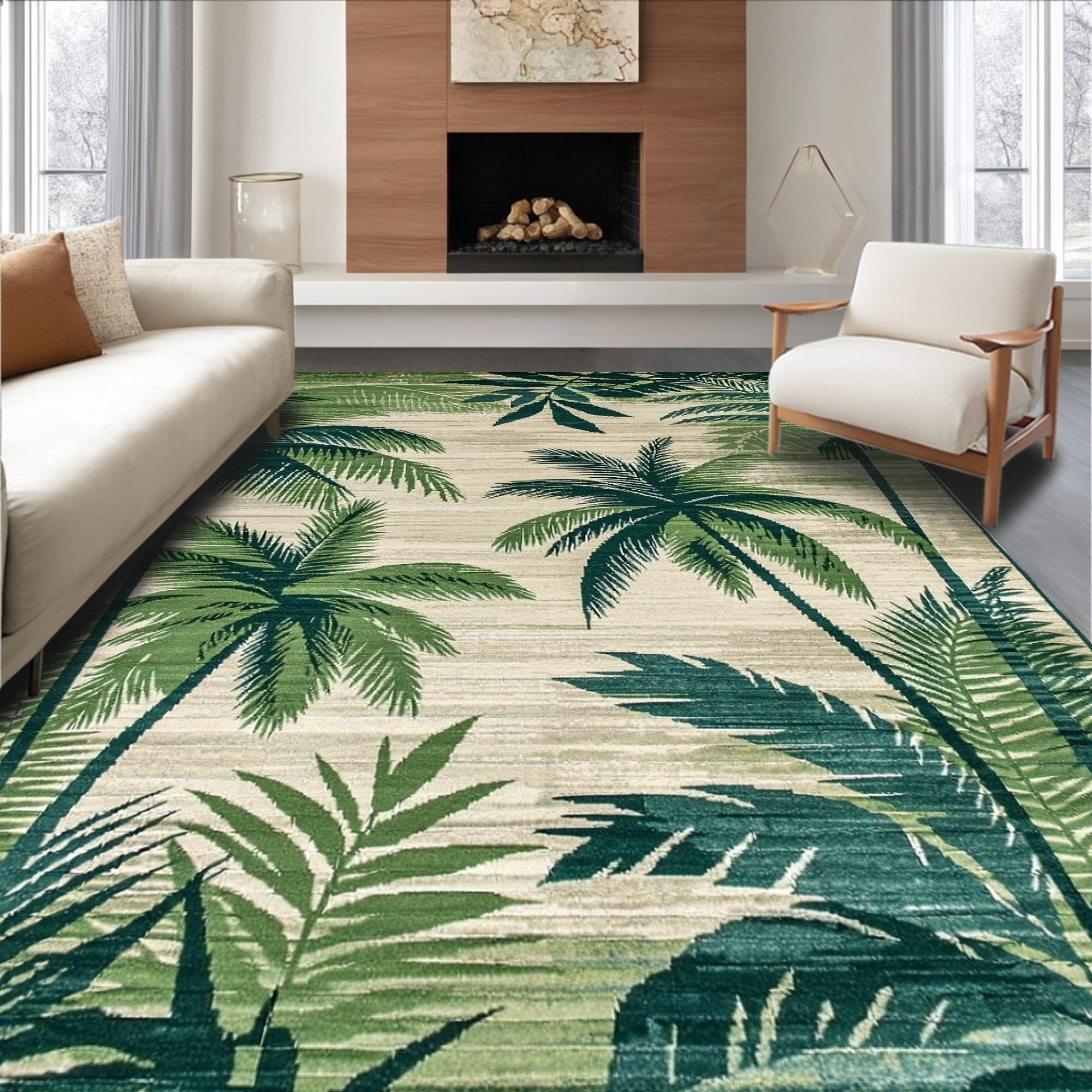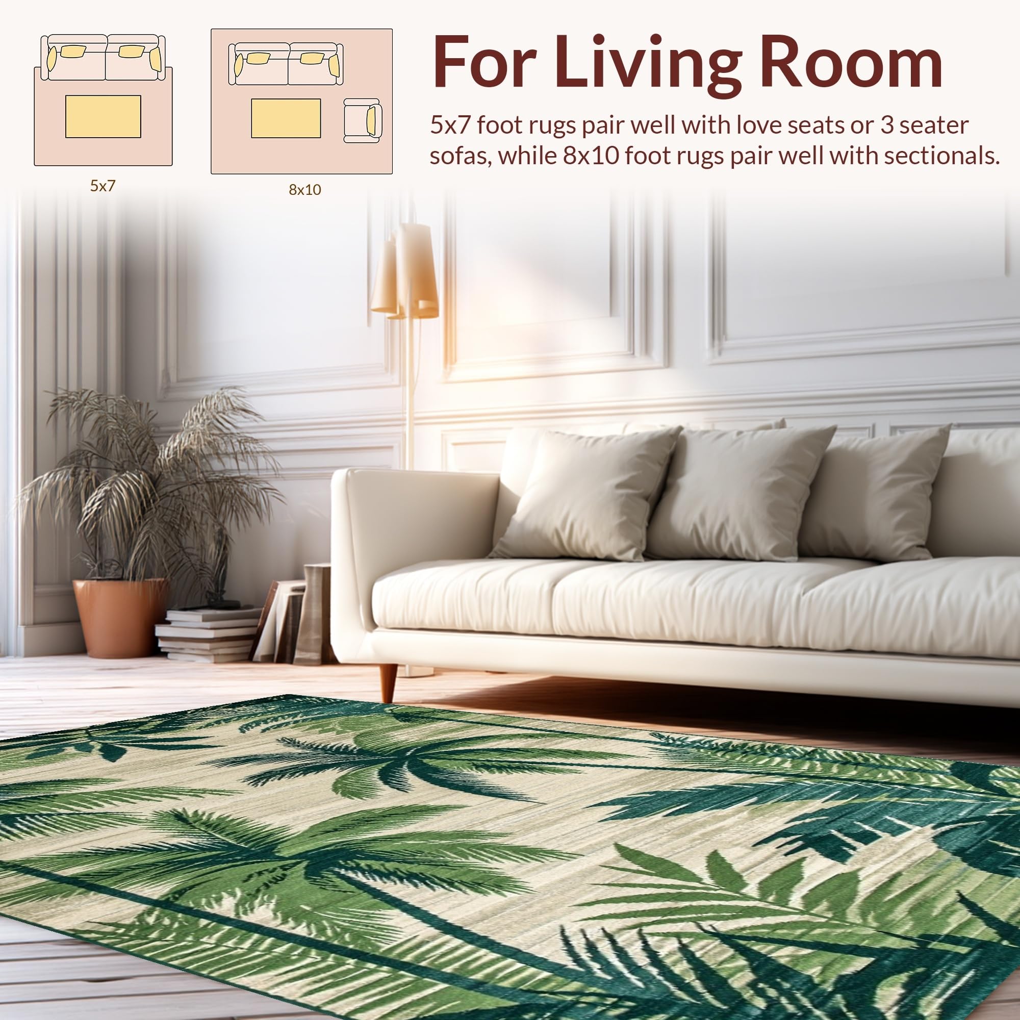 Ultra Soft Area Rug, Non Slip, Stain Resistant, Washable Area Rugs for Living Room, Bedroom, Chic Warm Toned Botanical Design(Green) Overview: