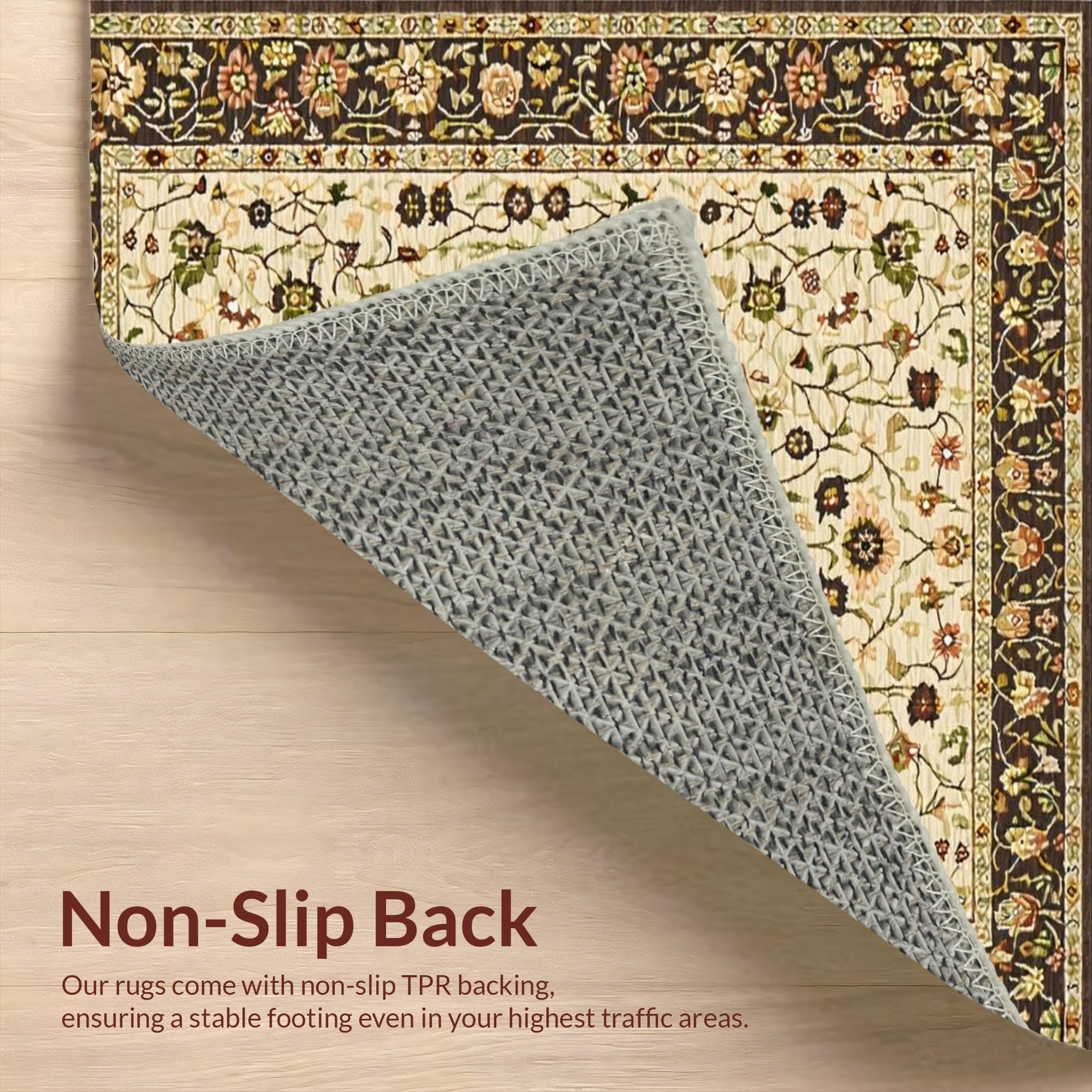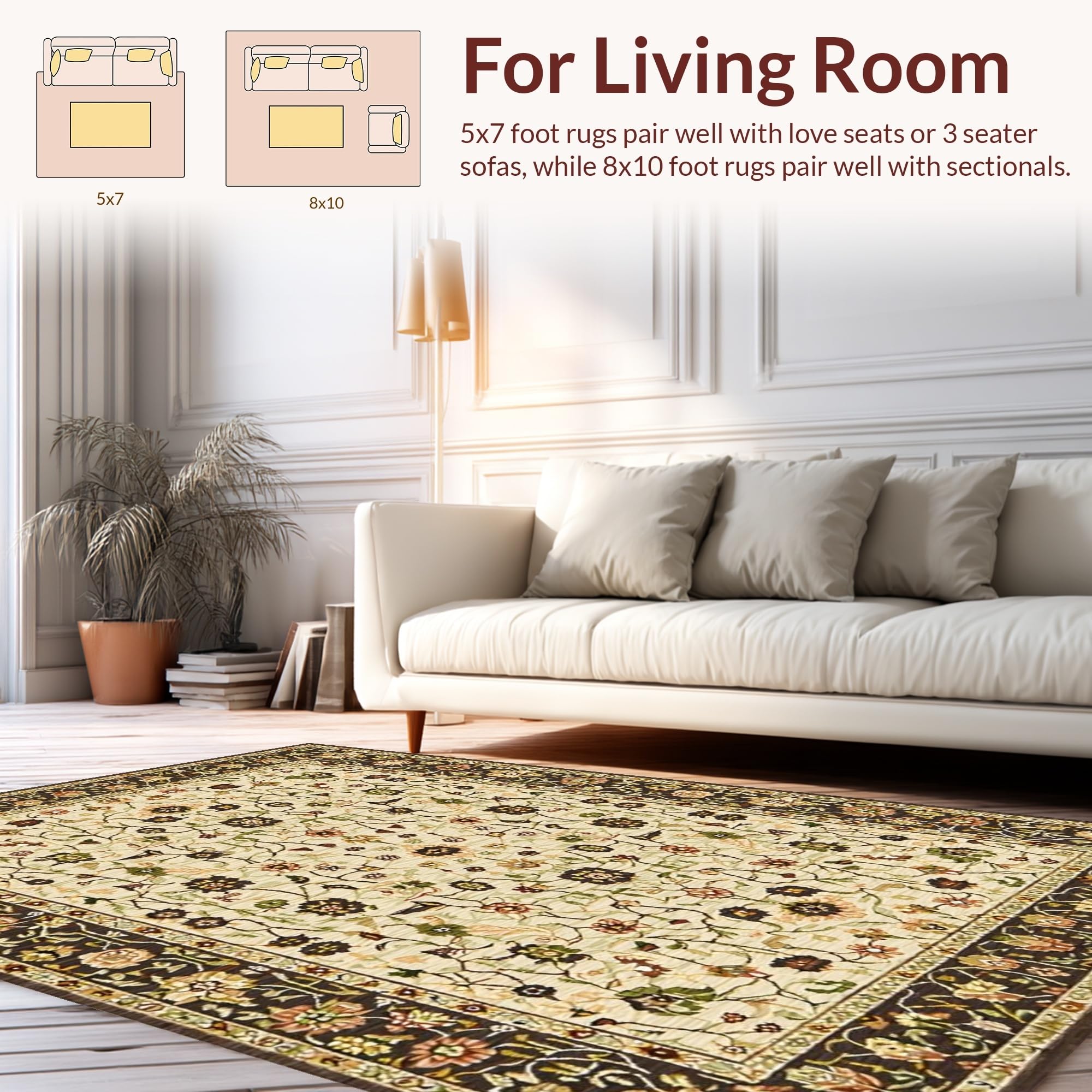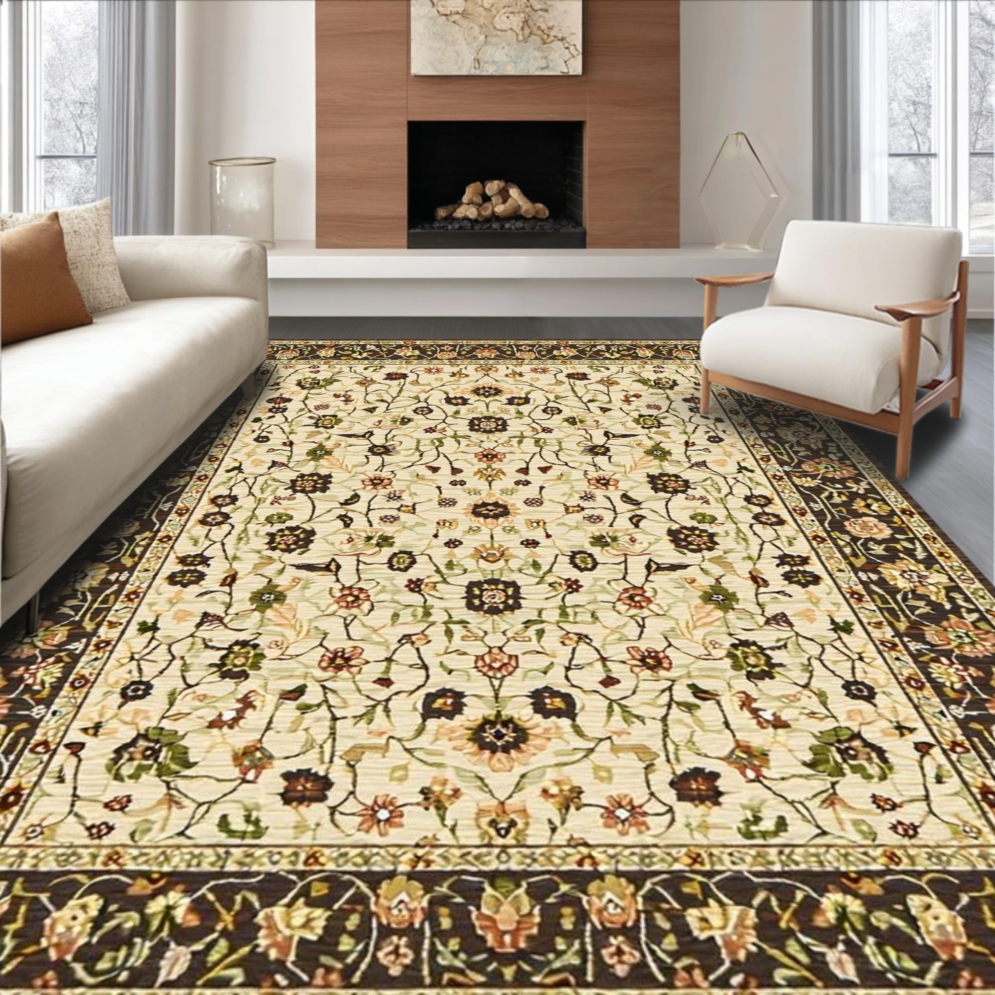 Ultra Soft Area Rug, Non Slip, Stain Resistant, Washable Area Rugs for Living Room, Bedroom, Chic Warm Tones Floral Arrangement(Beige) Overview: