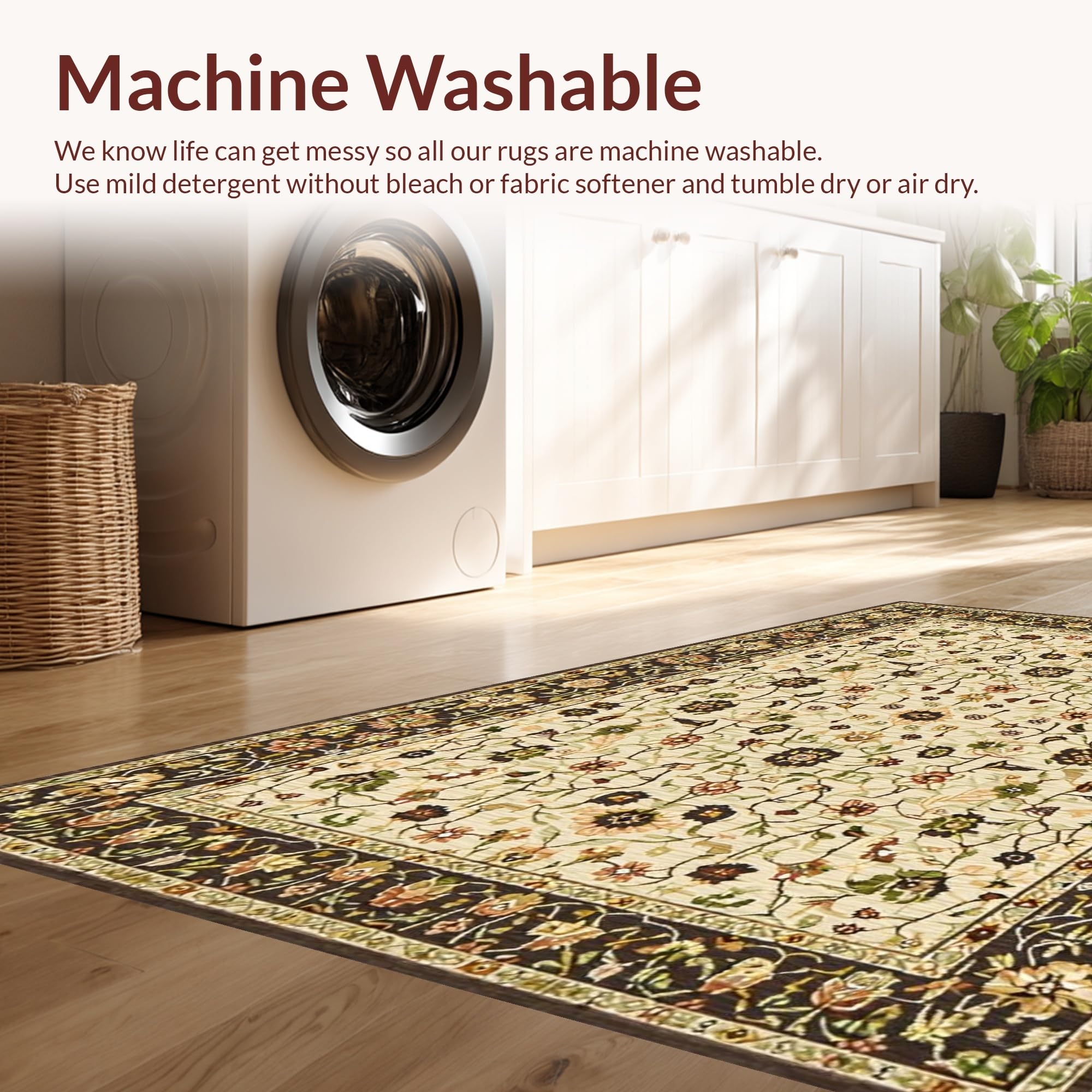 - Machine Washable: Our rugs can be easily thrown in the wash machine.