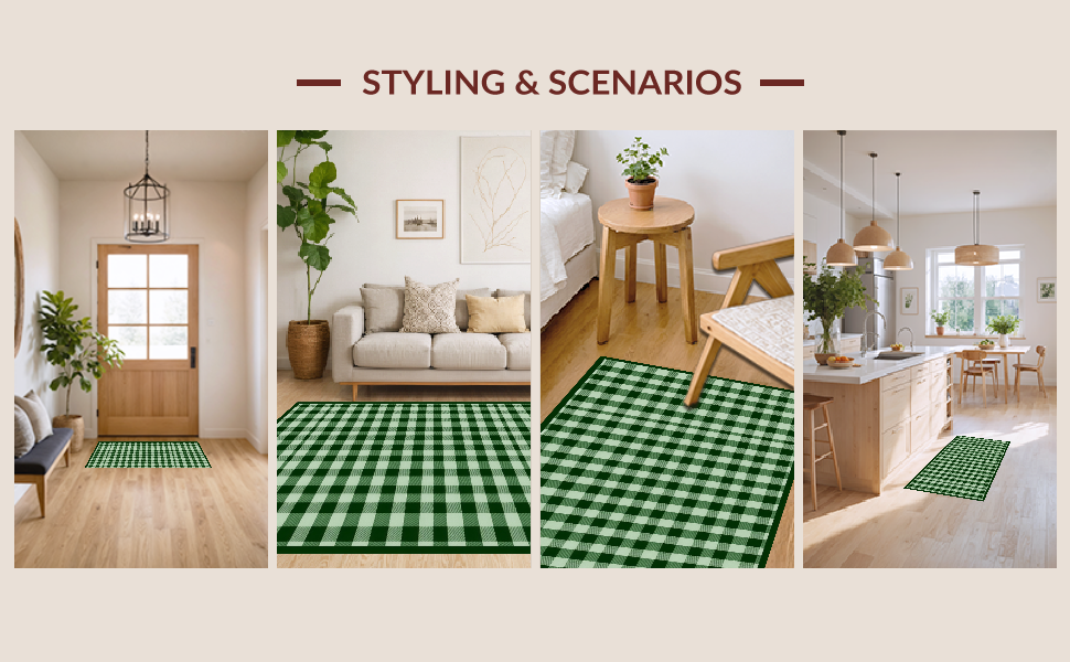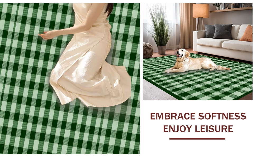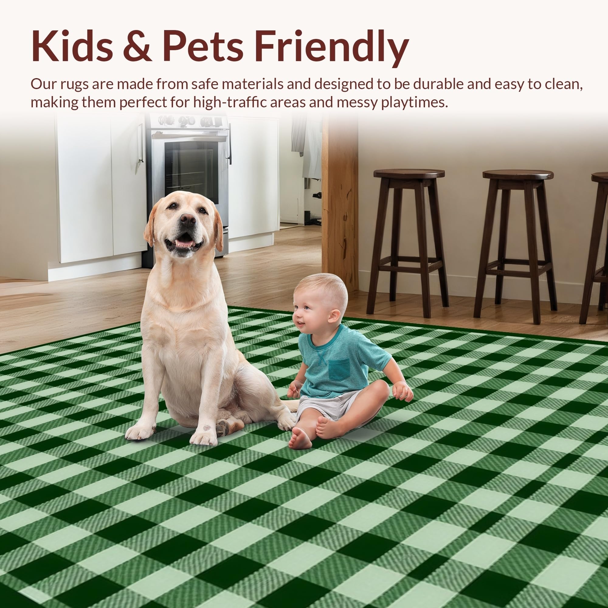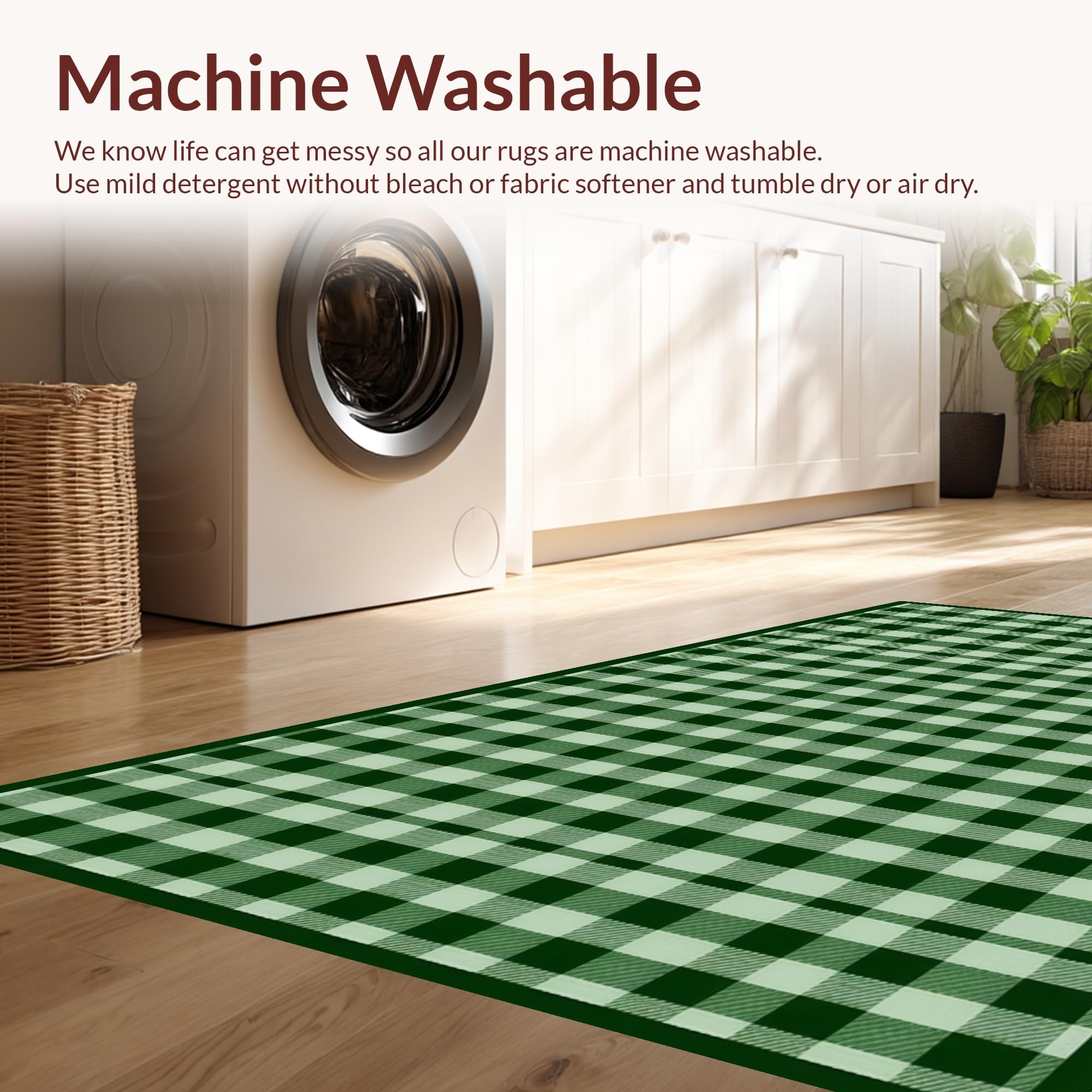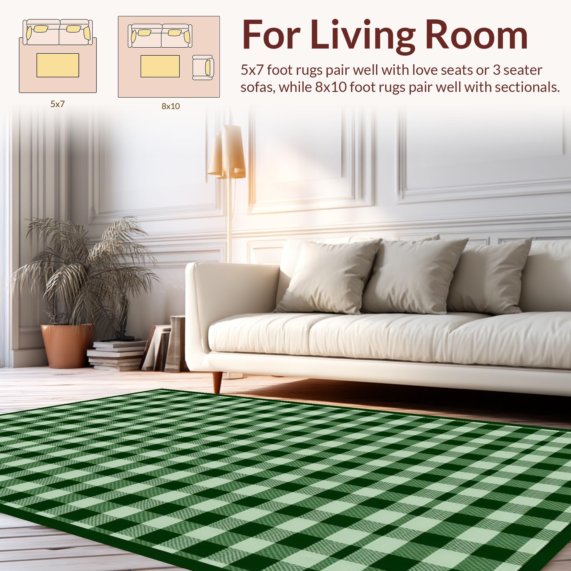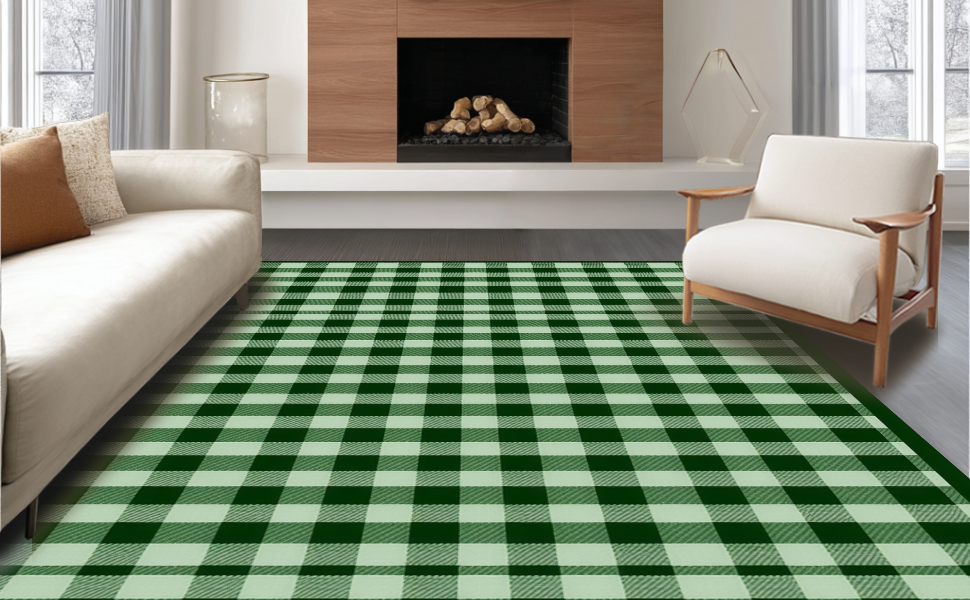 Ultra Soft Area Rug, Non Slip, Stain Resistant, Washable Area Rugs for Living Room, Bedroom, Chic White Checkered Farmhouse Aesthetic(Green) Overview: