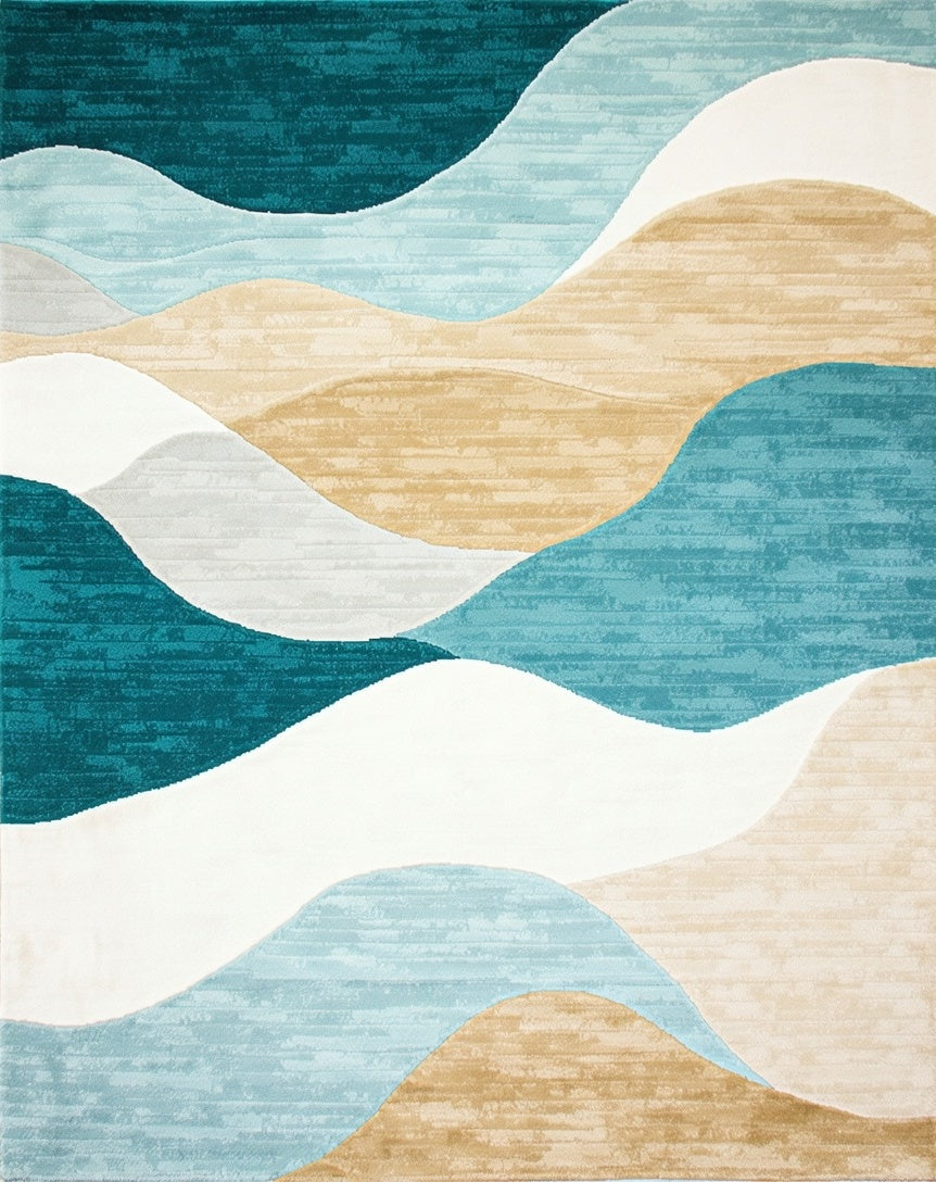 Ultra Soft Area Rug, Non Slip, Stain Resistant, Washable Area Rugs for Living Room, Bedroom, Chic Woven Area with Abstract Coastal Design(Blue) Overview: