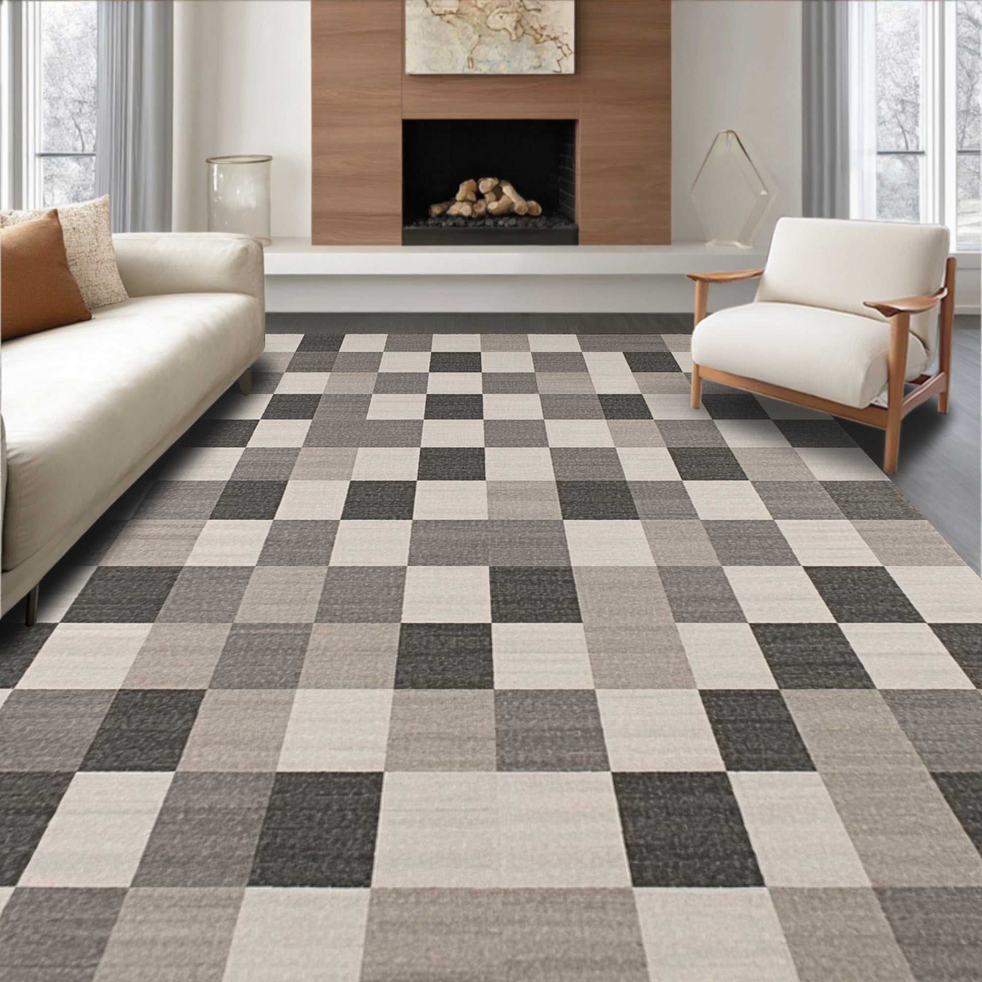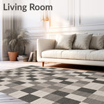 Ultra Soft Area Rug, Non Slip, Stain Resistant, Washable Area Rugs for Living Room, Bedroom, Chris Loves FRA Neutral Checkerboard Accent(Gray) Overview: