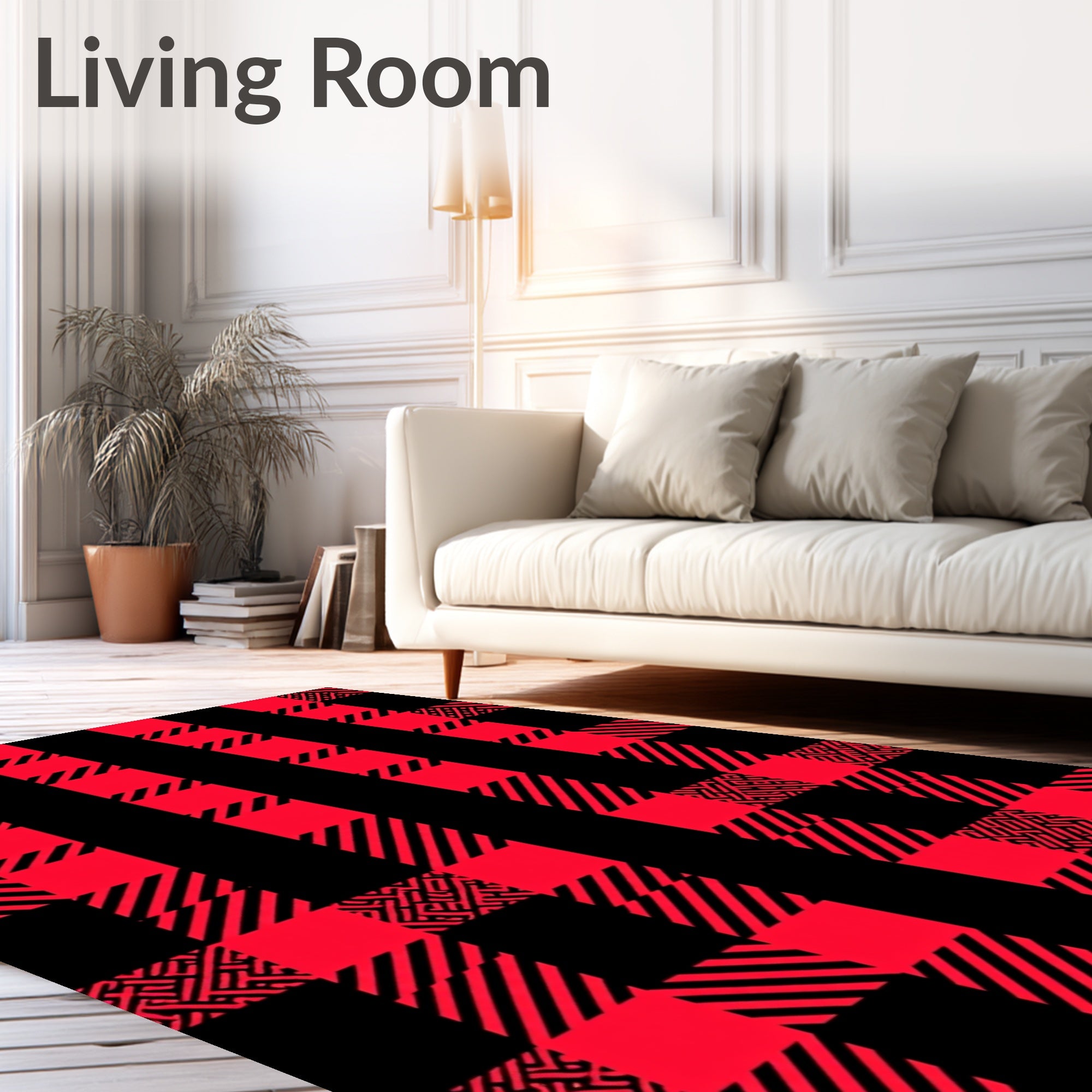 Ultra Soft Area Rug, Non Slip, Stain Resistant, Washable Area Rugs for Living Room, Bedroom, Christmas Checkered Welcome Displaying Crisscross Line Formation(Red) Overview: