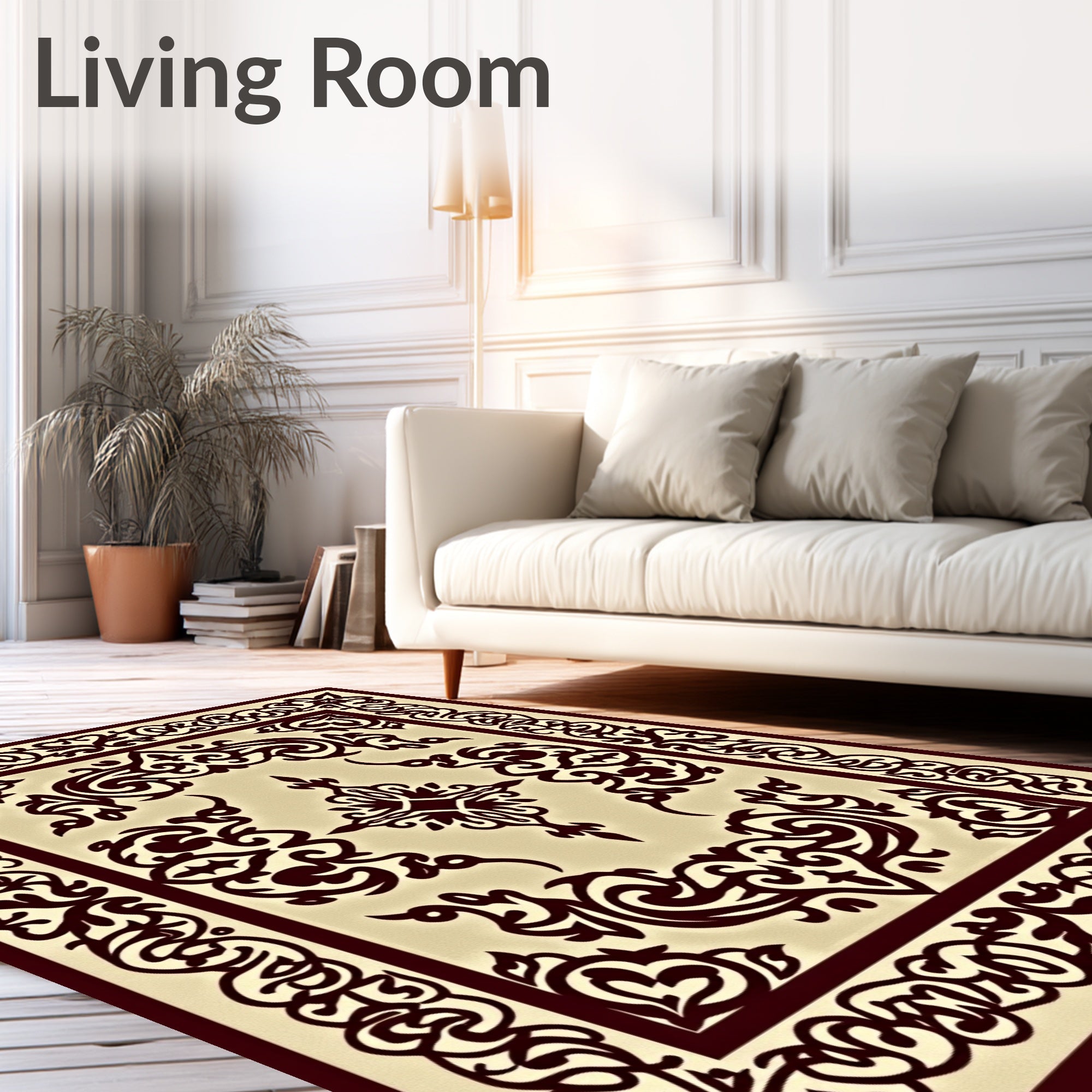 Ultra Soft Area Rug, Non Slip, Stain Resistant, Washable Area Rugs for Living Room, Bedroom, Christmas Damask Baroque Holiday Scroll Floor(Beige) Overview: