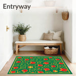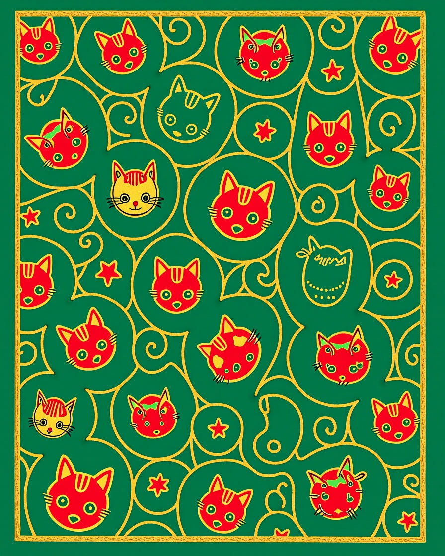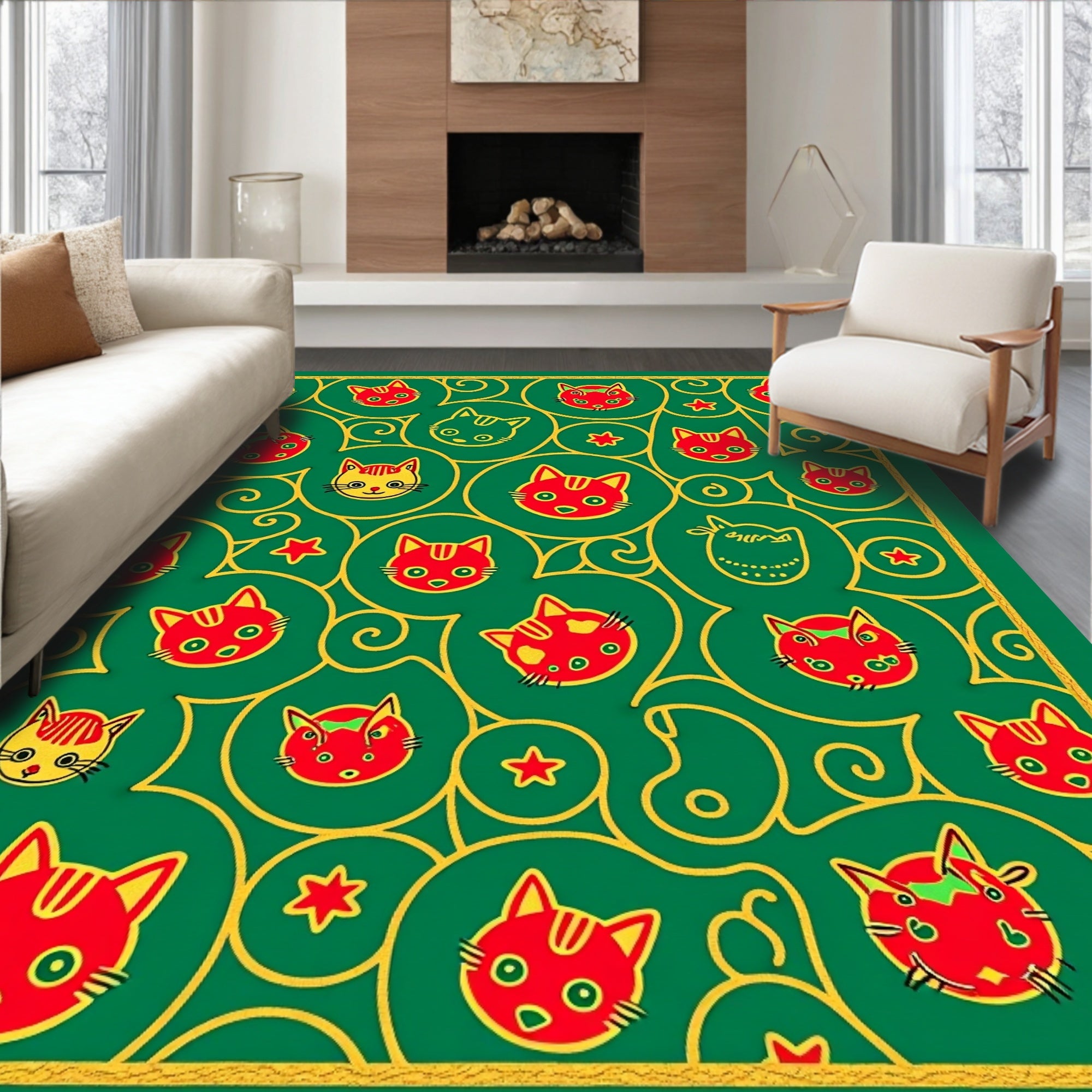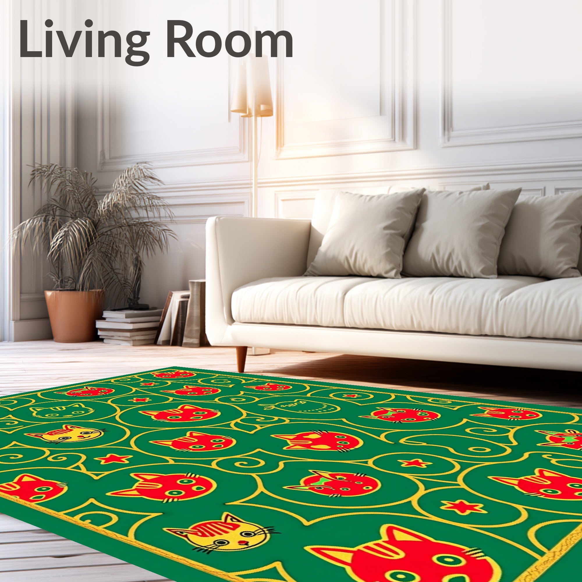 Ultra Soft Area Rug, Non Slip, Stain Resistant, Washable Area Rugs for Living Room, Bedroom, Christmas Mischief with Illuminated Kitty Shape and Scattered Ornament Design(Green) Overview: