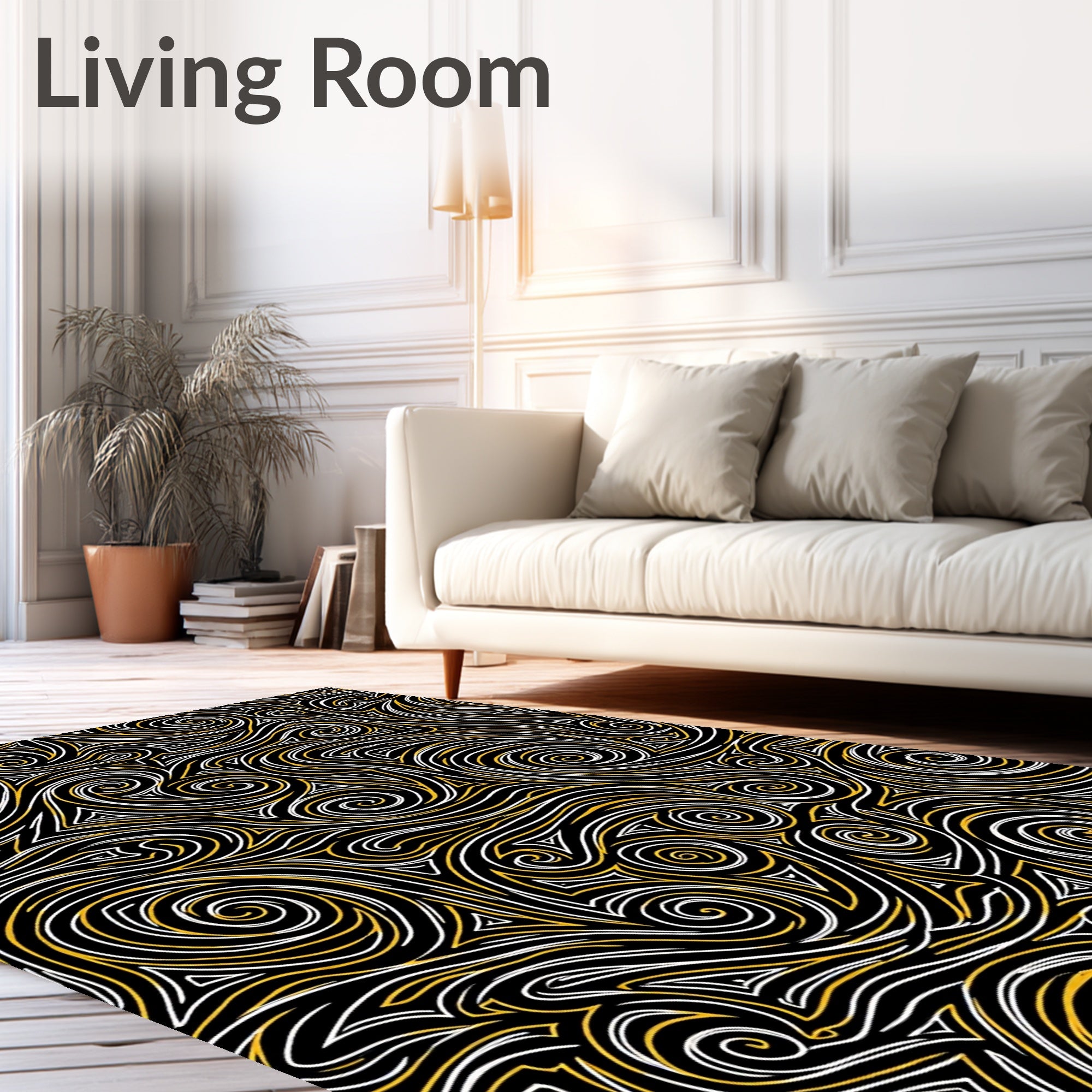 Ultra Soft Area Rug, Non Slip, Stain Resistant, Washable Area Rugs for Living Room, Bedroom, Christmas Swirl Festive Holiday Decorative(Black) Overview: