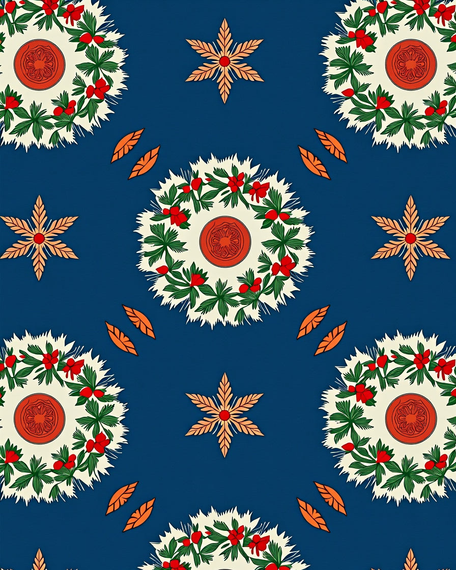 Christmas Wreath Medallion Design Celebration Floor Accent(Blue)