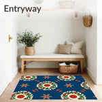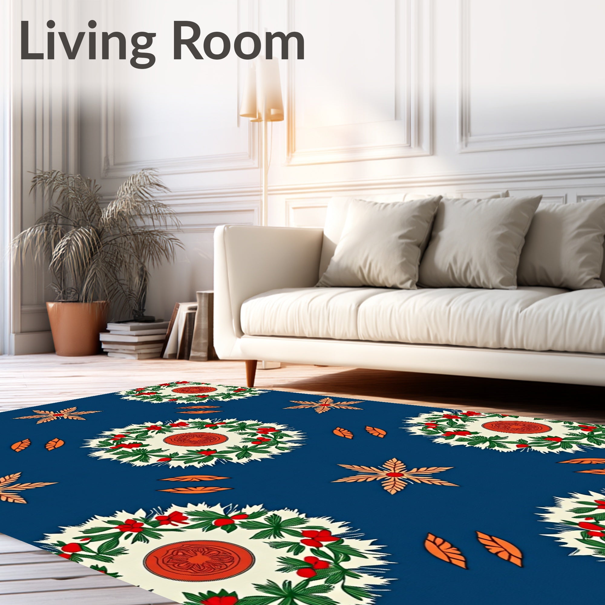 Ultra Soft Area Rug, Non Slip, Stain Resistant, Washable Area Rugs for Living Room, Bedroom, Christmas Wreath Medallion Design Celebration Floor Accent(Blue) Overview: