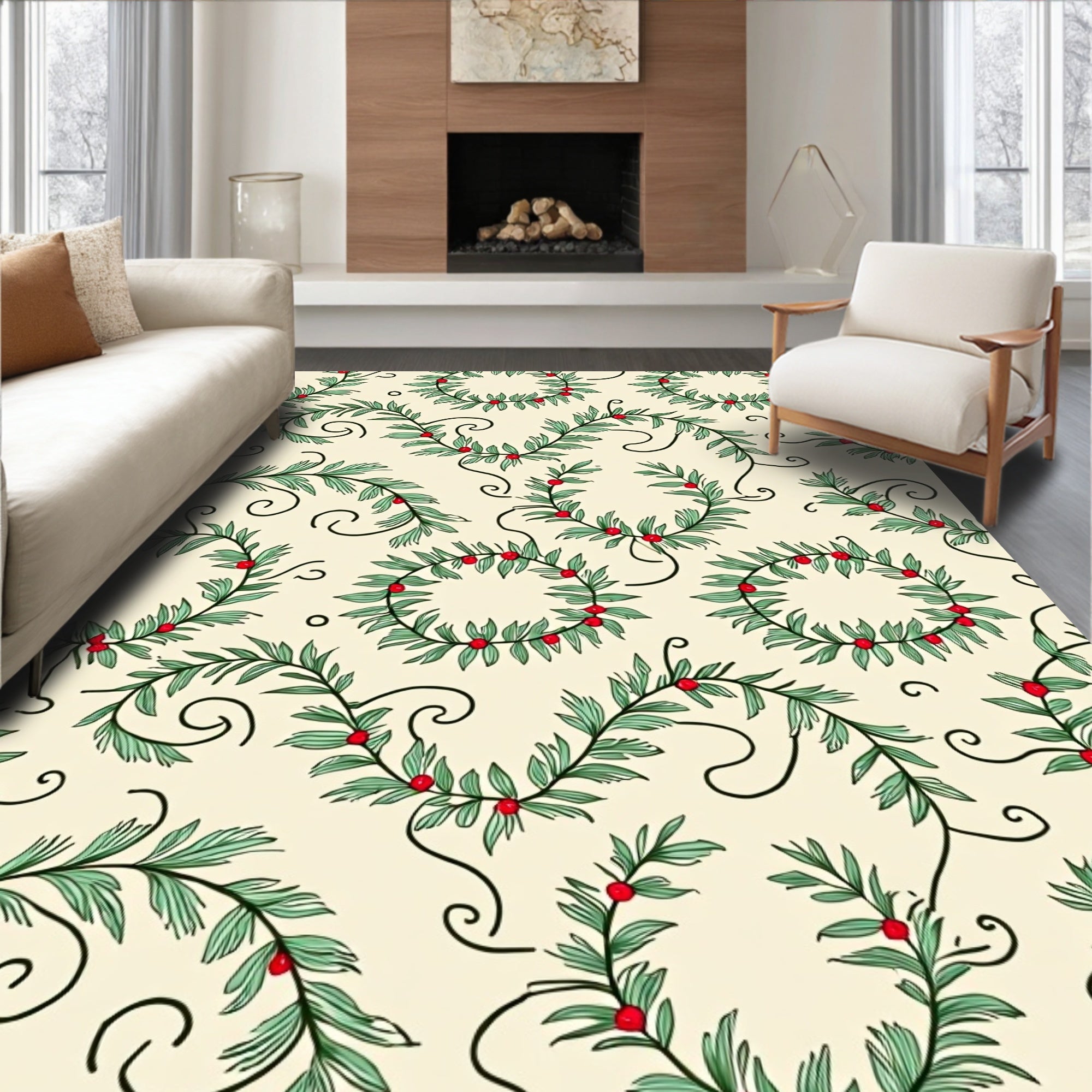 Flatwoven High Traffic Area Rug, Christmas Wreath Swirl, Non Slip, Stain Resistant, Washable Area Rugs for Living Room, Bedroom (Beige) Overview: