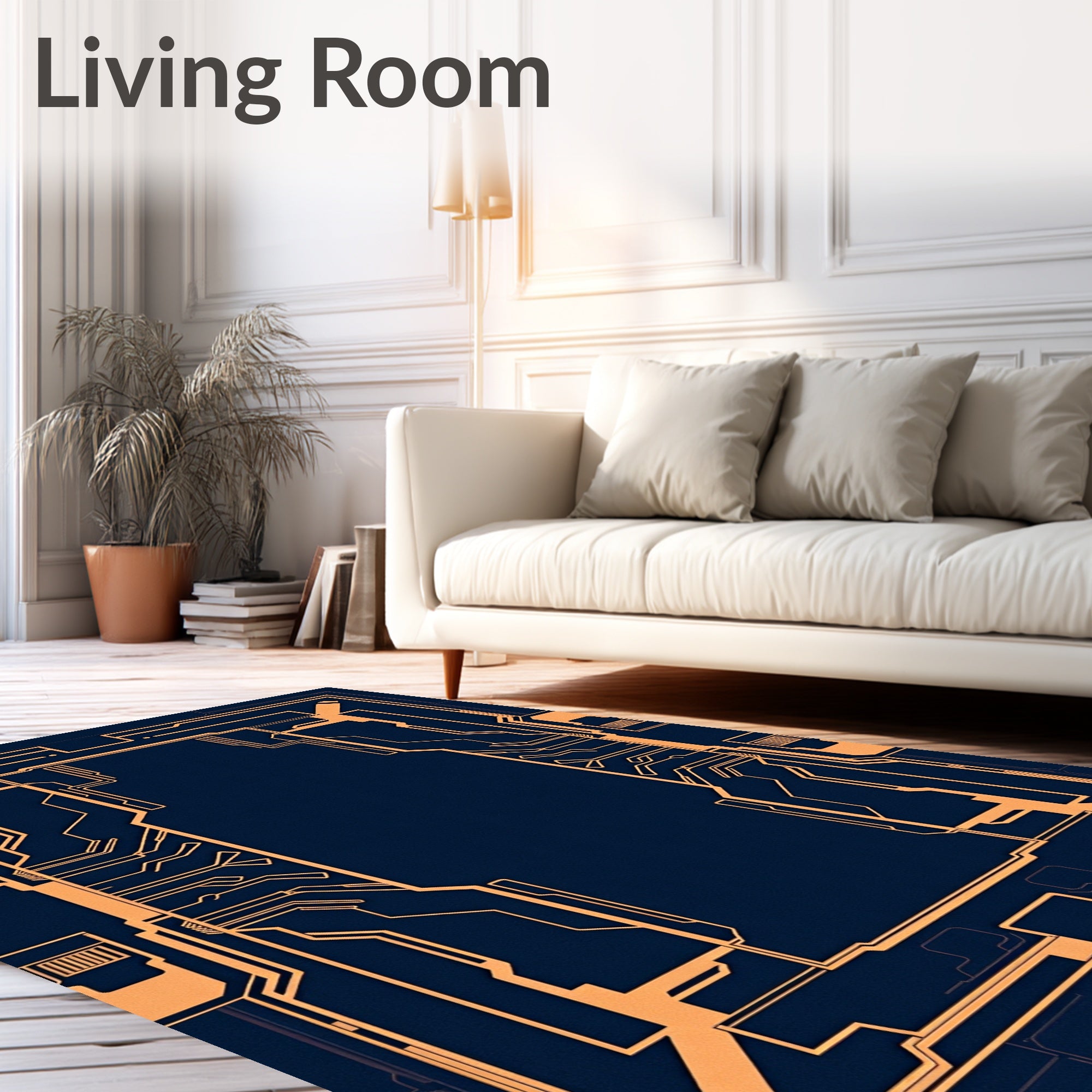 Ultra Soft Area Rug, Non Slip, Stain Resistant, Washable Area Rugs for Living Room, Bedroom, Circuit Board Microchip Technology Floor Anti Slip(Blue) Overview: