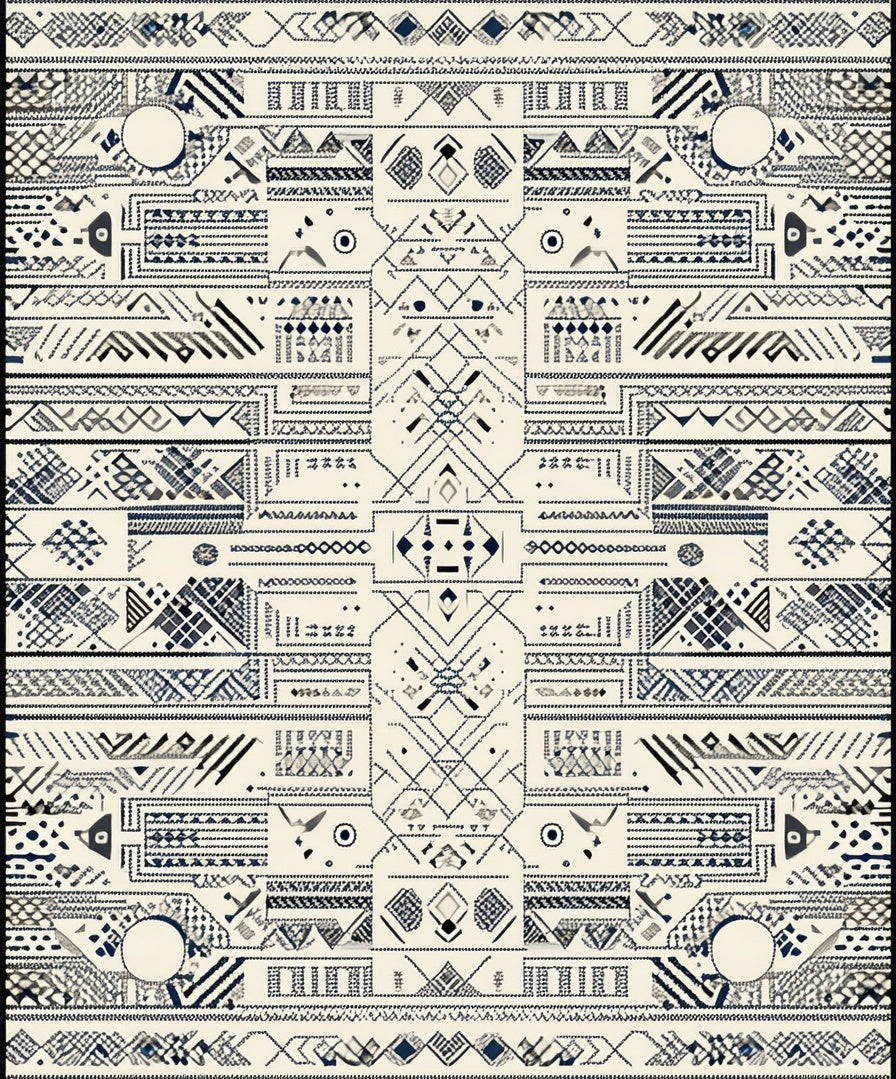 Circular Featuring Abstract Boho Tribal Lines And Geometric Shapes(Black)
