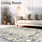 Ultra Soft Area Rug, Non Slip, Stain Resistant, Washable Area Rugs for Living Room, Bedroom, Circular Featuring Abstract Boho Tribal Lines And Geometric Shapes(Black) Overview: