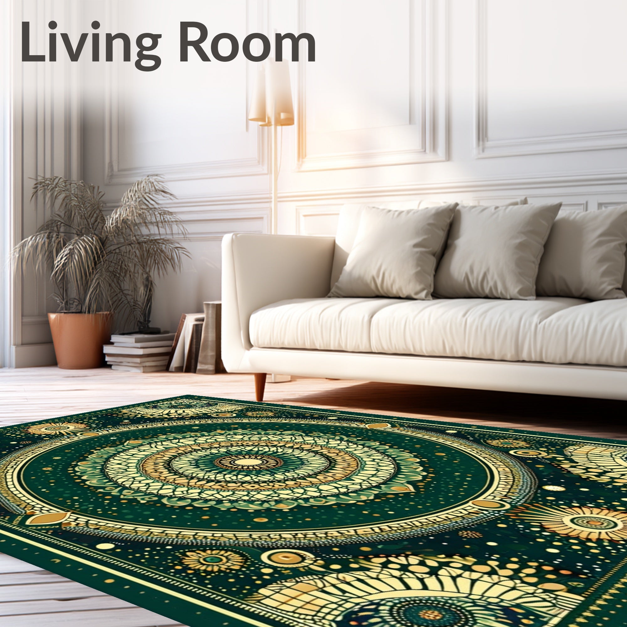 Flatwoven High Traffic Area Rug, Circular Sector Design Anti Slip Absorbent Natural Beige, Non Slip, Stain Resistant, Washable Area Rugs for Living Room, Bedroom (Green) Overview: