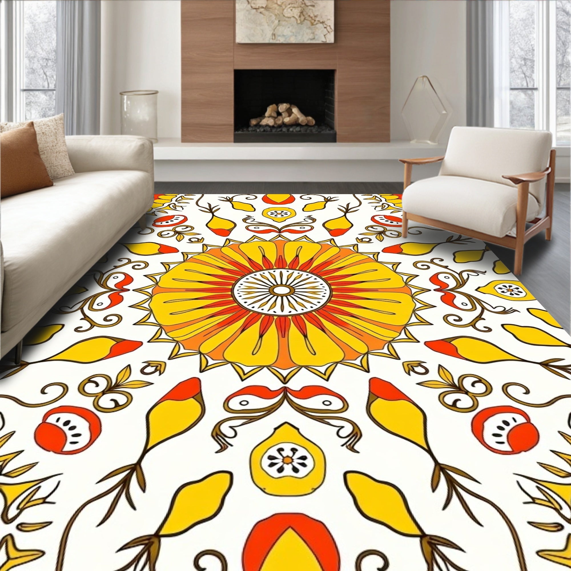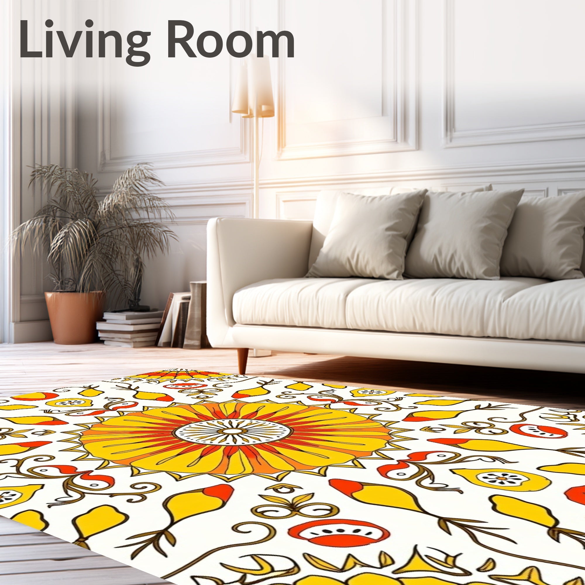 Flatwoven High Traffic Area Rug, Citrus Burst Plush Velvet, Non Slip, Stain Resistant, Washable Area Rugs for Living Room, Bedroom (Yellow) Overview: