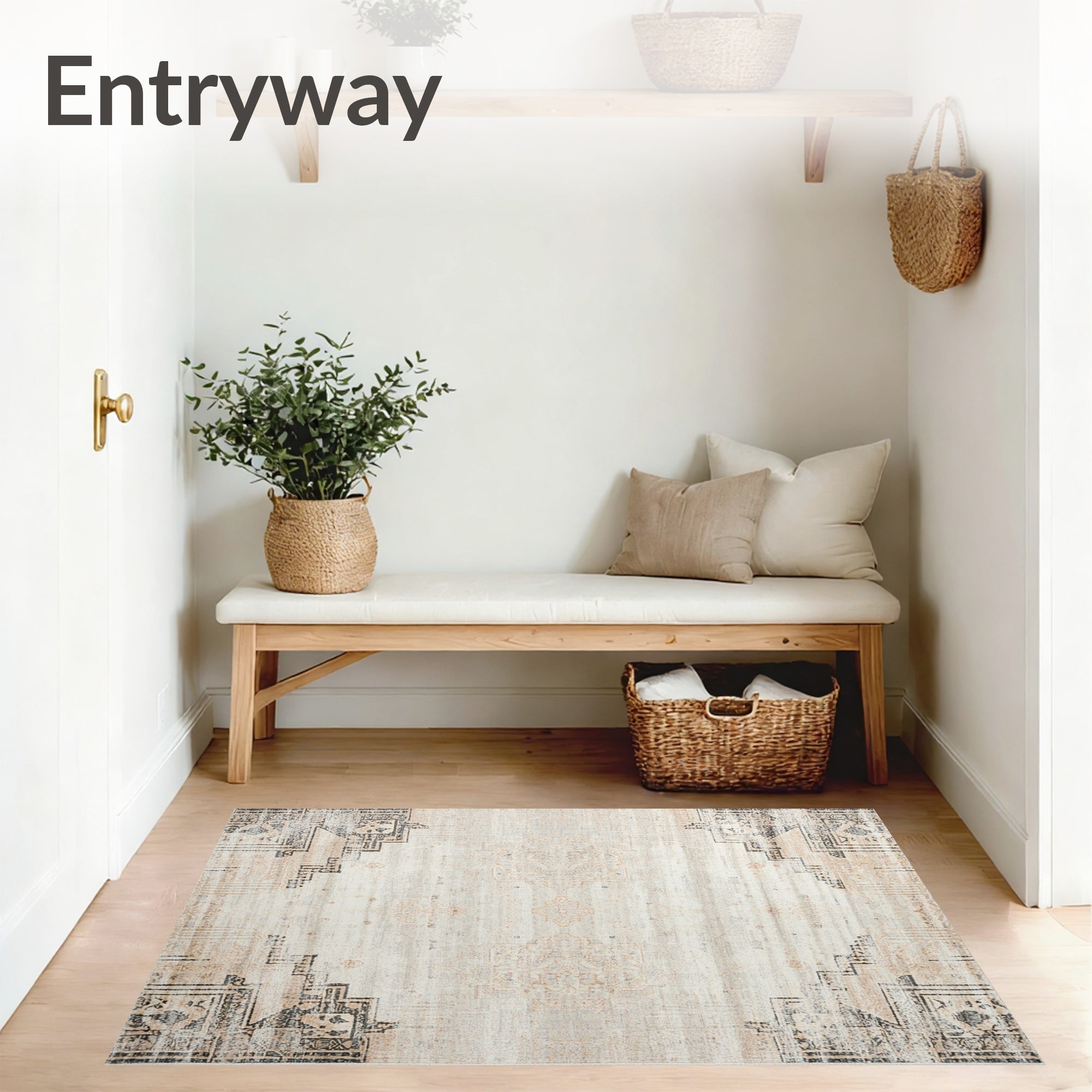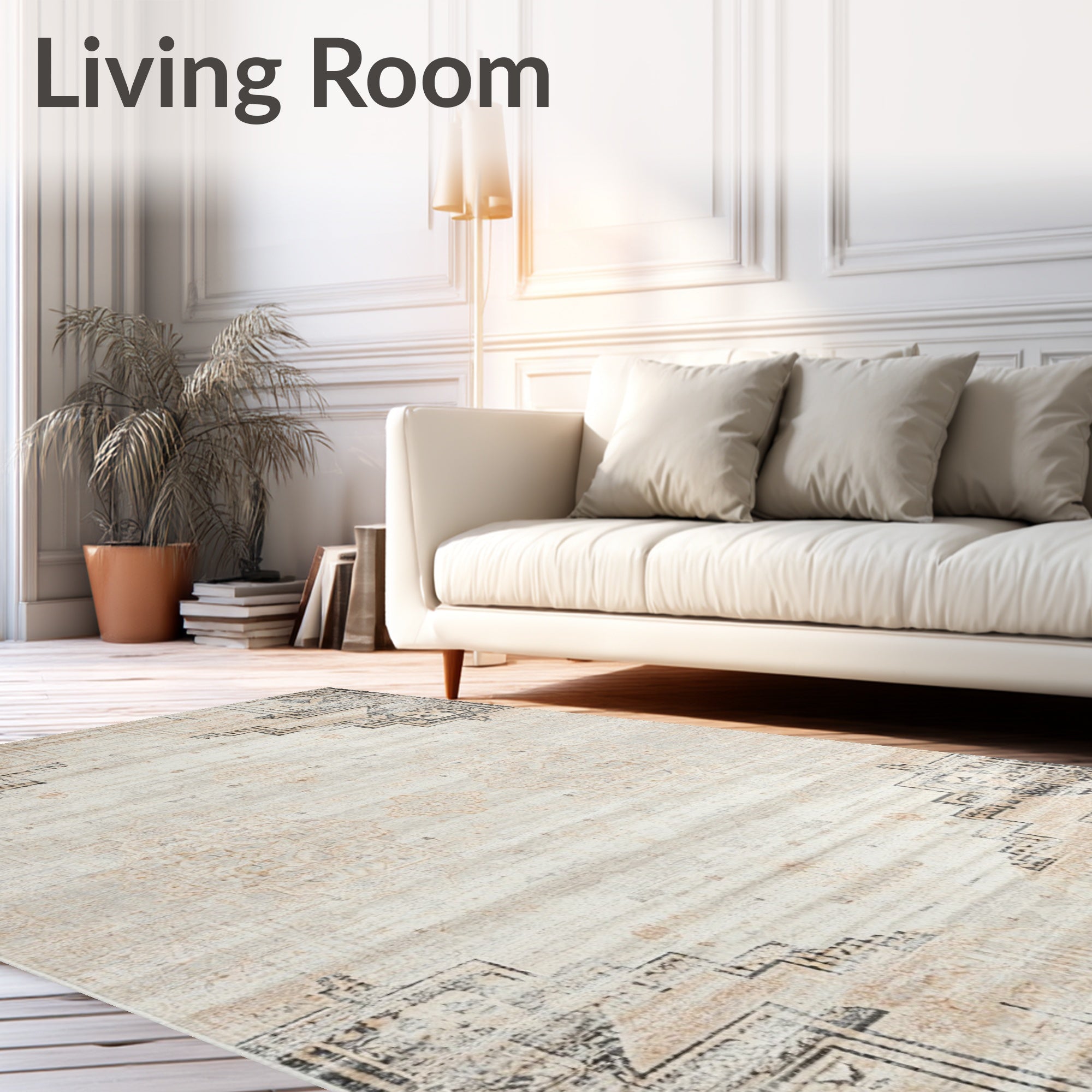 Ultra Soft Area Rug, Non Slip, Stain Resistant, Washable Area Rugs for Living Room, Bedroom, Classic Area with Rustic Charm and Timeless Distressed Aesthetics(Beige) Overview: