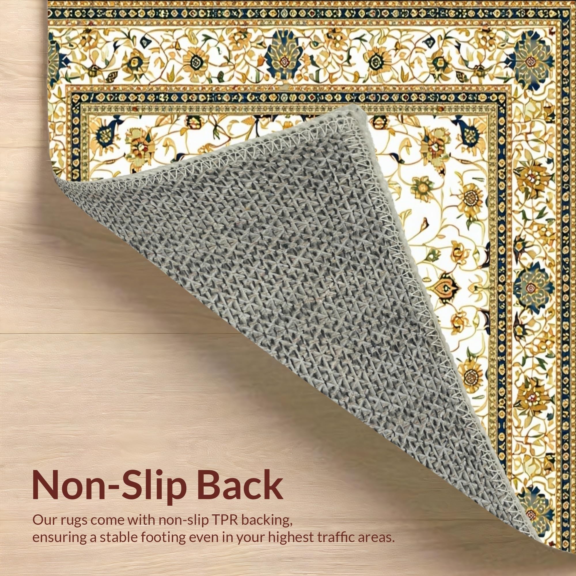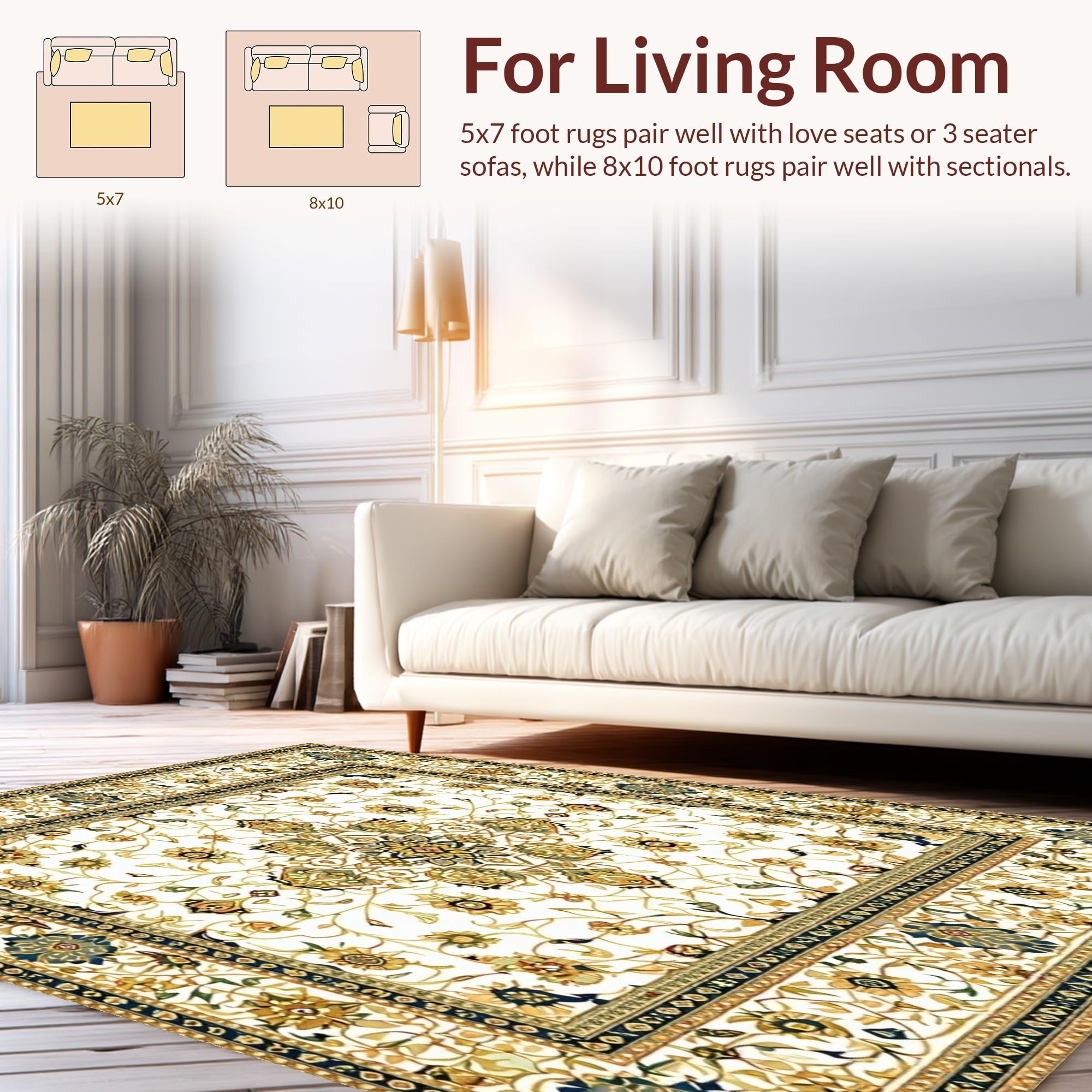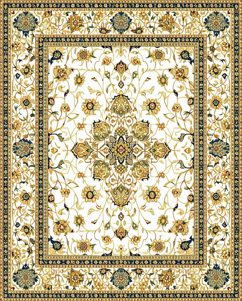 Ultra Soft Area Rug, Non Slip, Stain Resistant, Washable Area Rugs for Living Room, Bedroom, Classic Beige Area Intricate Floral Motifs(White) Overview: