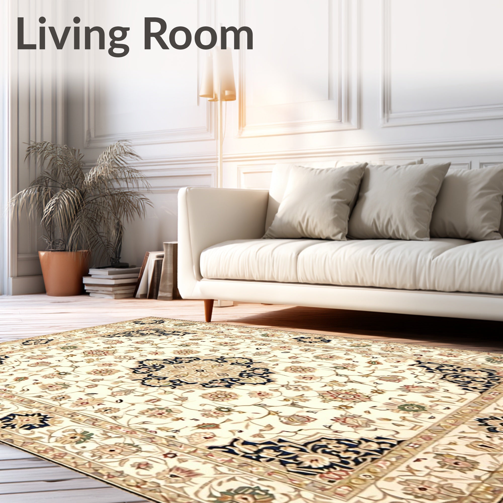 Ultra Soft Area Rug, Non Slip, Stain Resistant, Washable Area Rugs for Living Room, Bedroom, Classic Beige Ivory with Timeless Medallion(Beige) Overview: