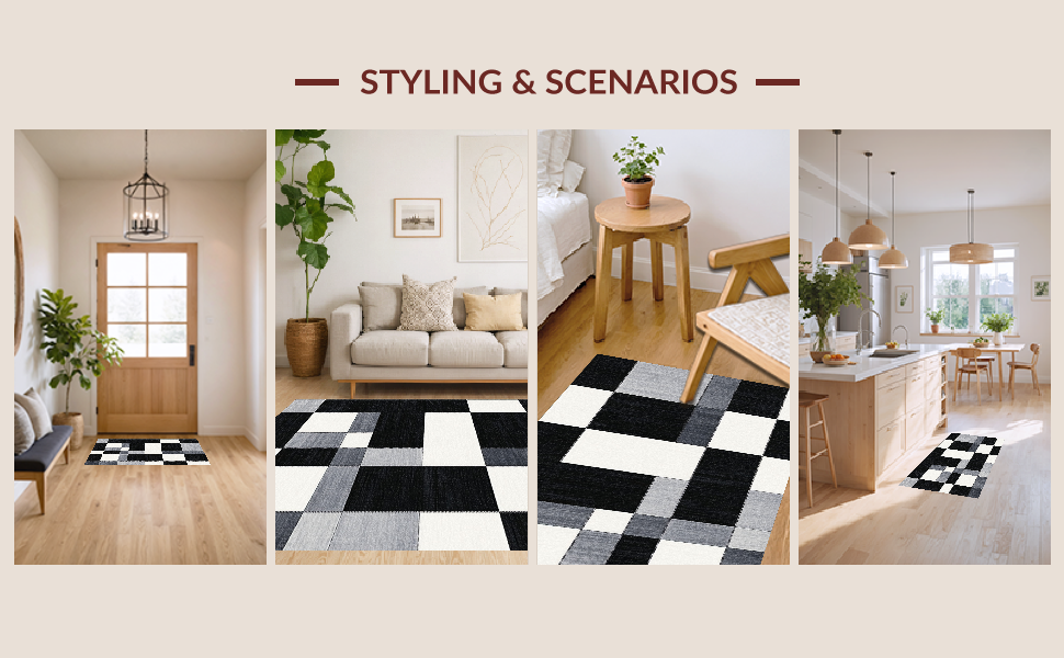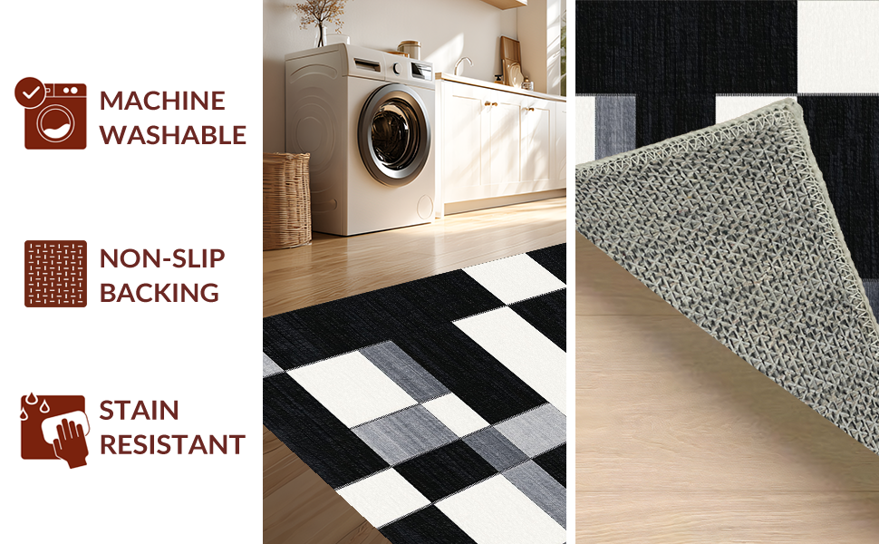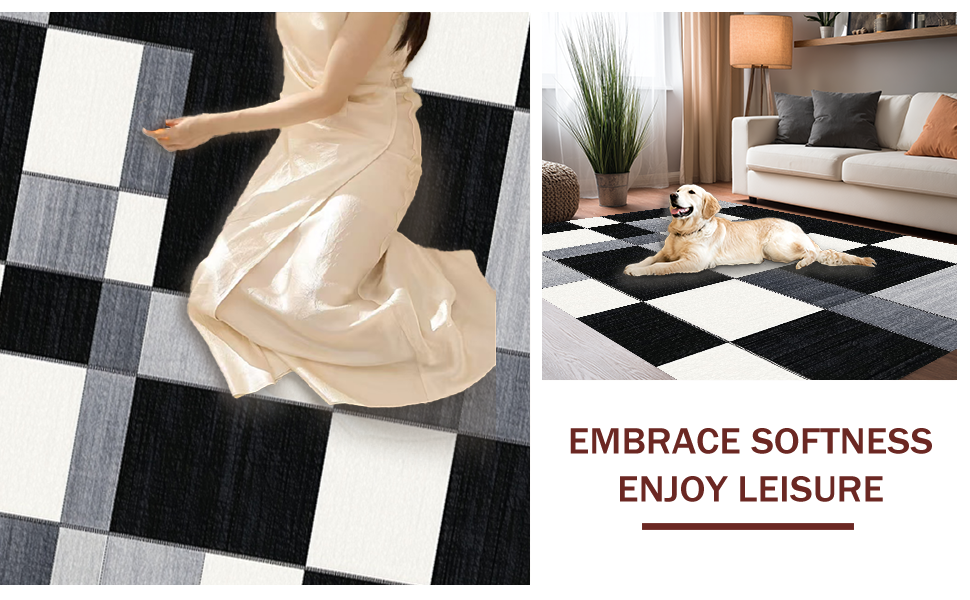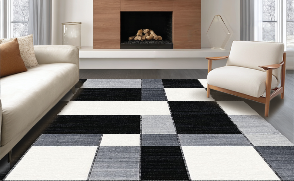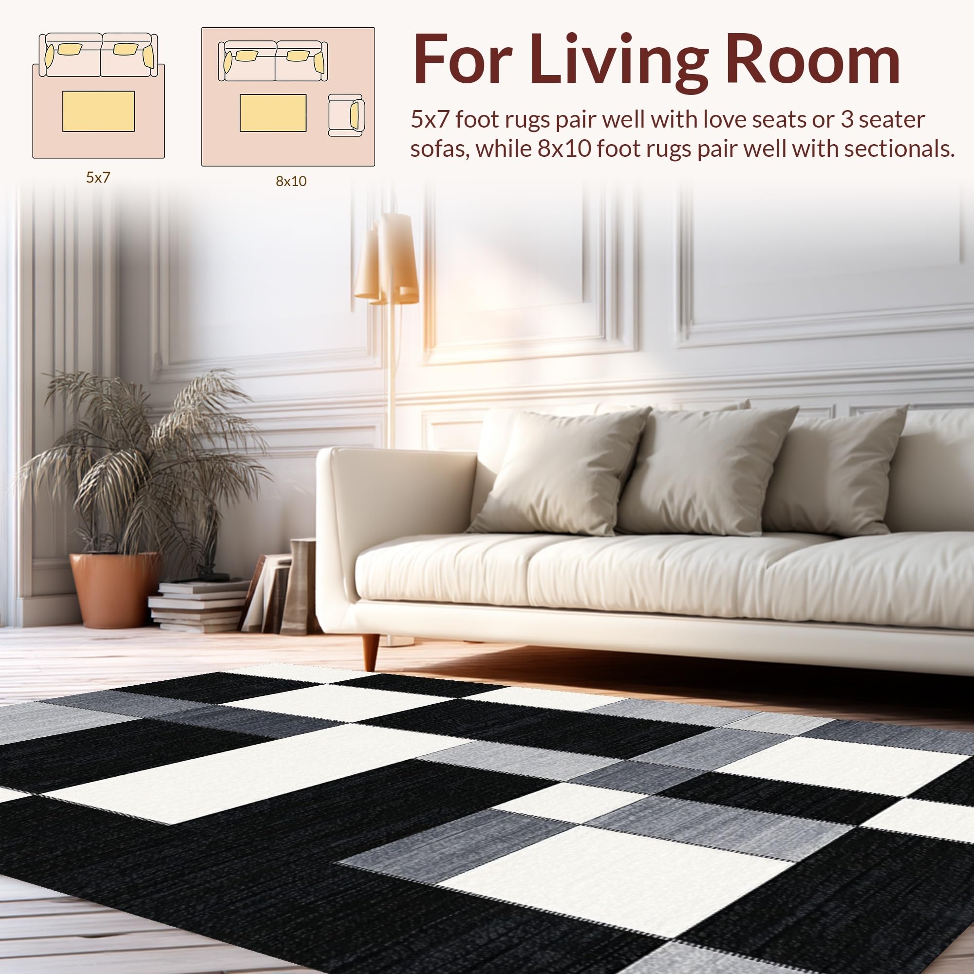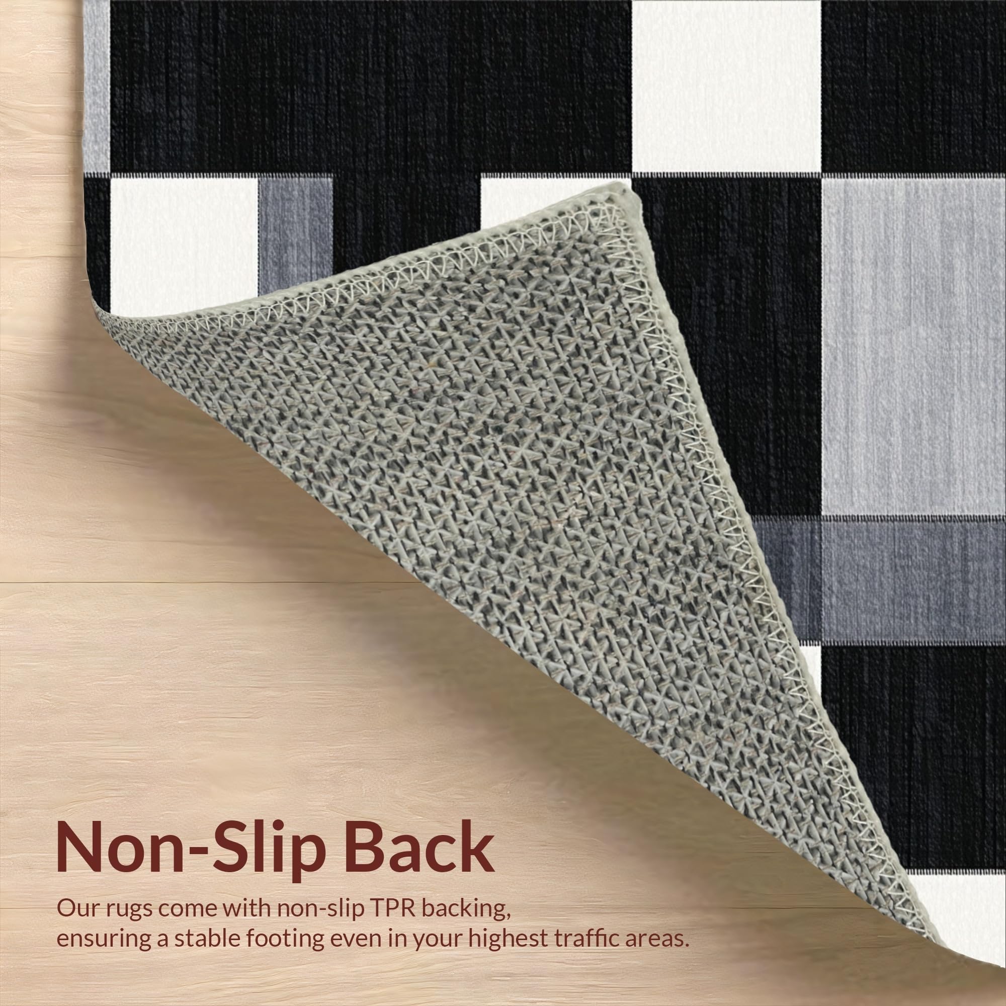 Ultra Soft Area Rug, Non Slip, Stain Resistant, Washable Area Rugs for Living Room, Bedroom, Classic Black and Cream Checkers Design(Black) Overview: