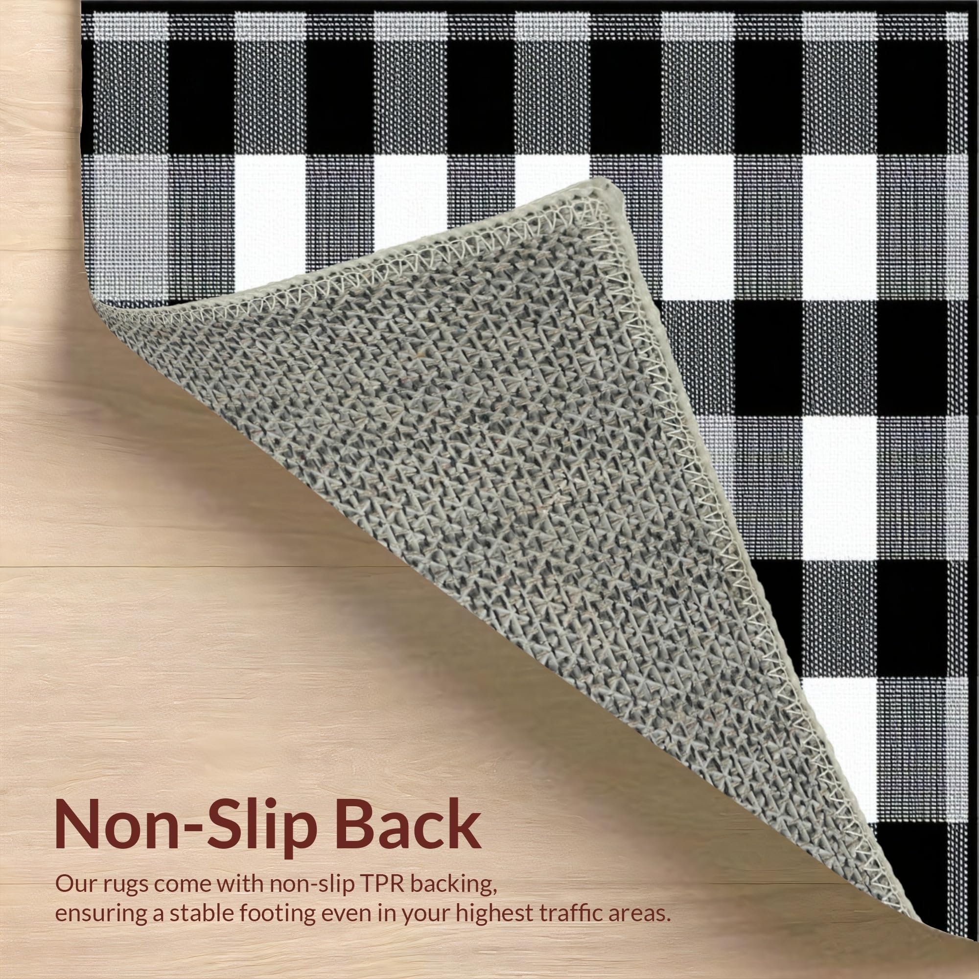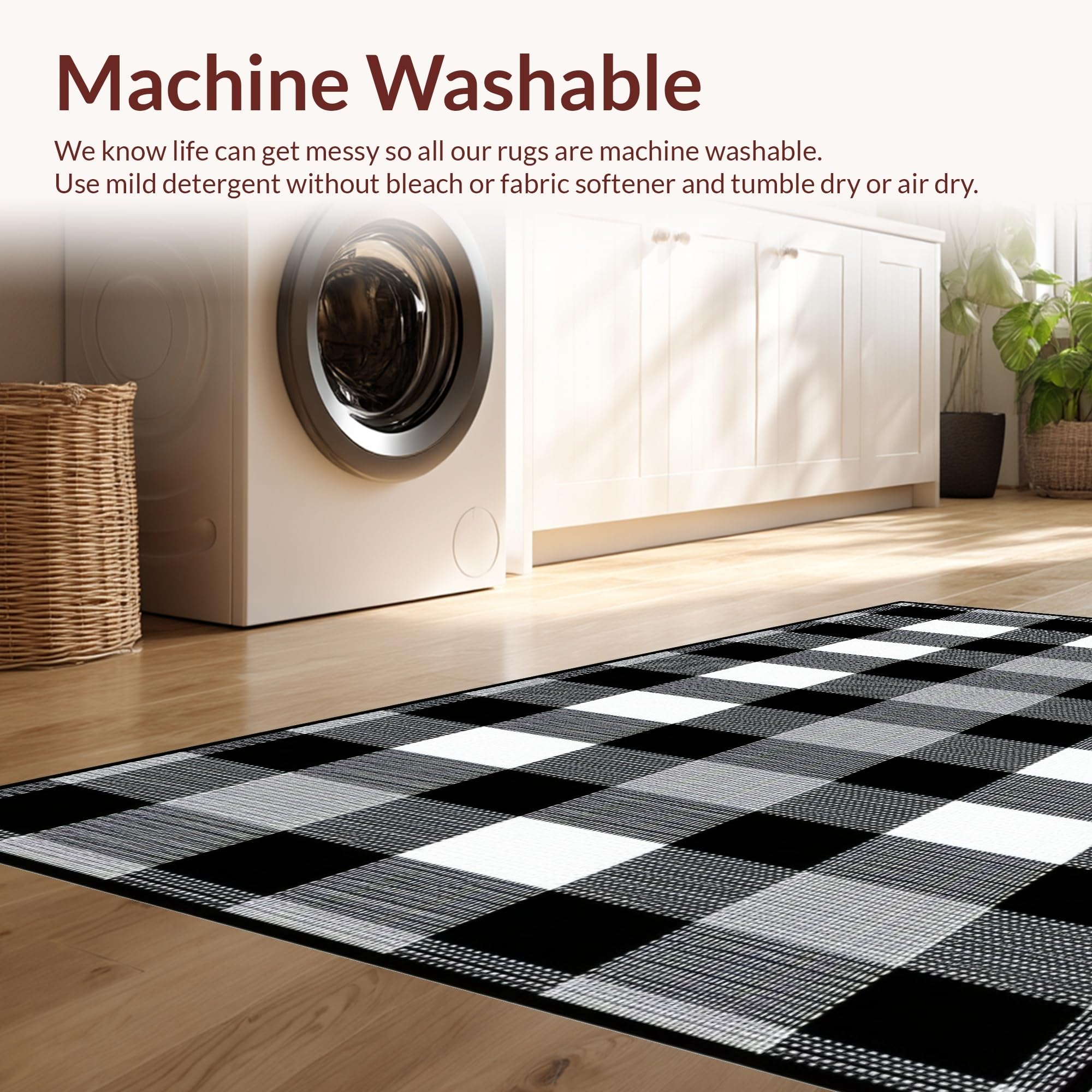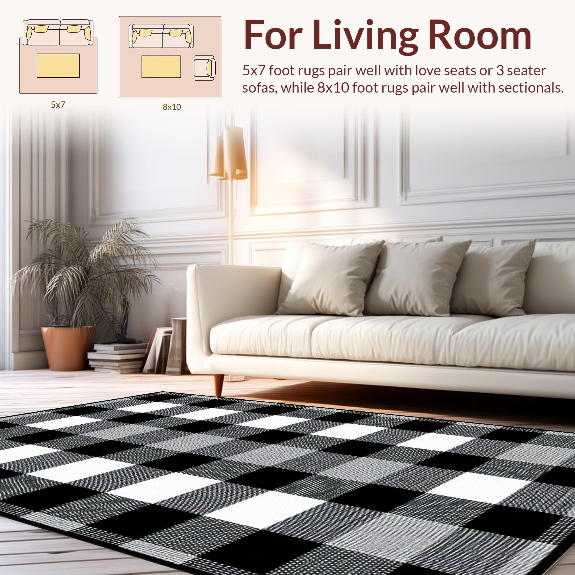 Ultra Soft Area Rug, Non Slip, Stain Resistant, Washable Area Rugs for Living Room, Bedroom, Classic Black and White Check(Black) Overview: