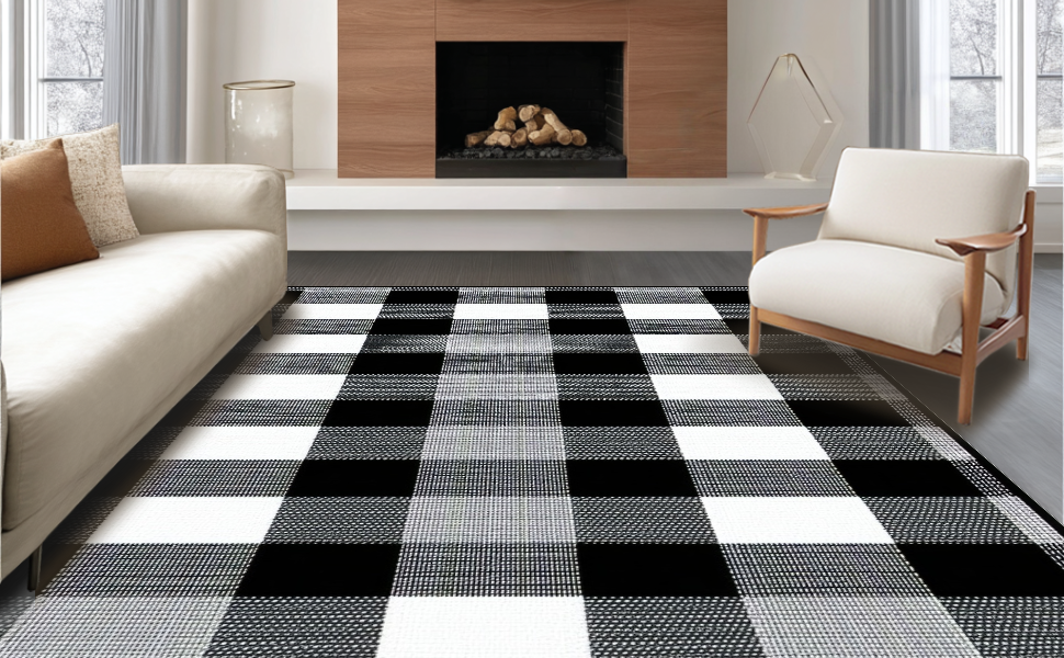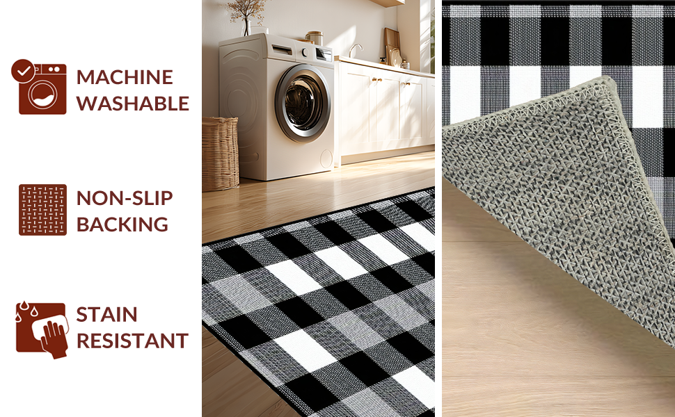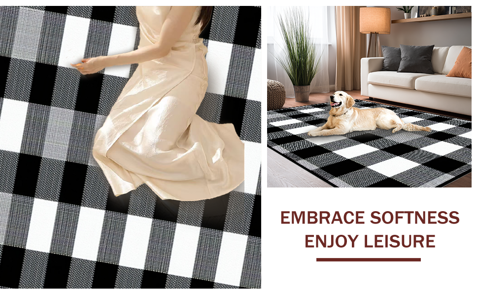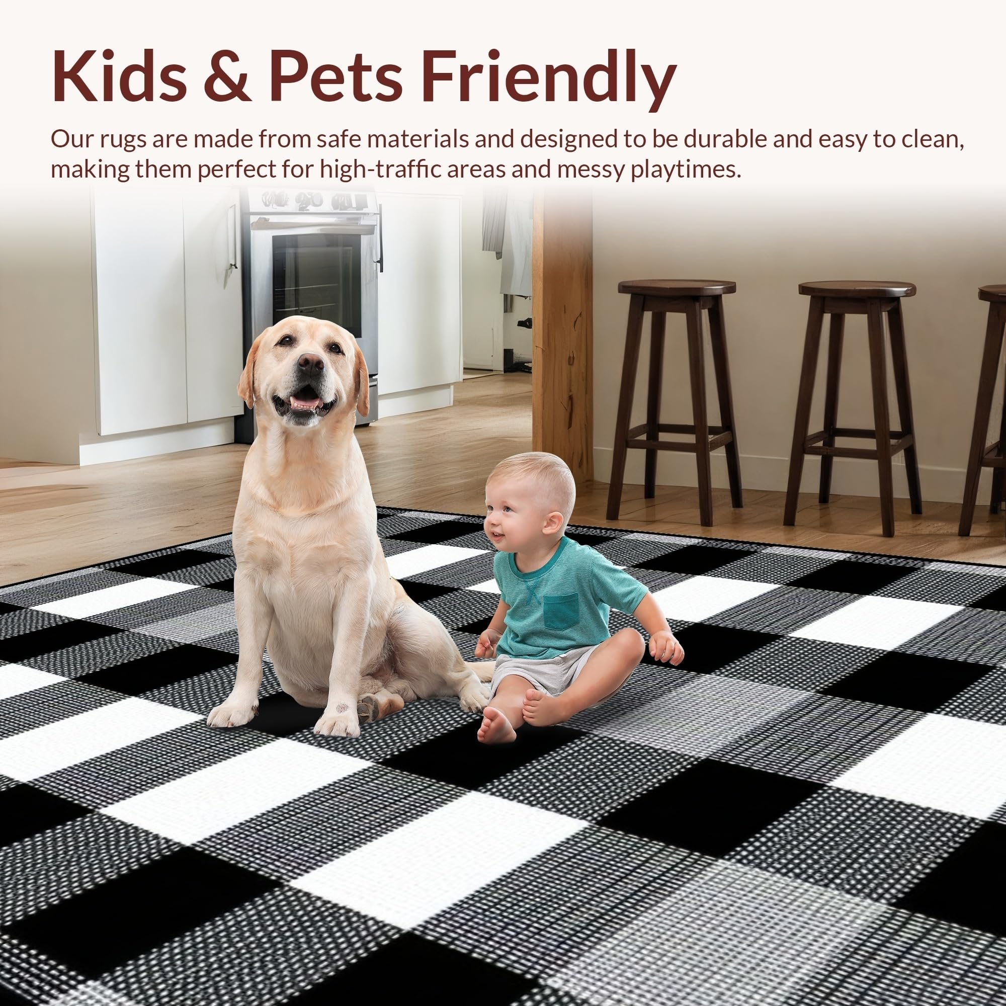Ultra Soft Area Rug, Non Slip, Stain Resistant, Washable Area Rugs for Living Room, Bedroom, Classic Black and White Check(Black) Overview: