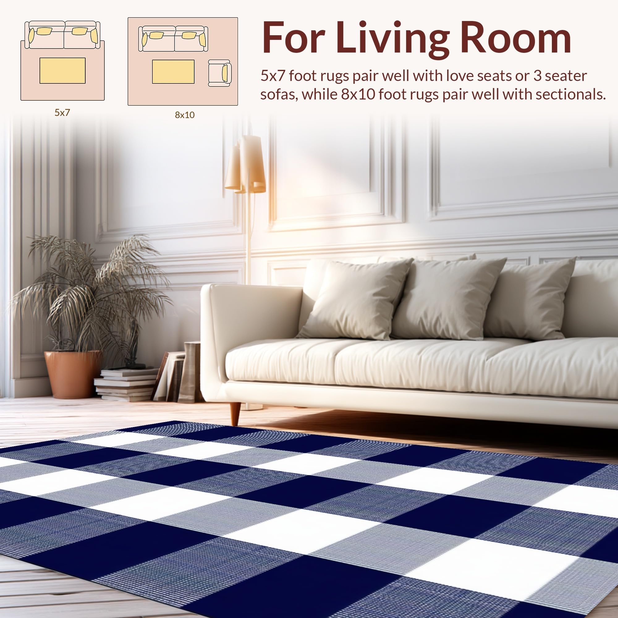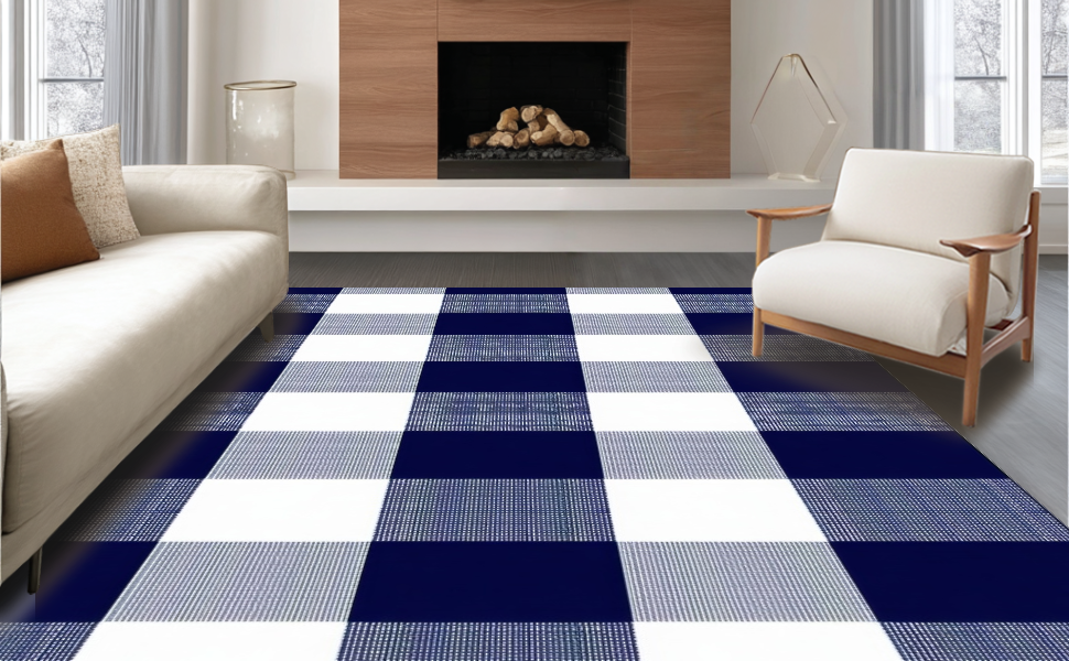 Ultra Soft Area Rug, Non Slip, Stain Resistant, Washable Area Rugs for Living Room, Bedroom, Classic Blue and White Pattern(Blue) Overview: