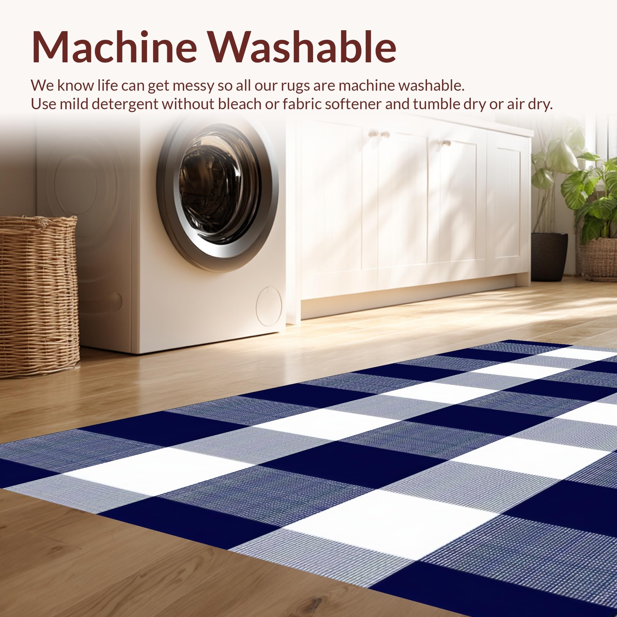 - Machine Washable: Our rugs can be easily thrown in the wash machine.