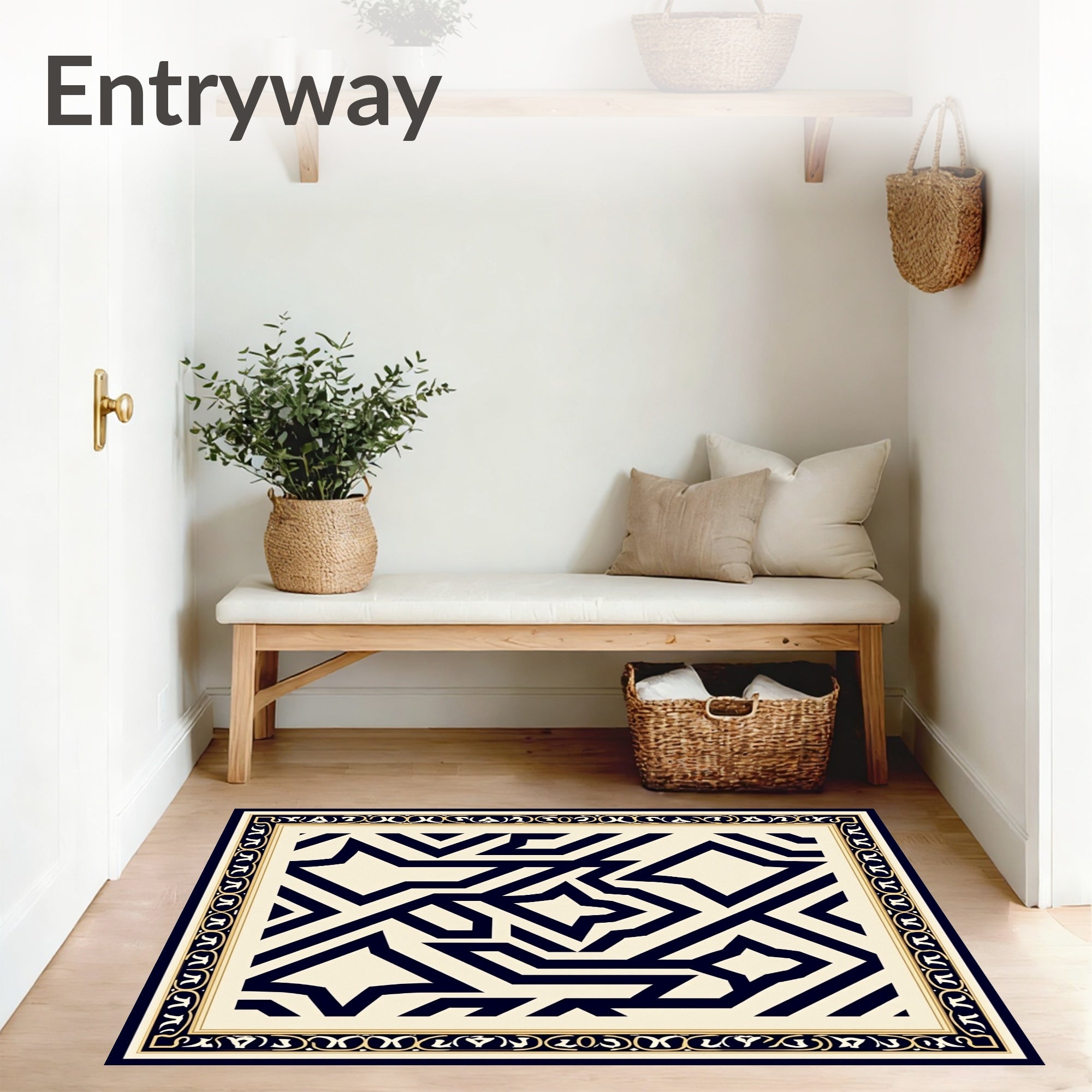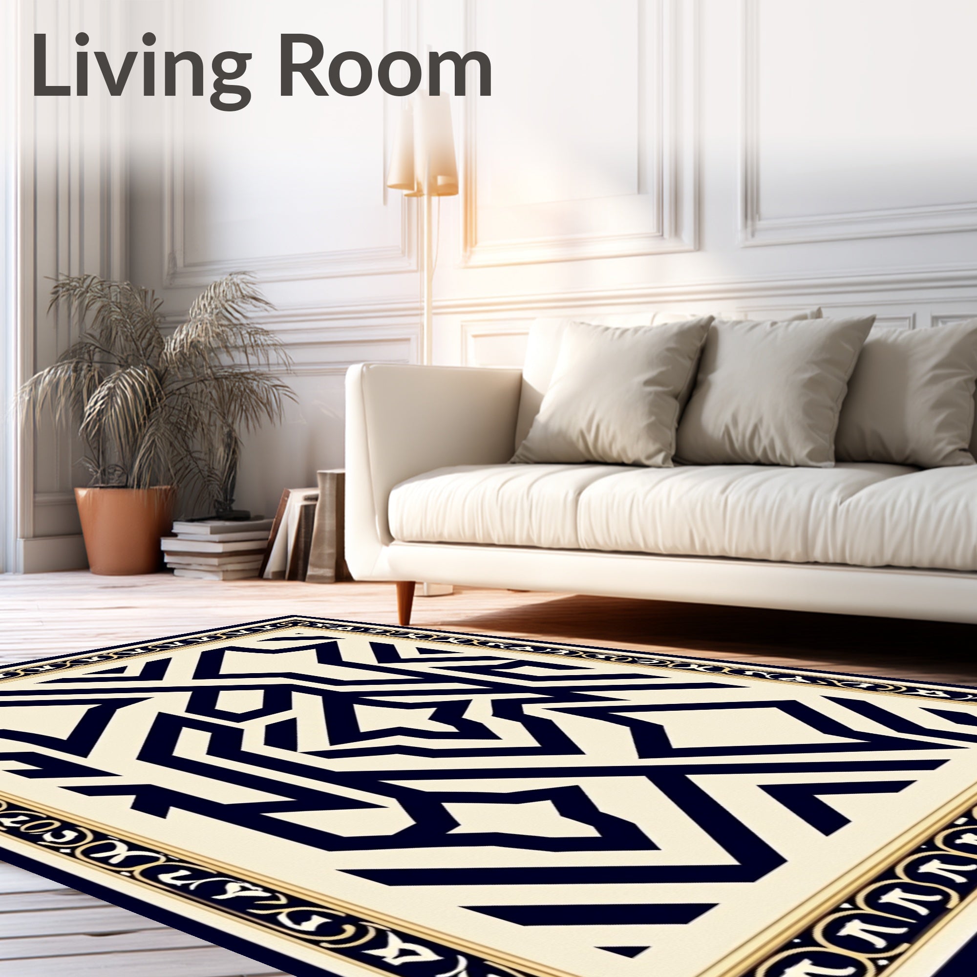 Ultra Soft Area Rug, Non Slip, Stain Resistant, Washable Area Rugs for Living Room, Bedroom, Classic Border Interlocking Maze with Ornate Chevron Medallions(Beige) Overview: