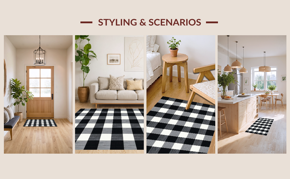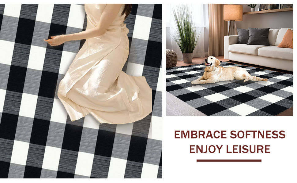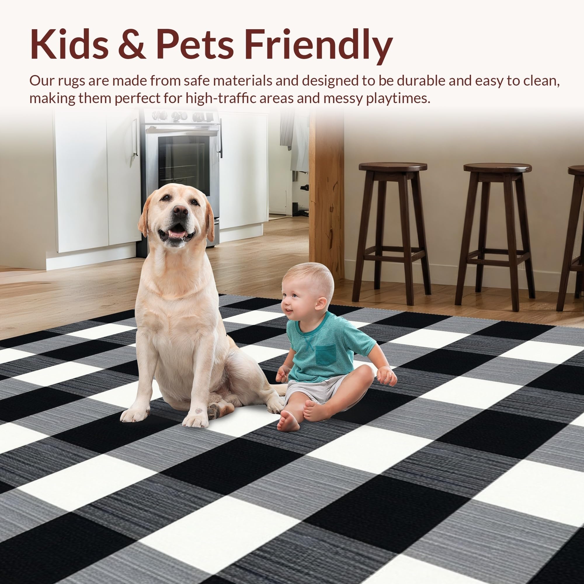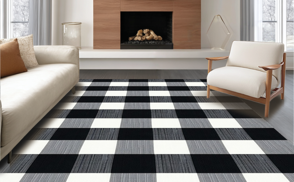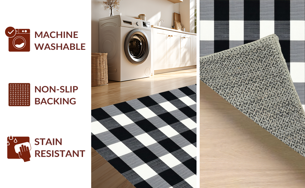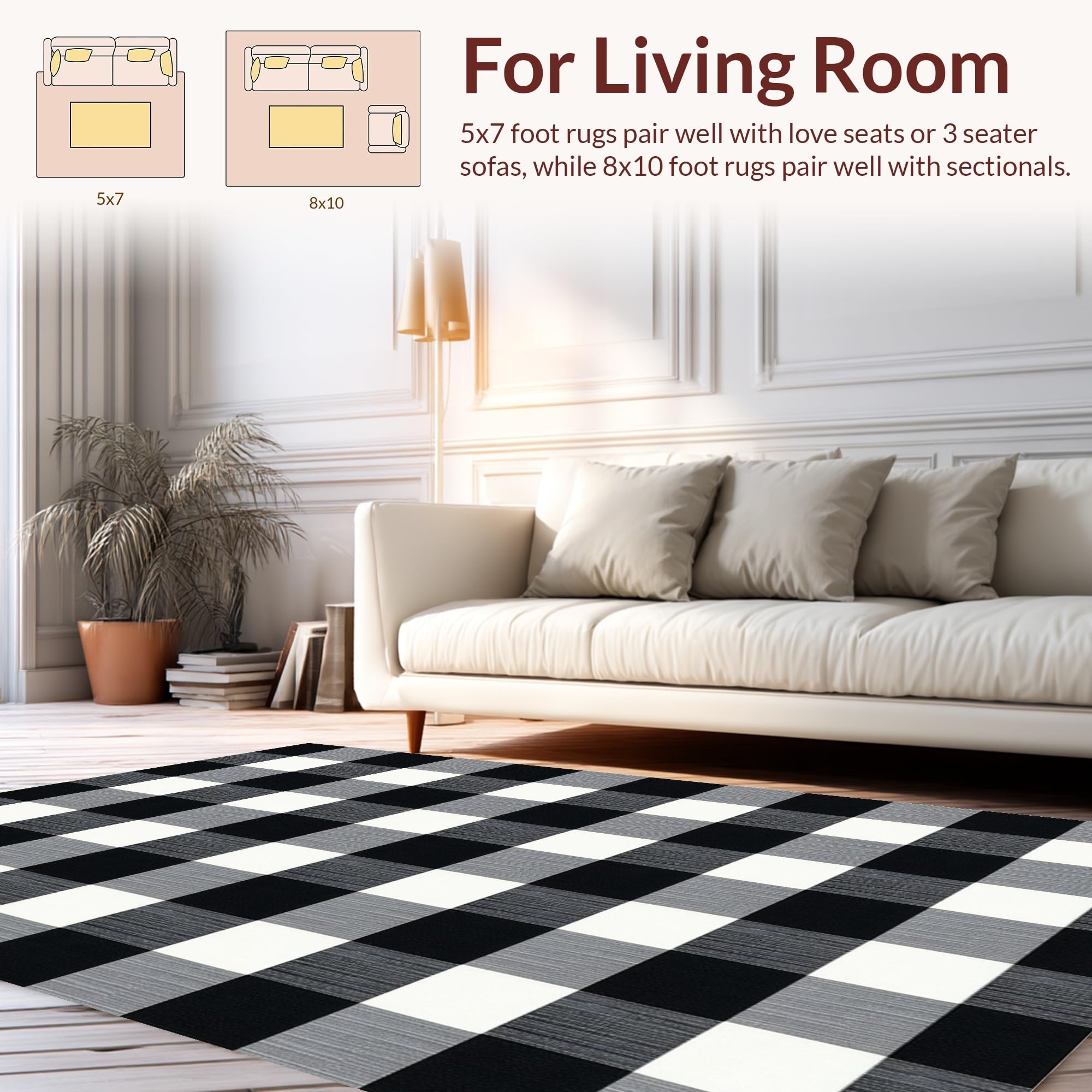 Ultra Soft Area Rug, Non Slip, Stain Resistant, Washable Area Rugs for Living Room, Bedroom, Classic Buffalo Check Outdoor Decor(Black) Overview: