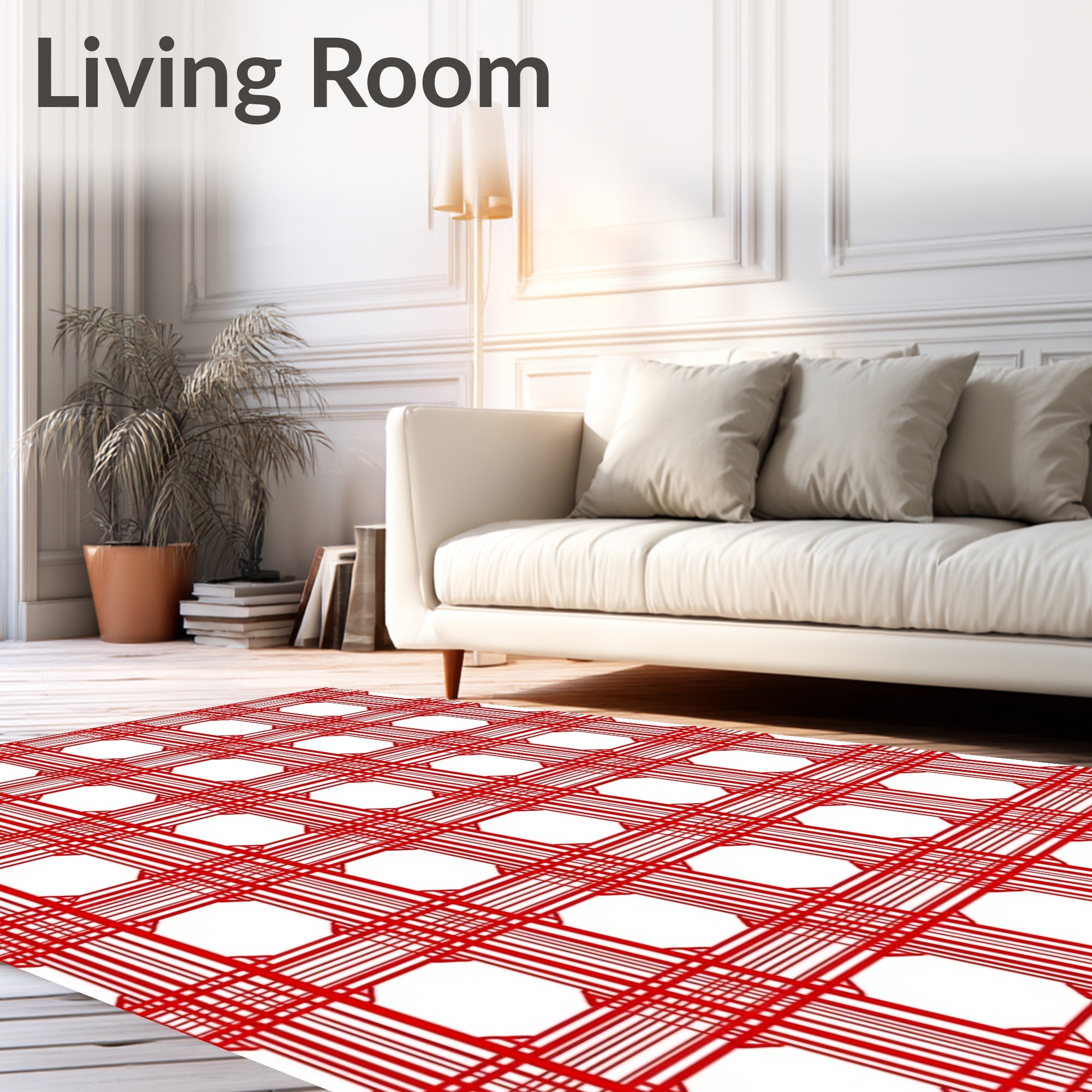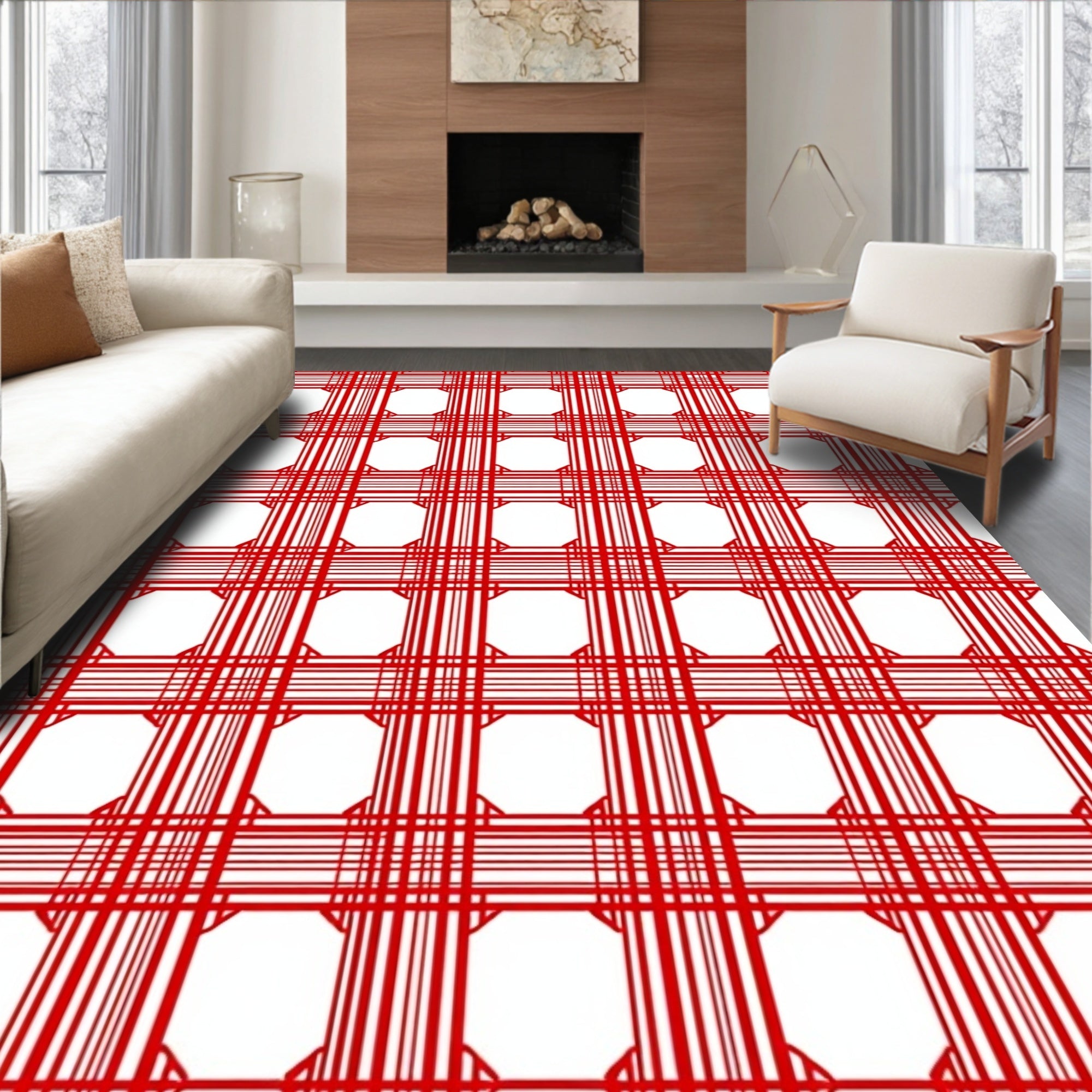 Ultra Soft Area Rug, Non Slip, Stain Resistant, Washable Area Rugs for Living Room, Bedroom, Classic Check Plaid with Bold Stripe Accents and Crisp Contrast(Red) Overview: