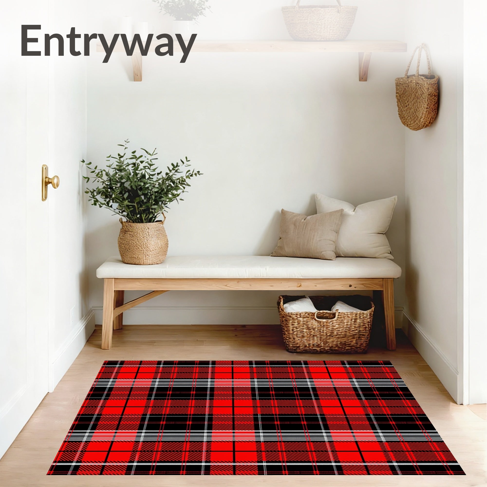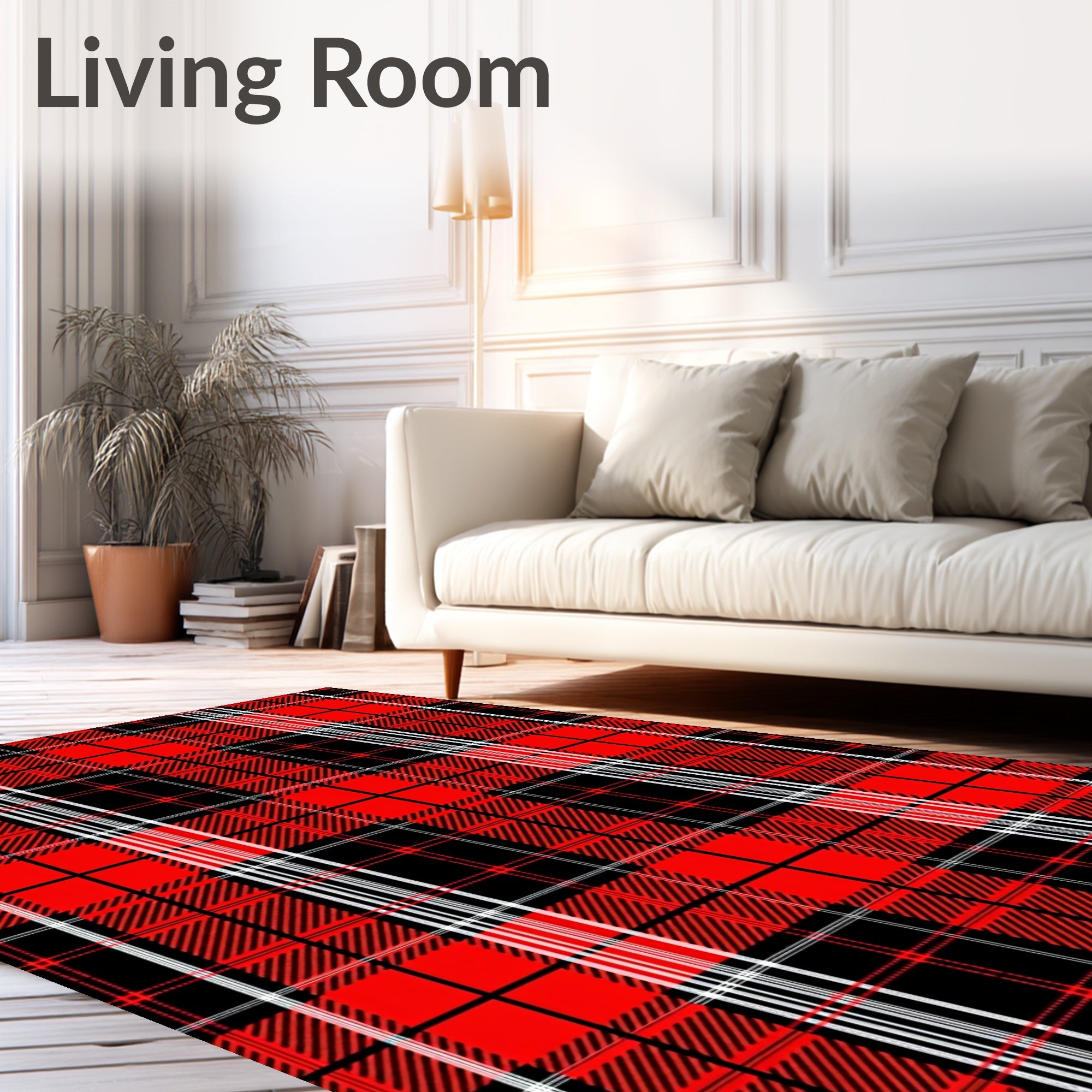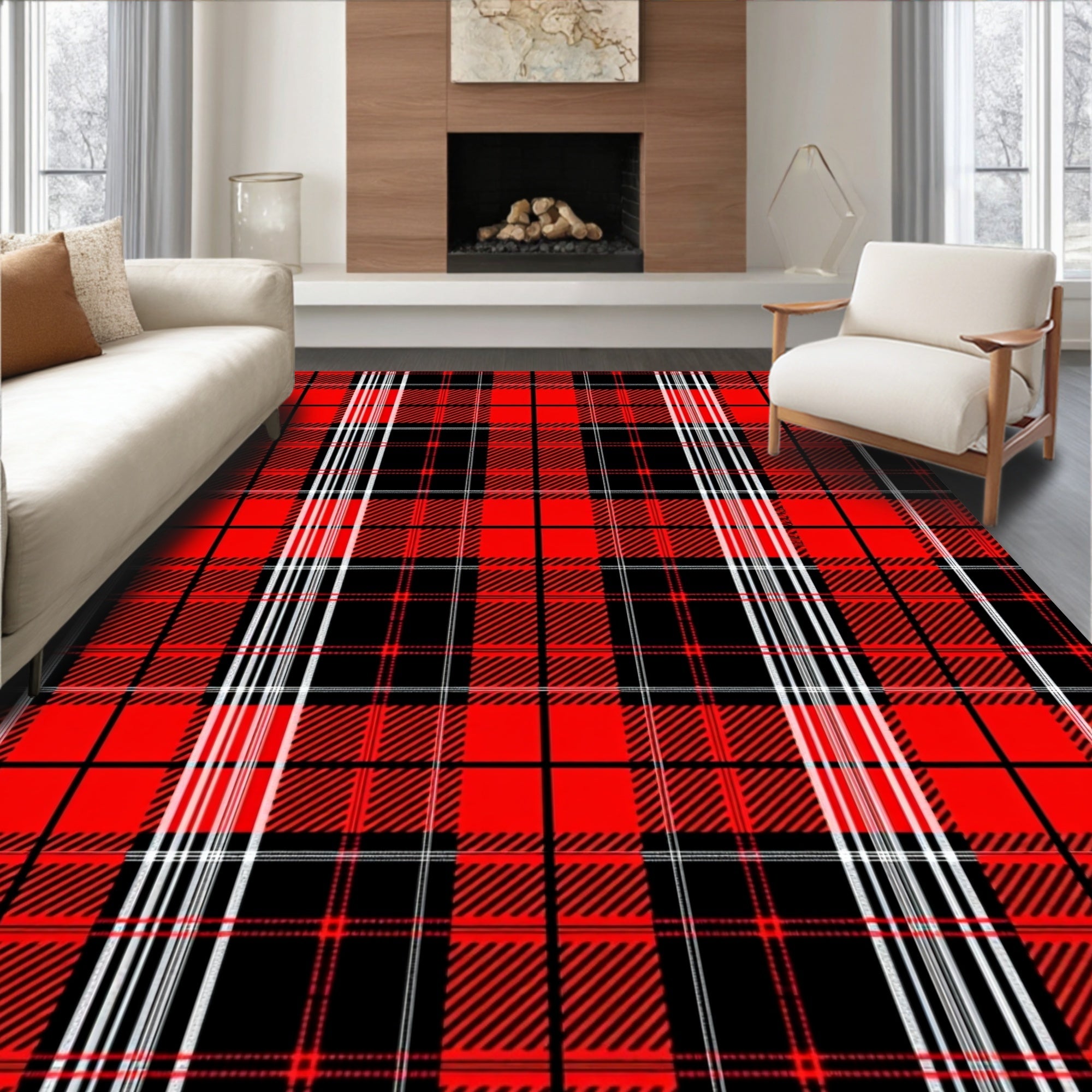 Ultra Soft Area Rug, Non Slip, Stain Resistant, Washable Area Rugs for Living Room, Bedroom, Classic Check Tartan with Bold Contrasting Plaid Motifs(Red) Overview: