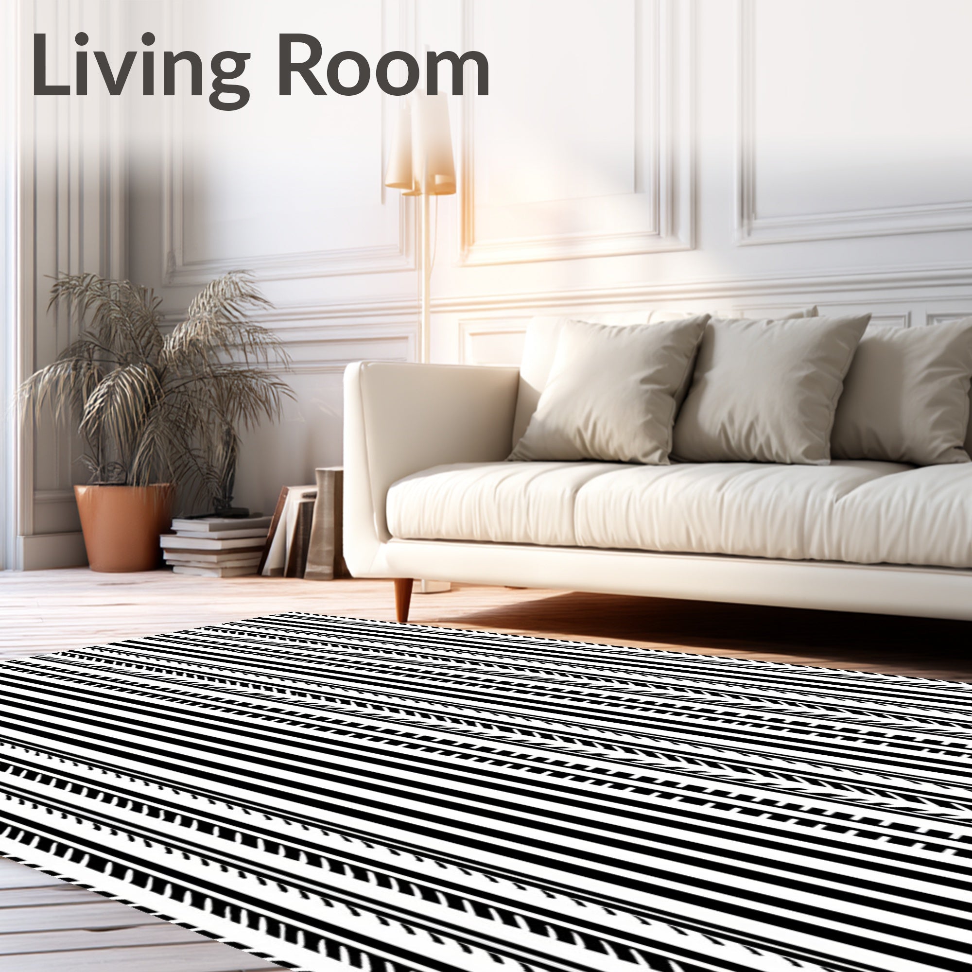 Flatwoven High Traffic Area Rug, Classic Checkered Featuring Crisp Black and Contrasts, Non Slip, Stain Resistant, Washable Area Rugs for Living Room, Bedroom (Black) Overview: