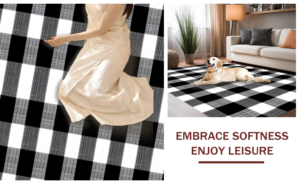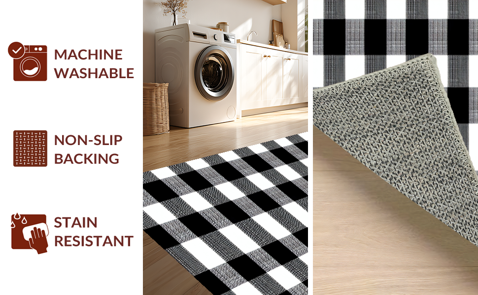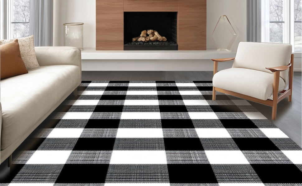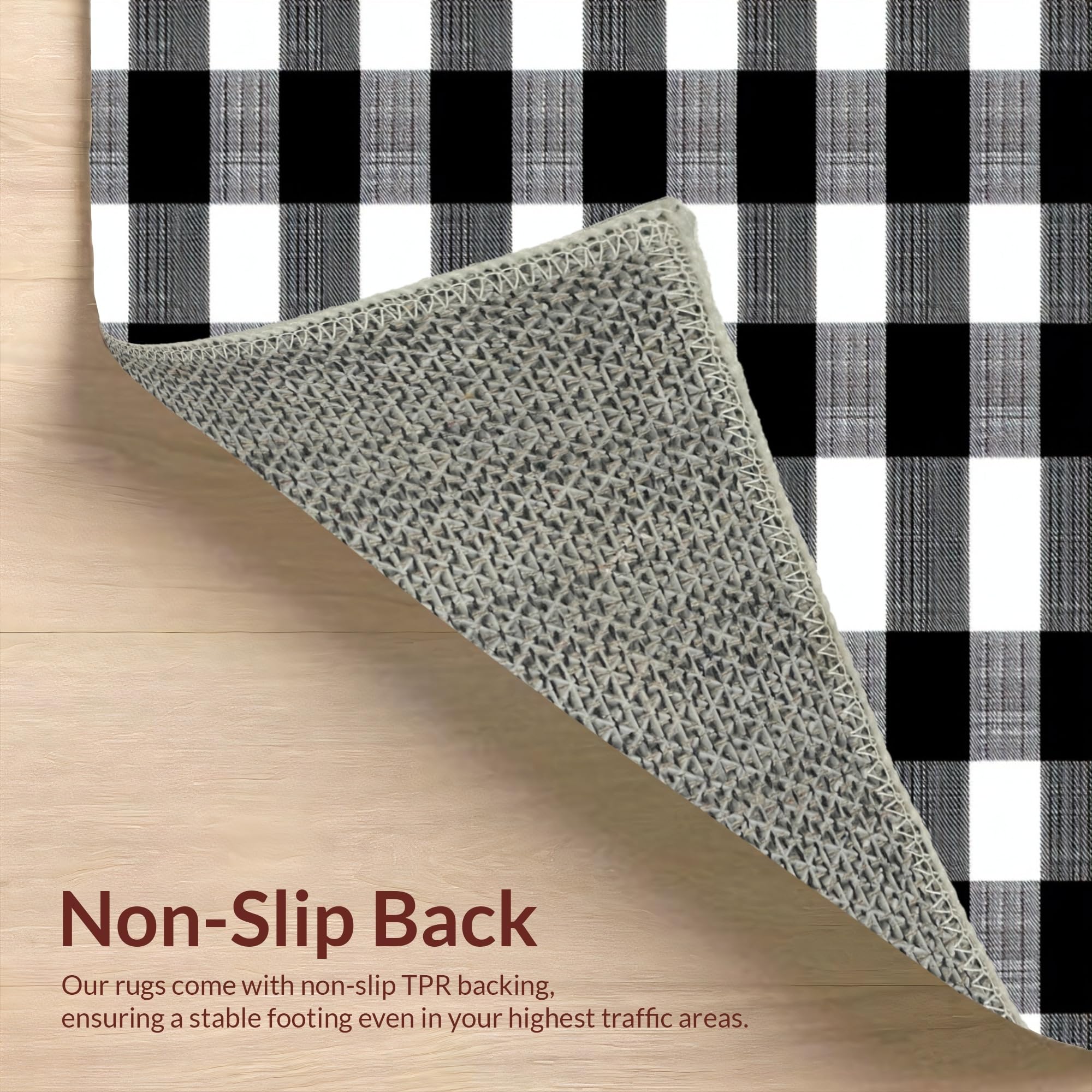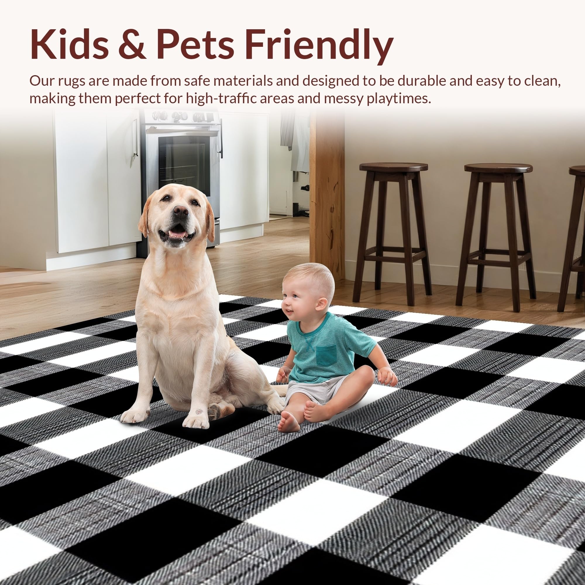Ultra Soft Area Rug, Non Slip, Stain Resistant, Washable Area Rugs for Living Room, Bedroom, Classic Checkered Rustic Elegance(Black) Overview: