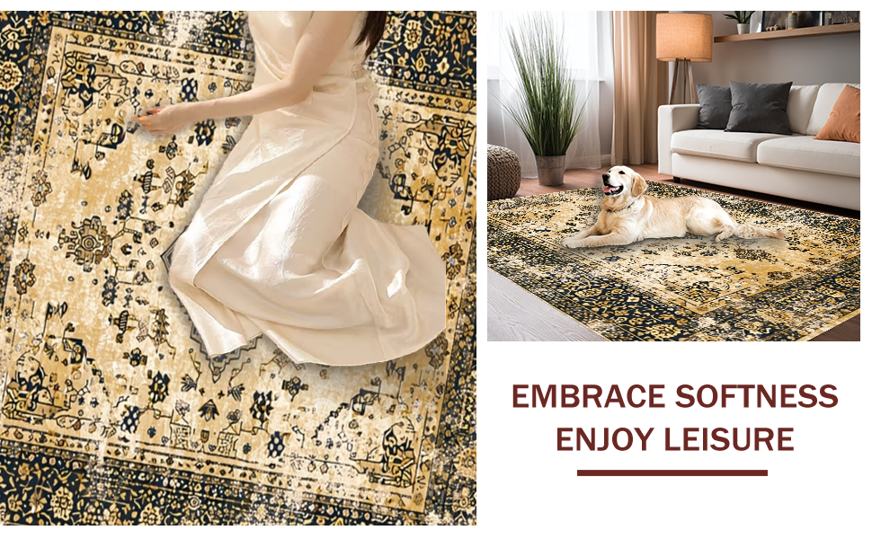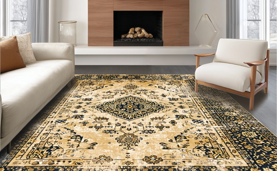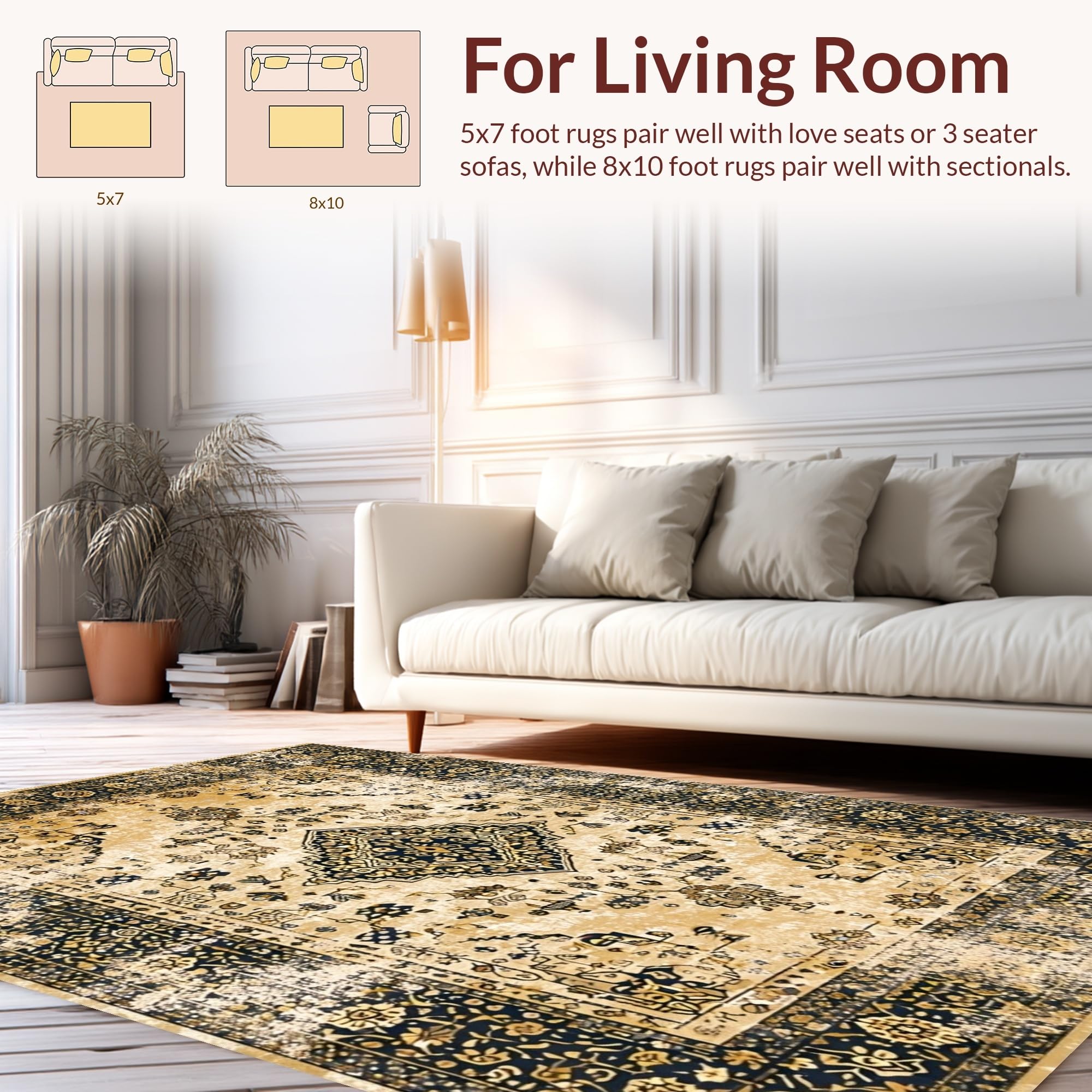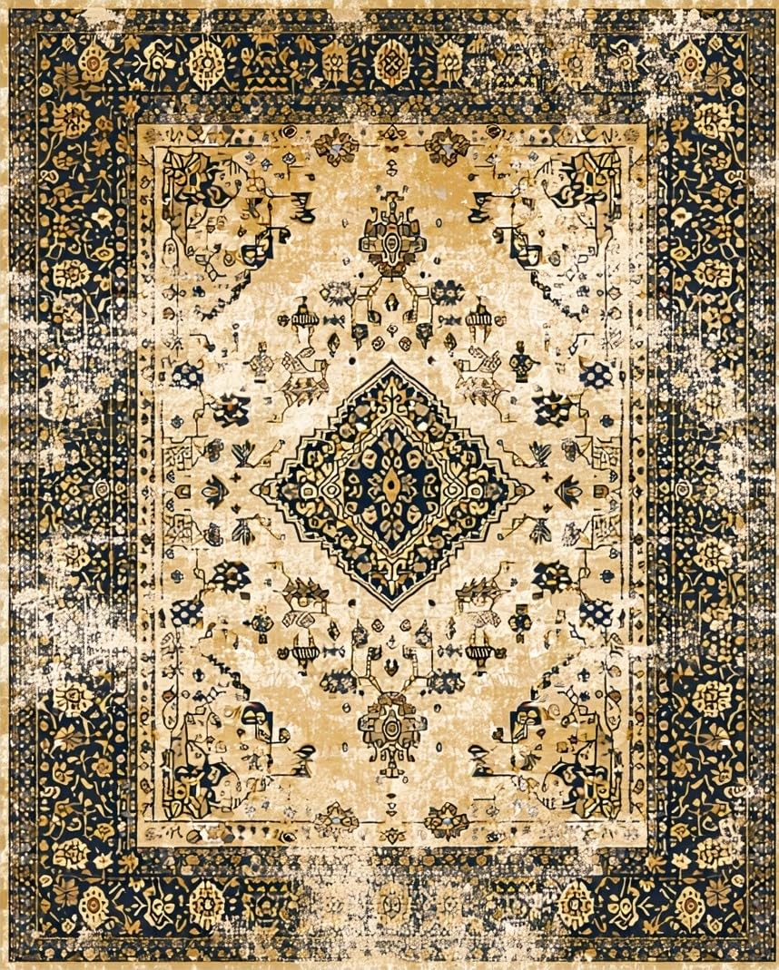 Ultra Soft Area Rug, Non Slip, Stain Resistant, Washable Area Rugs for Living Room, Bedroom, Classic Cozy Ogee Print(Beige) Overview:
