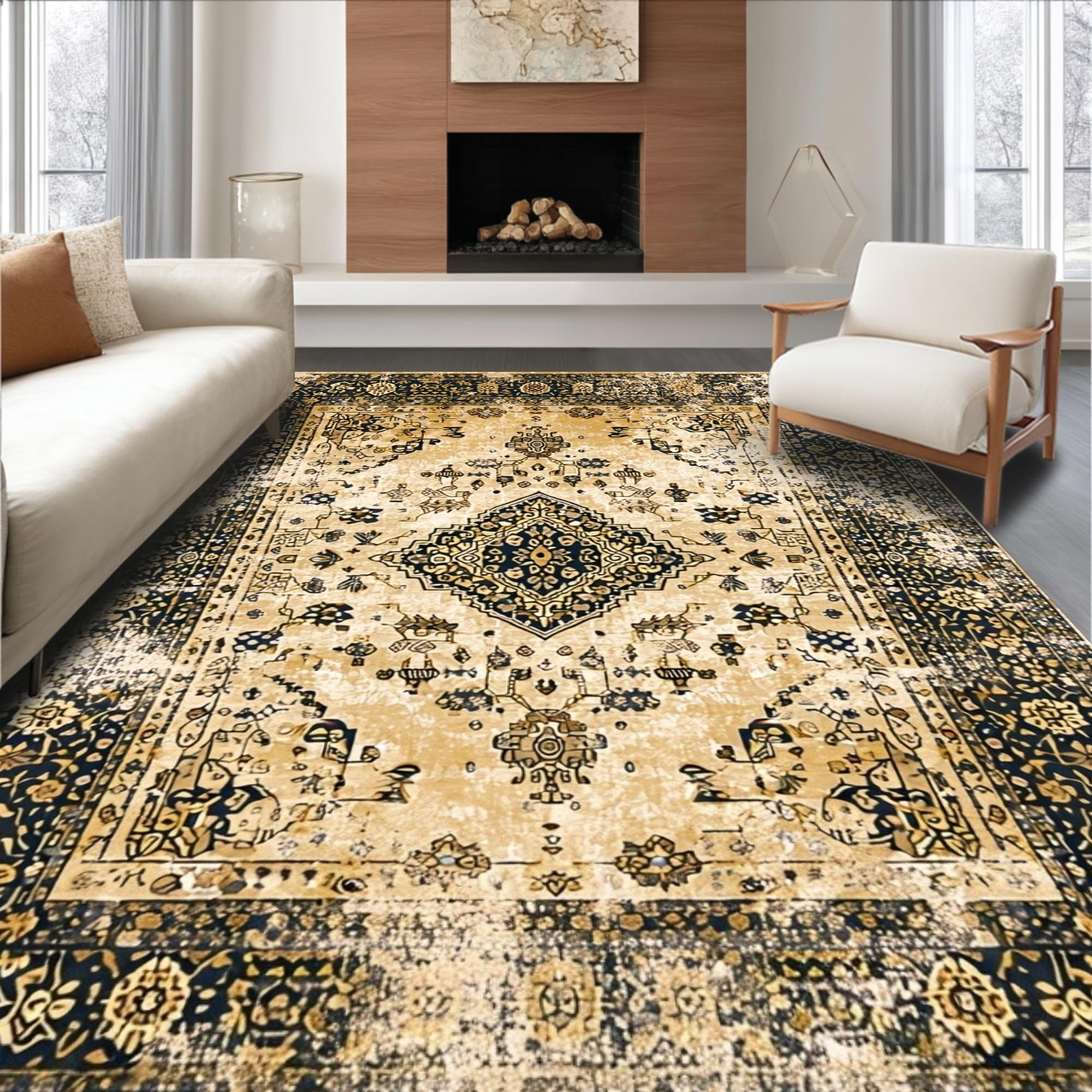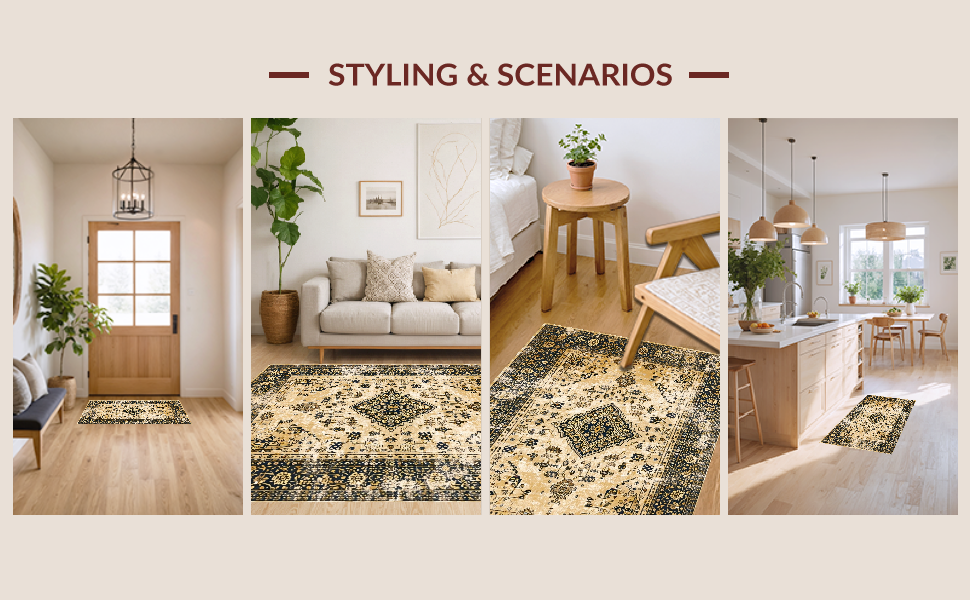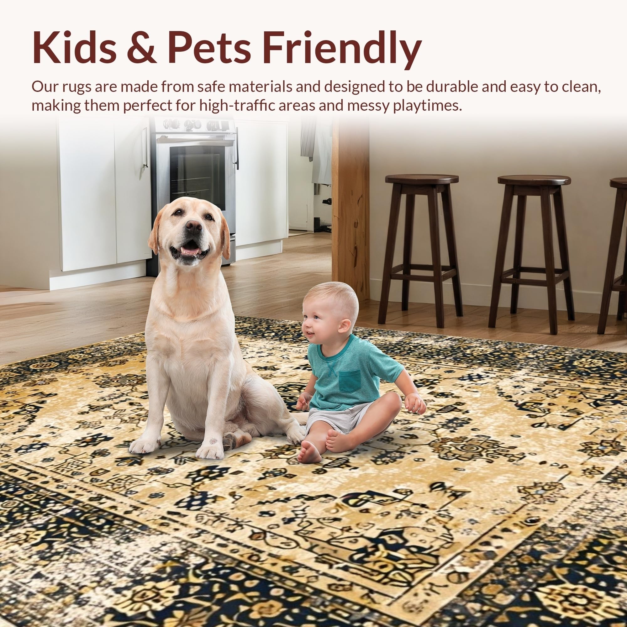 Ultra Soft Area Rug, Non Slip, Stain Resistant, Washable Area Rugs for Living Room, Bedroom, Classic Cozy Ogee Print(Beige) Overview:
