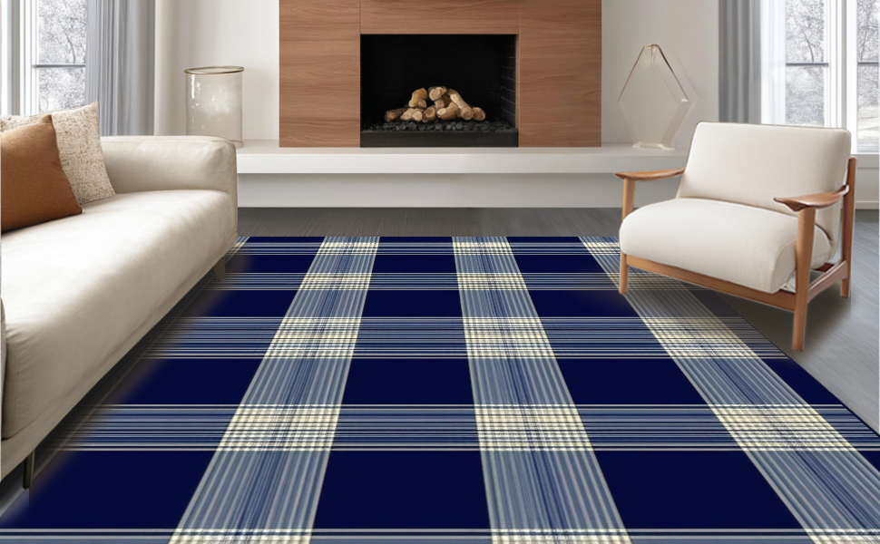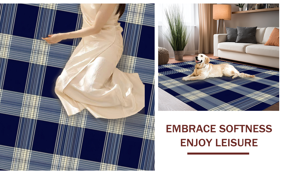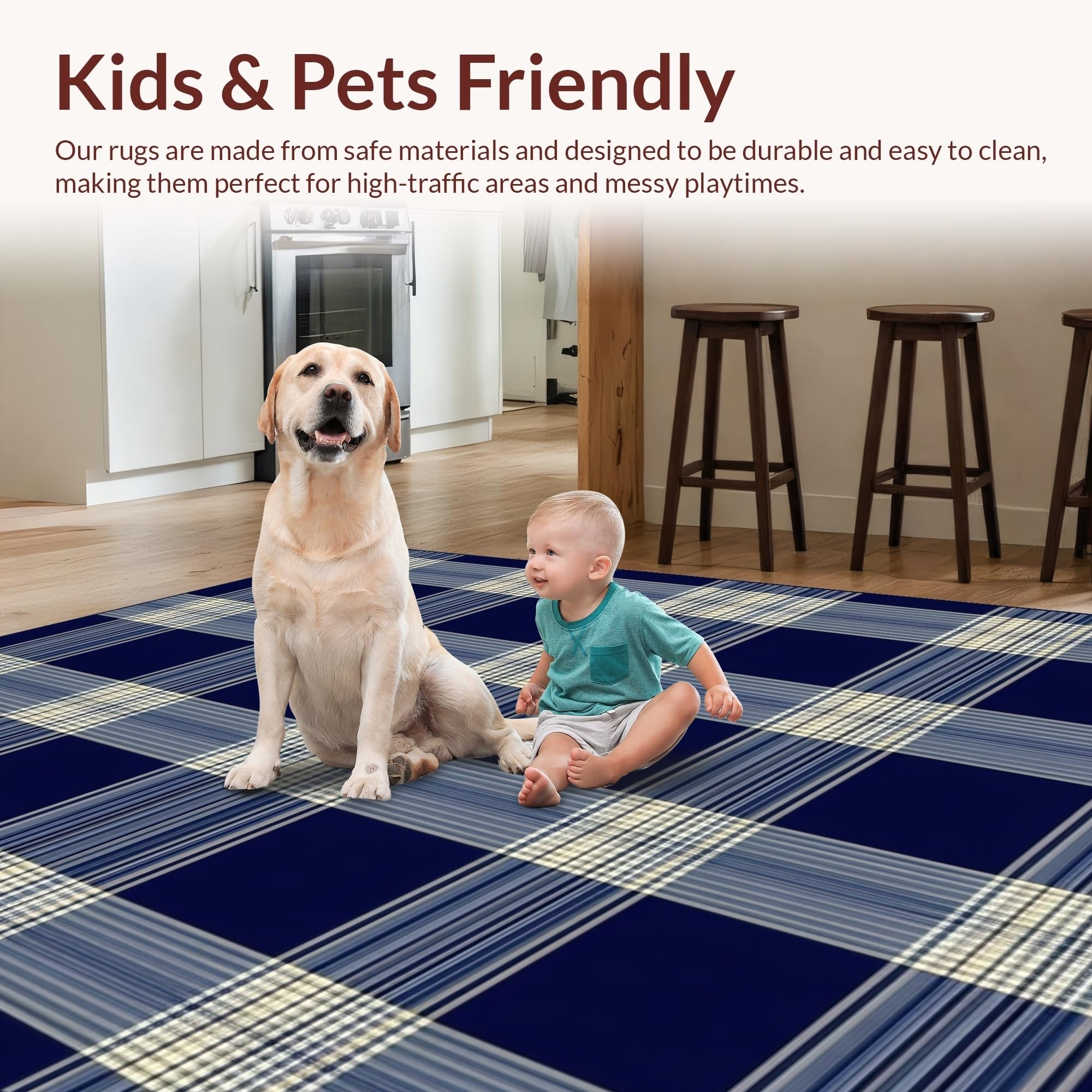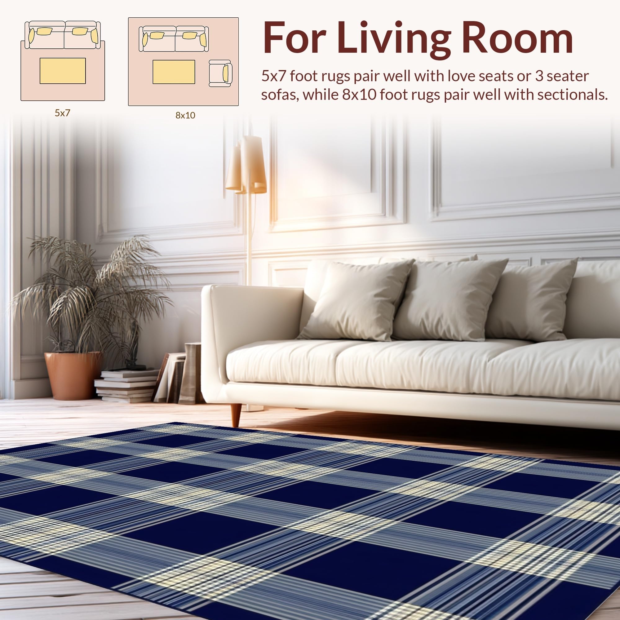 Ultra Soft Area Rug, Non Slip, Stain Resistant, Washable Area Rugs for Living Room, Bedroom, Classic Cozy Tartan Ensemble(Blue) Overview: