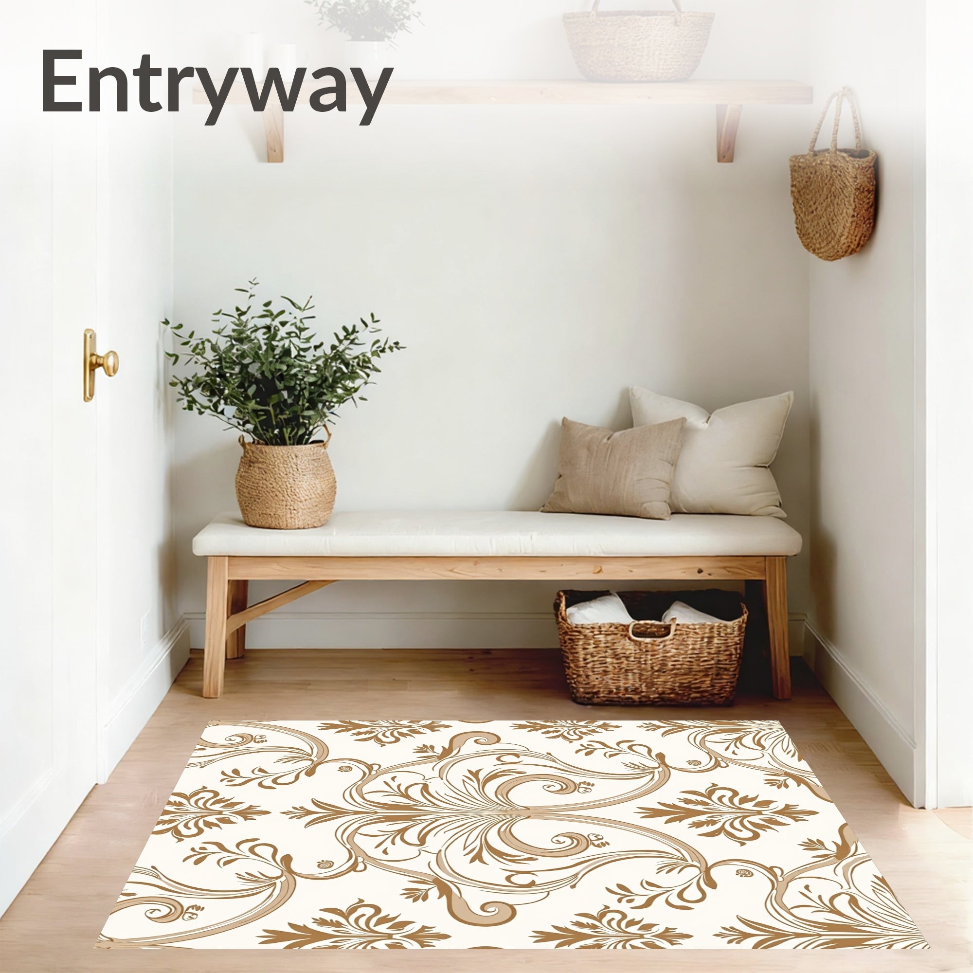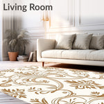 Ultra Soft Area Rug, Non Slip, Stain Resistant, Washable Area Rugs for Living Room, Bedroom, Classic Damask Scroll with Elegant Flourishes(Brown) Overview: