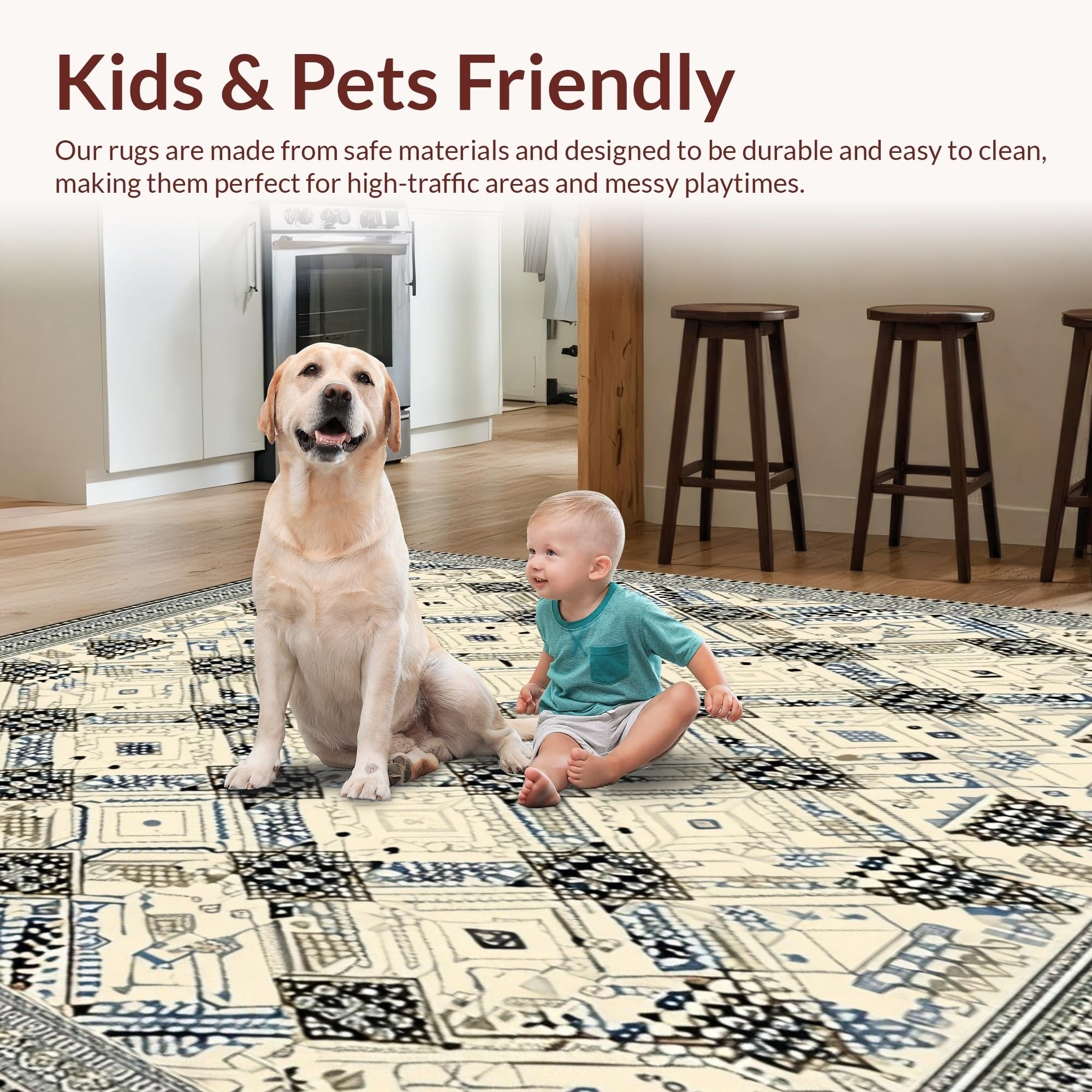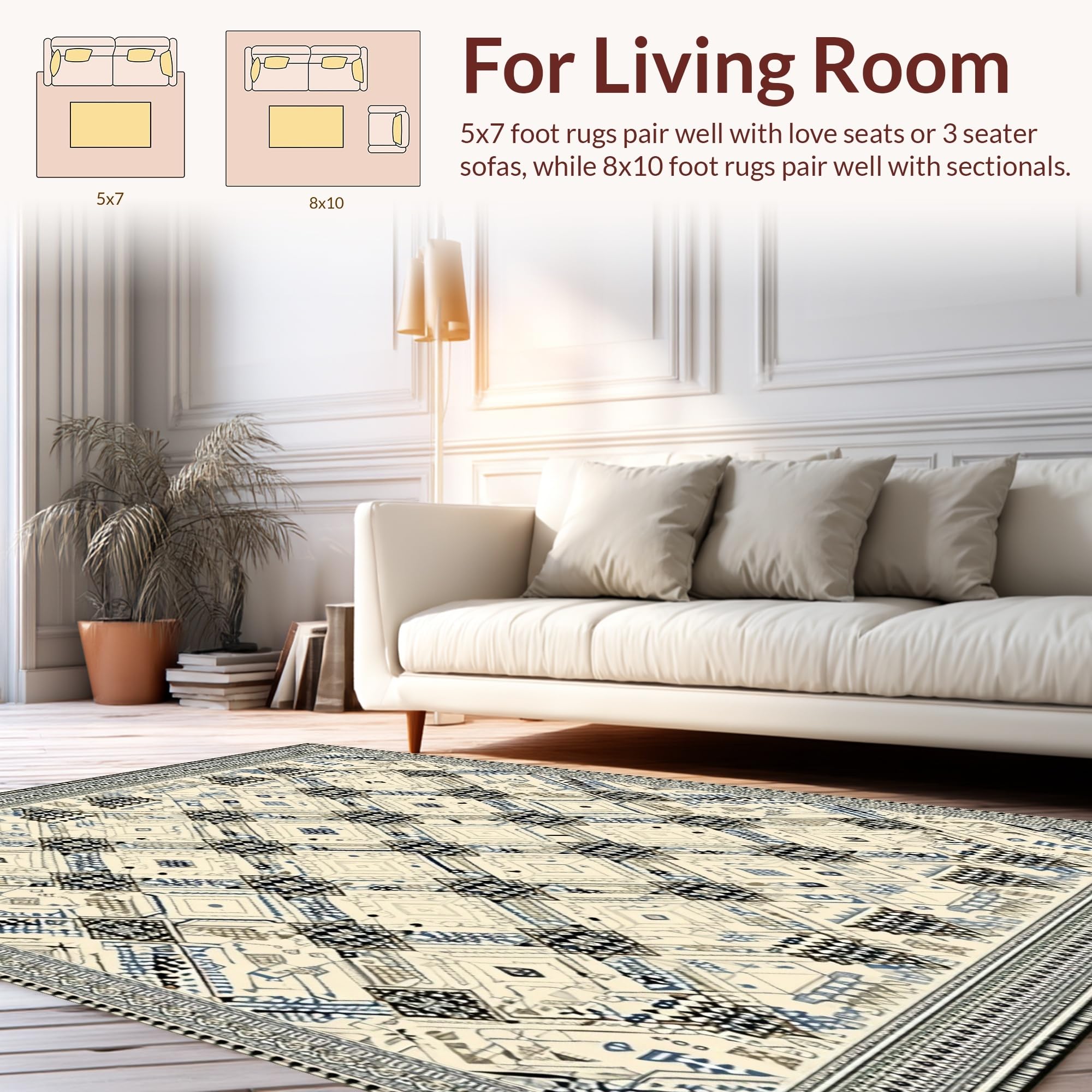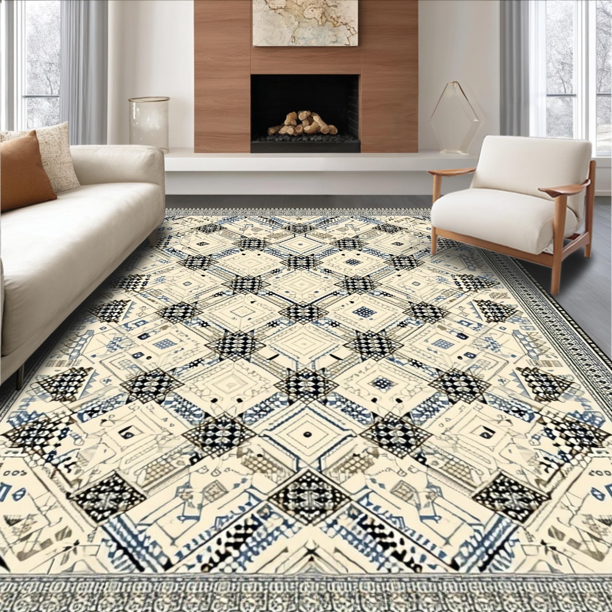 Ultra Soft Area Rug, Non Slip, Stain Resistant, Washable Area Rugs for Living Room, Bedroom, Classic Diamond Lattice Area Showcasing Subtle Black and Beige Symmetry(Beige) Overview: