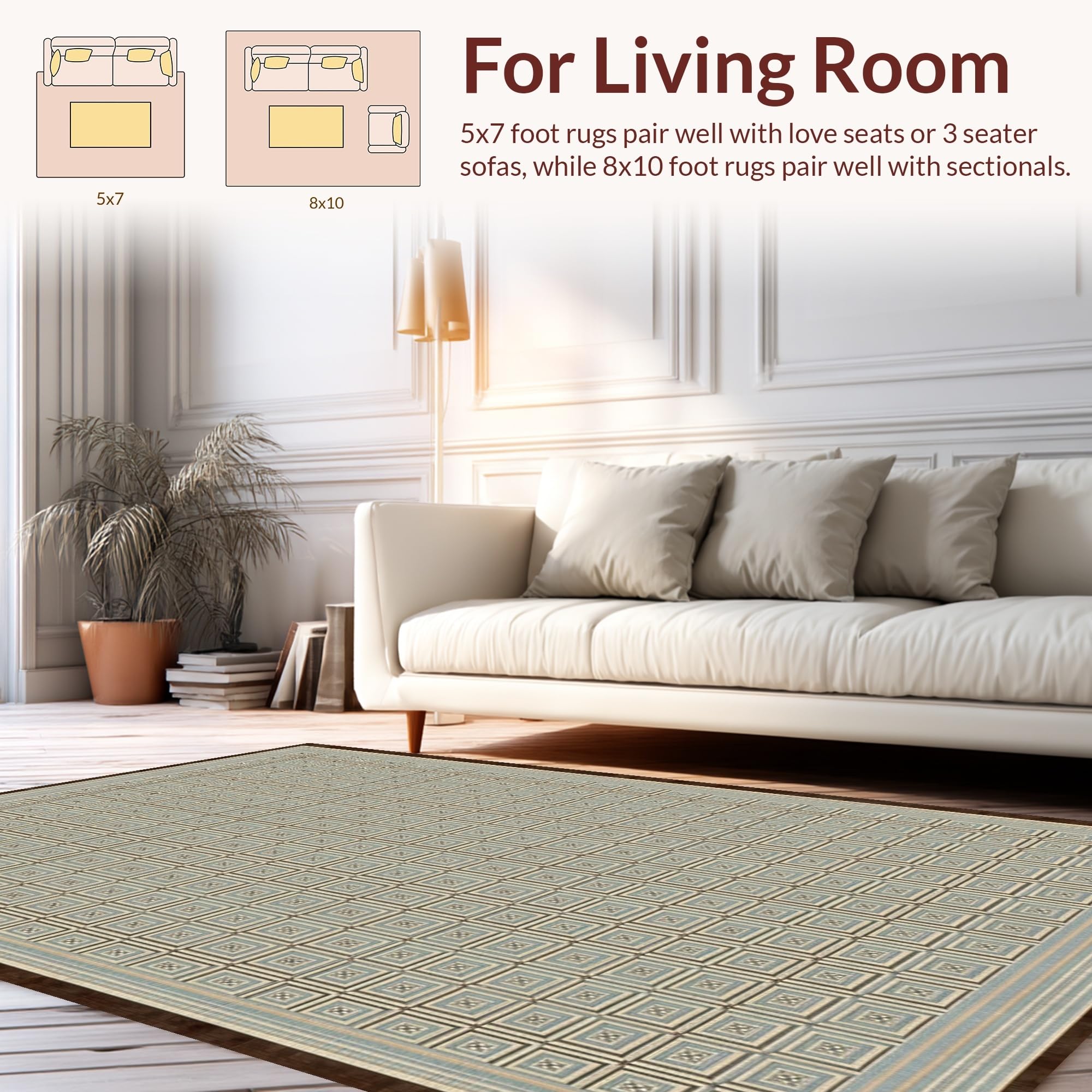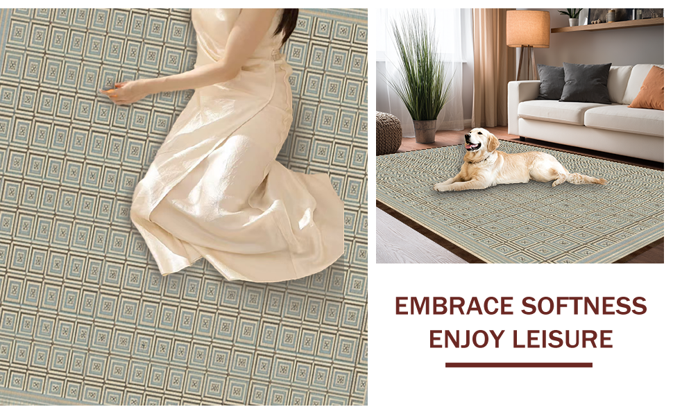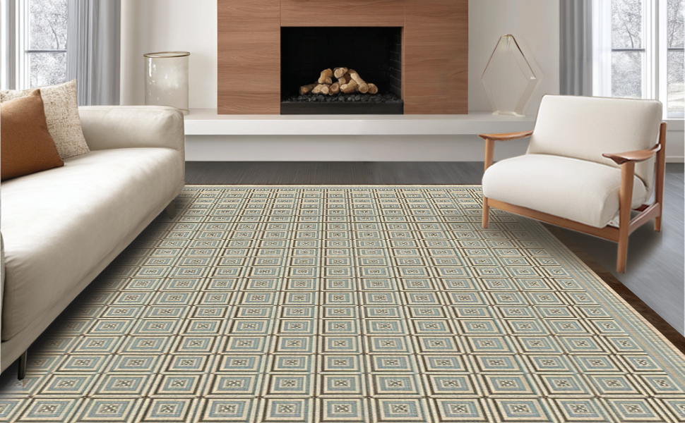 Ultra Soft Area Rug, Non Slip, Stain Resistant, Washable Area Rugs for Living Room, Bedroom, Classic Diamond Pattern in Earthy Hues(Beige) Overview:
