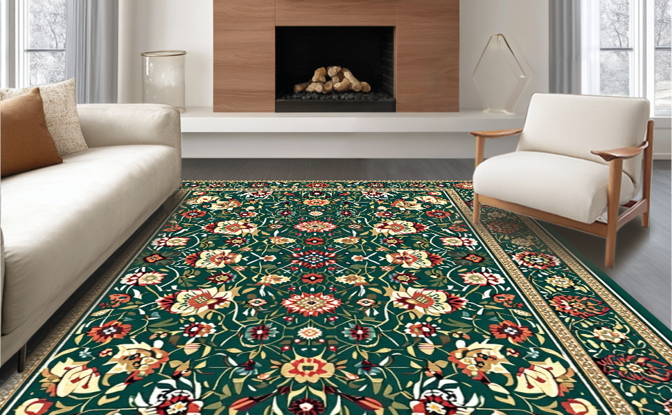 Ultra Soft Area Rug, Non Slip, Stain Resistant, Washable Area Rugs for Living Room, Bedroom, Classic Diamond Patterned Throw(Green) Overview: