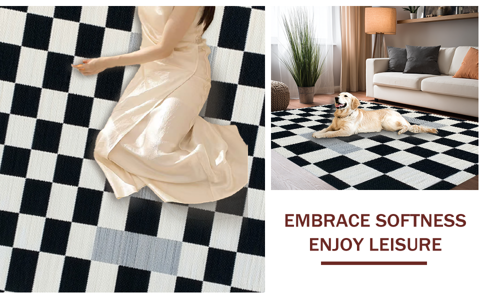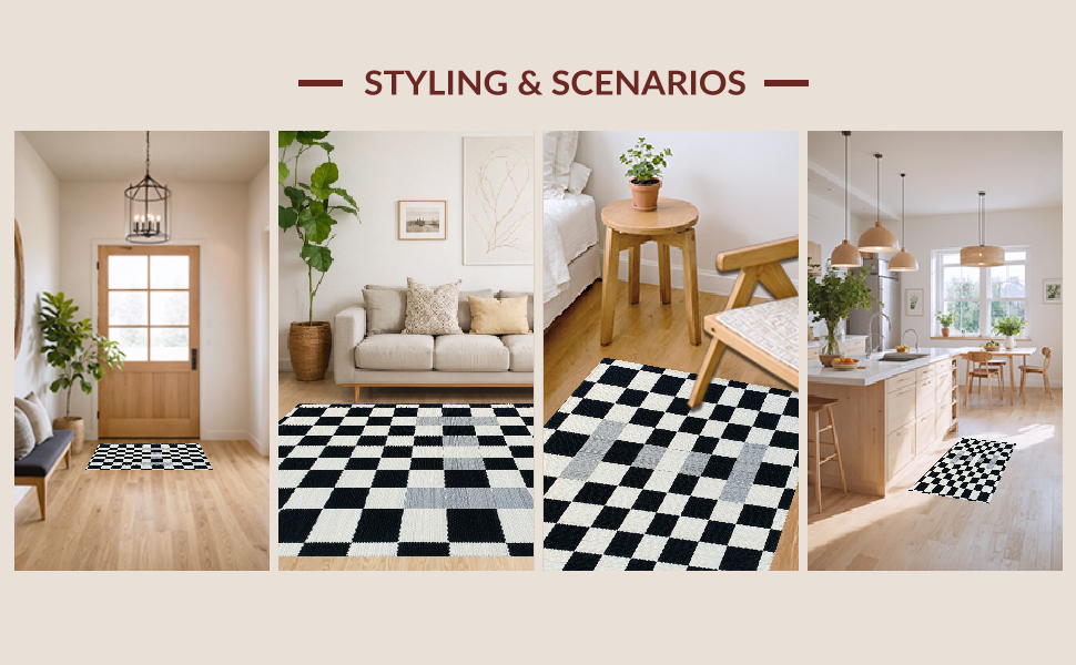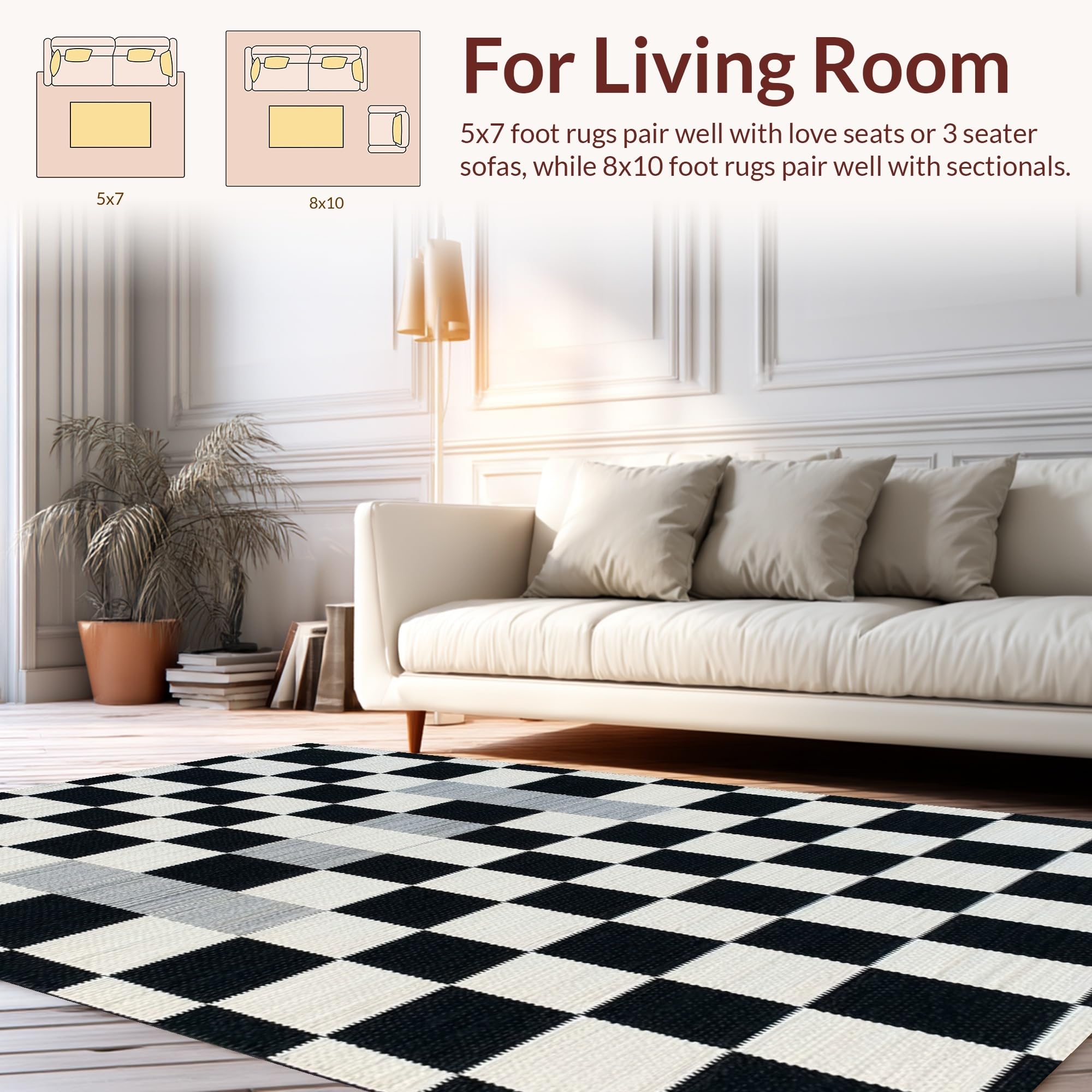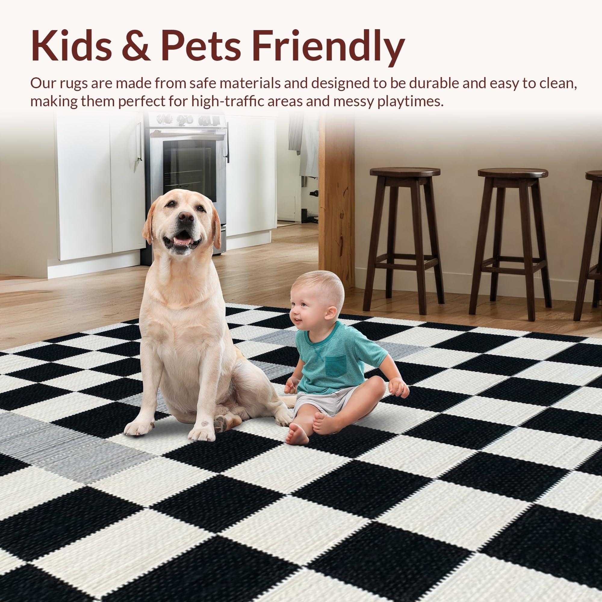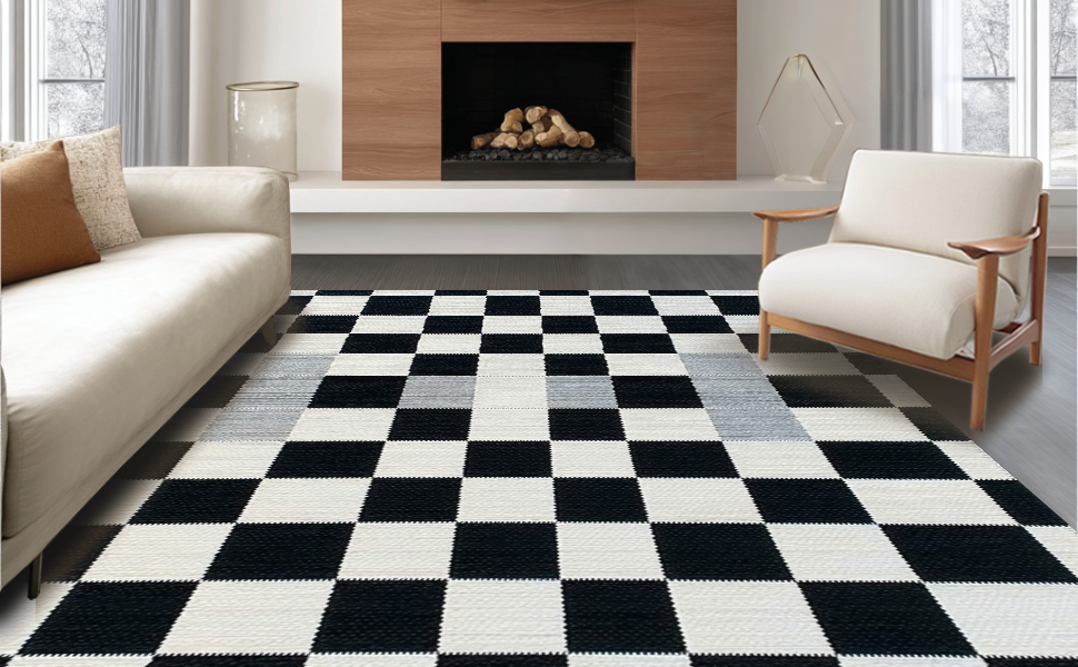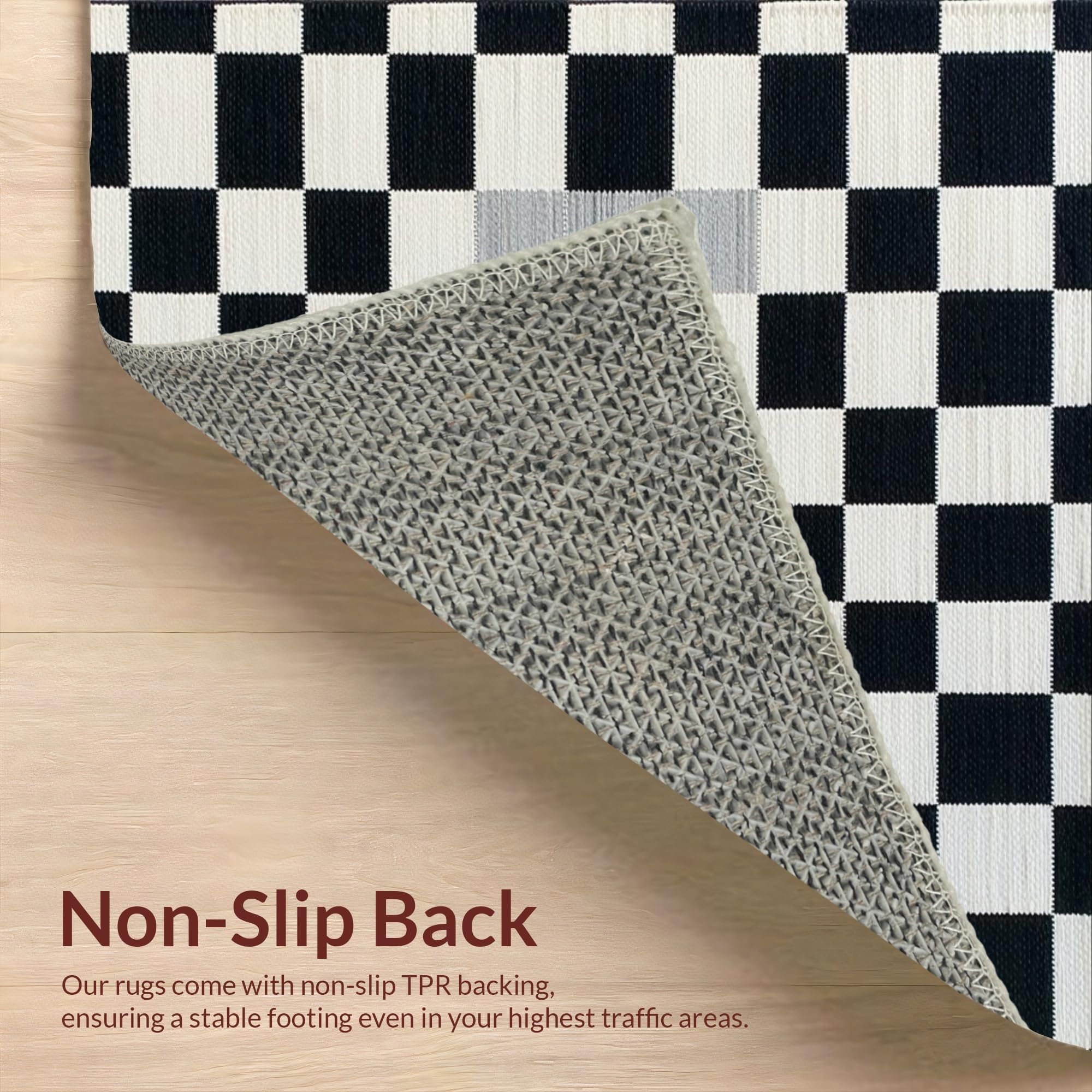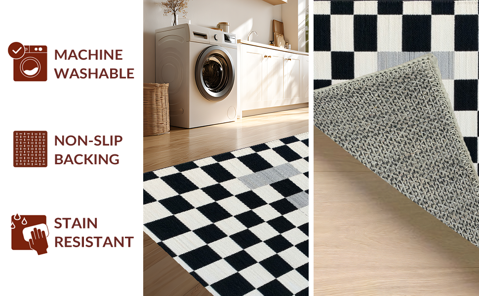 Ultra Soft Area Rug, Non Slip, Stain Resistant, Washable Area Rugs for Living Room, Bedroom, Classic Dual-Tone Checker Pattern(Black) Overview: