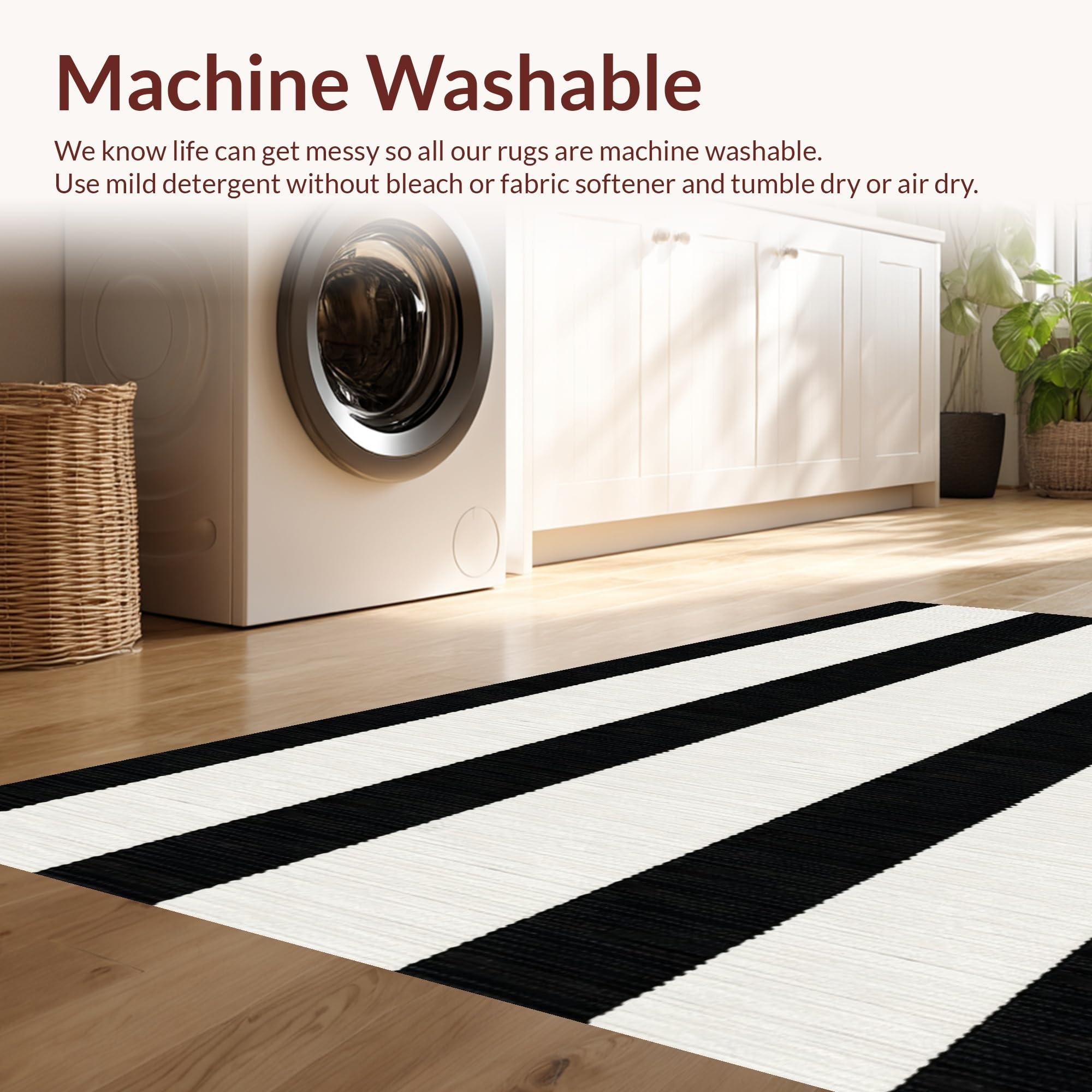 - Machine Washable: Our rugs can be easily thrown in the wash machine.
