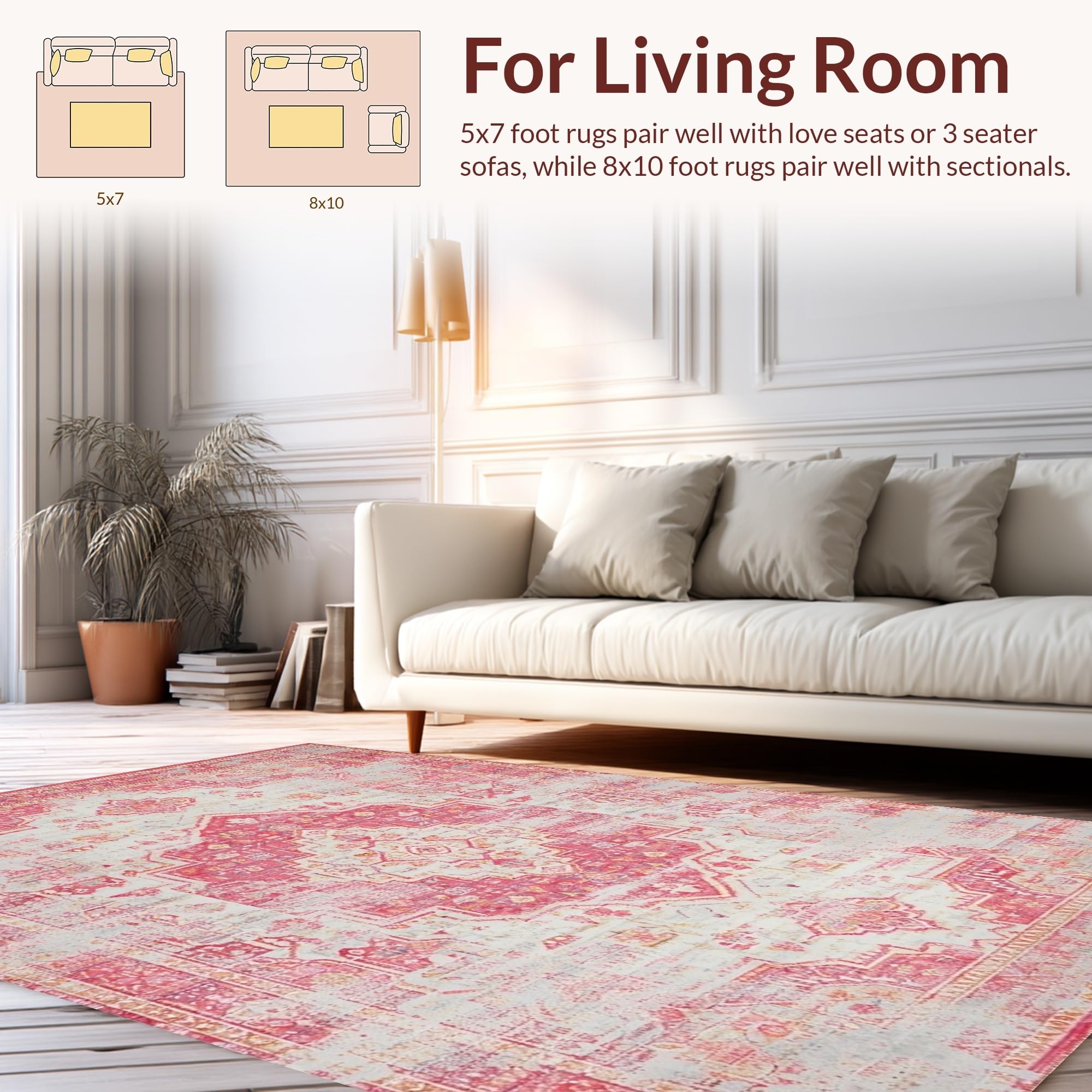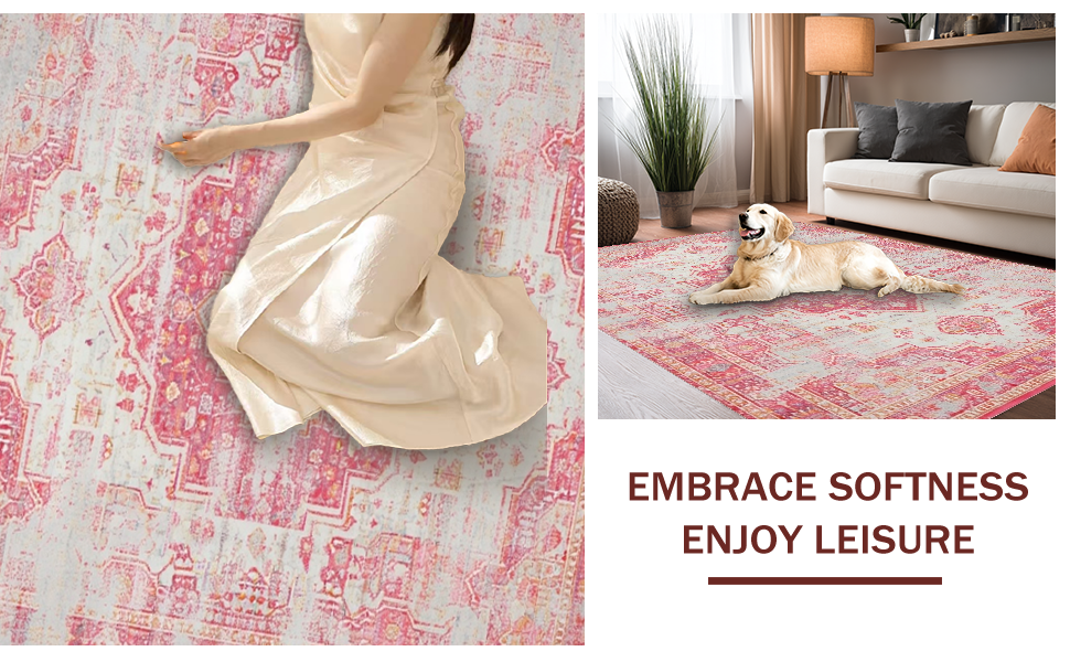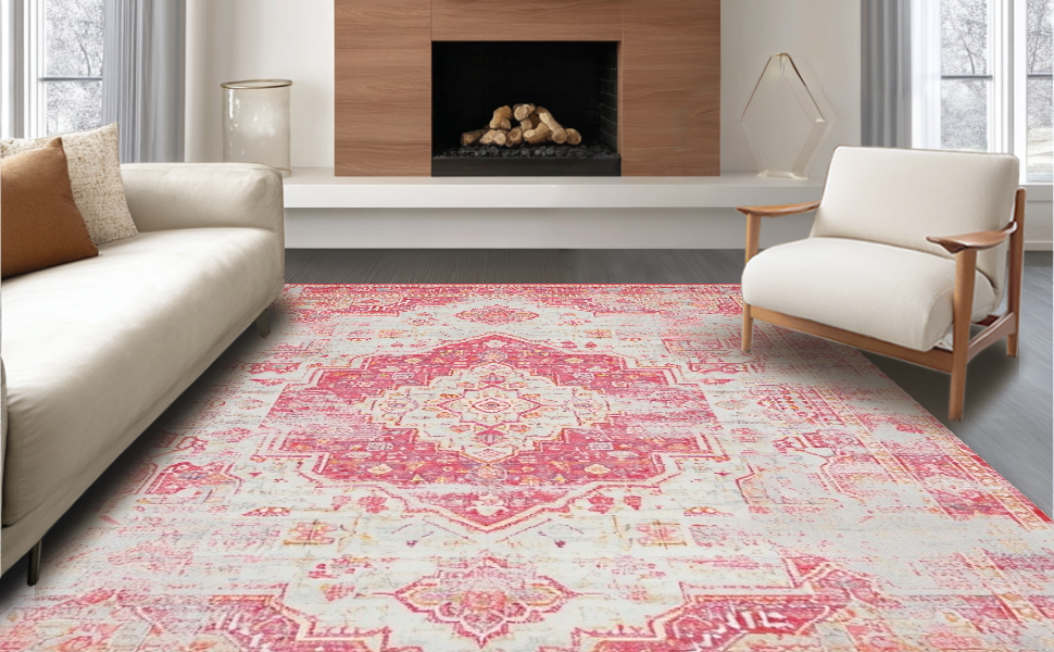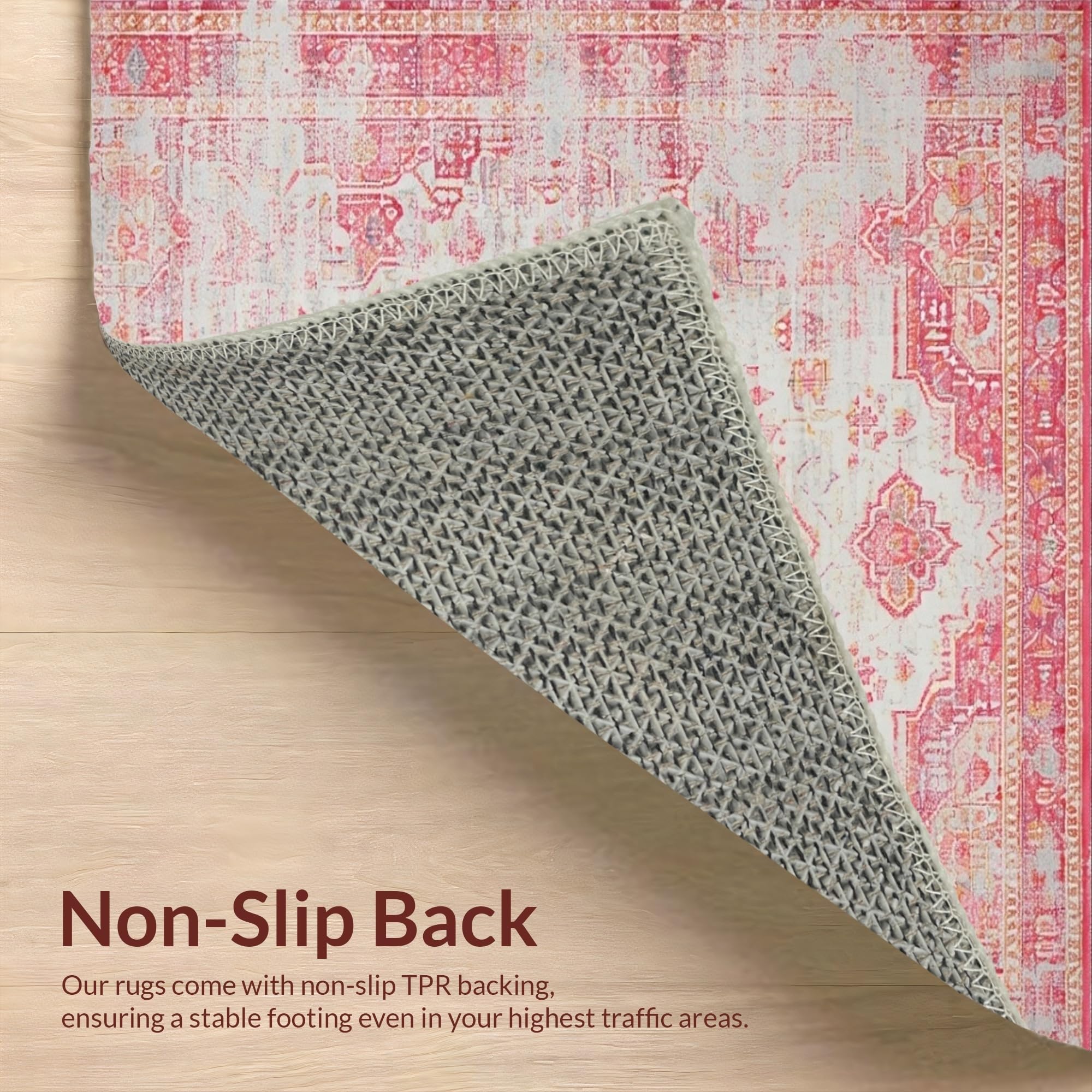 Ultra Soft Area Rug, Non Slip, Stain Resistant, Washable Area Rugs for Living Room, Bedroom, Classic Elegant Scrollwork Theme(Red) Overview: