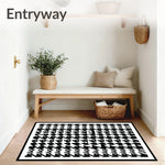 Classic Entryway Rug with Black and White Houndstooth Inspired Pattern(Black)
