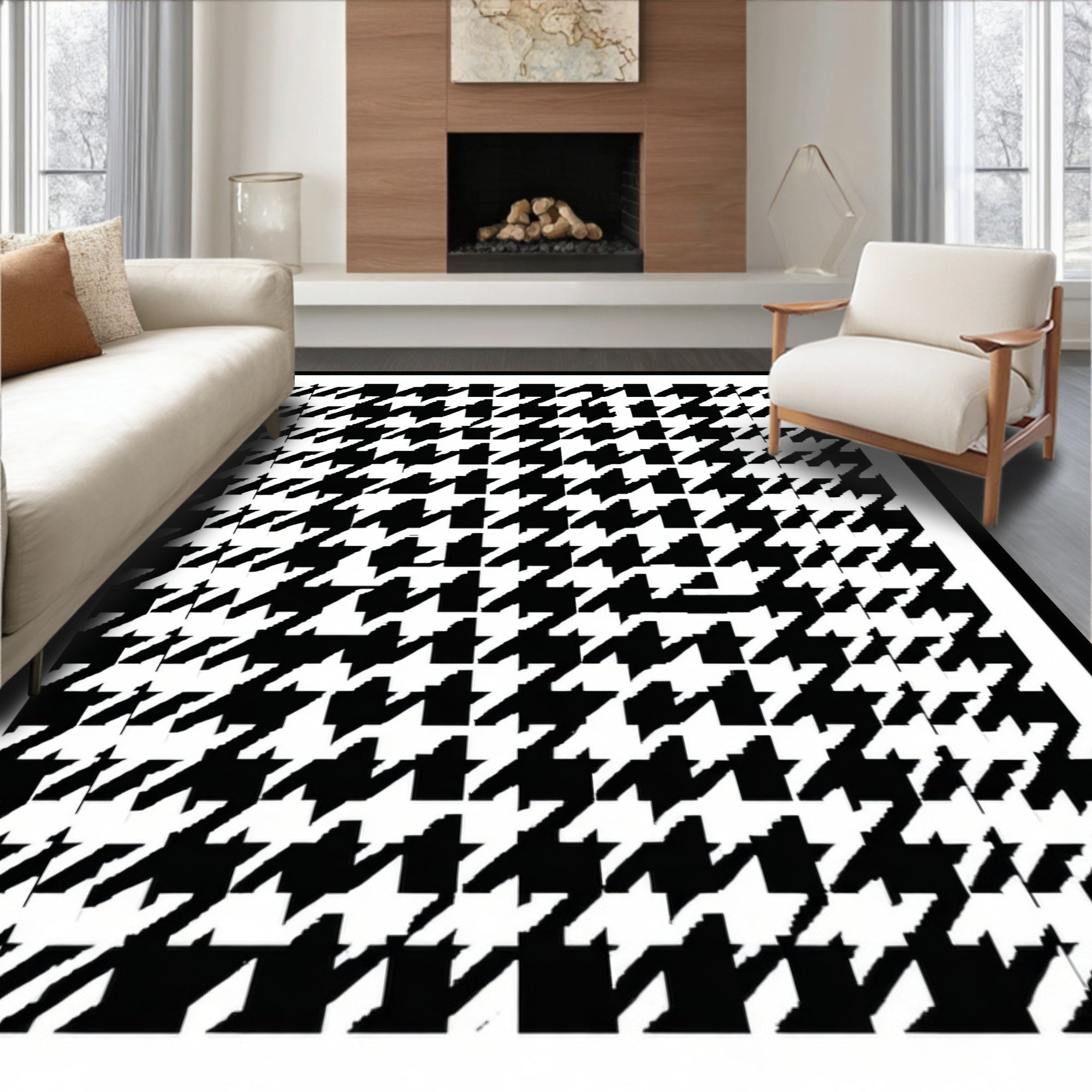 Ultra Soft Area Rug, Non Slip, Stain Resistant, Washable Area Rugs for Living Room, Bedroom, Classic Entryway Rug with Black and White Houndstooth Inspired Pattern(Black) Overview: