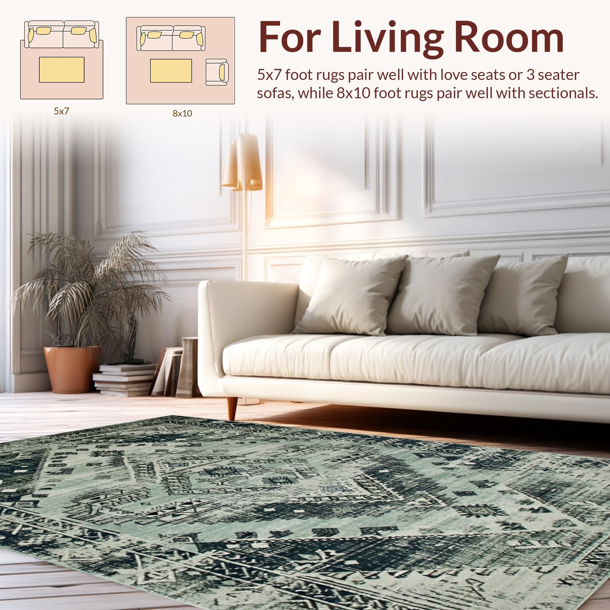 Ultra Soft Area Rug, Non Slip, Stain Resistant, Washable Area Rugs for Living Room, Bedroom, Classic Ethereal Ogee Style(Gray) Overview: