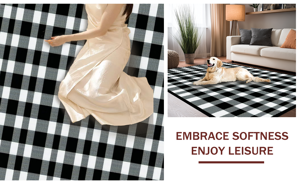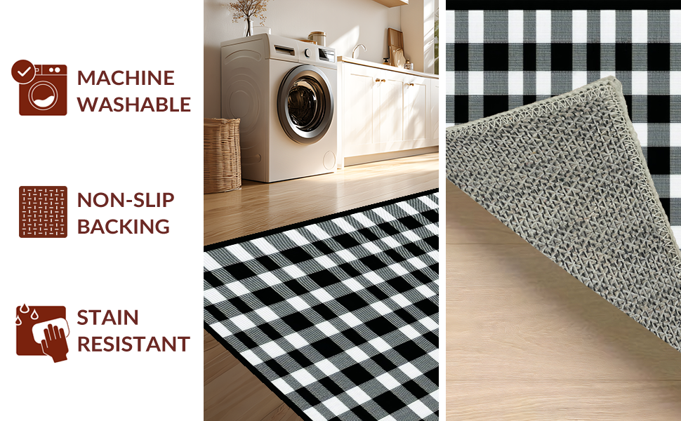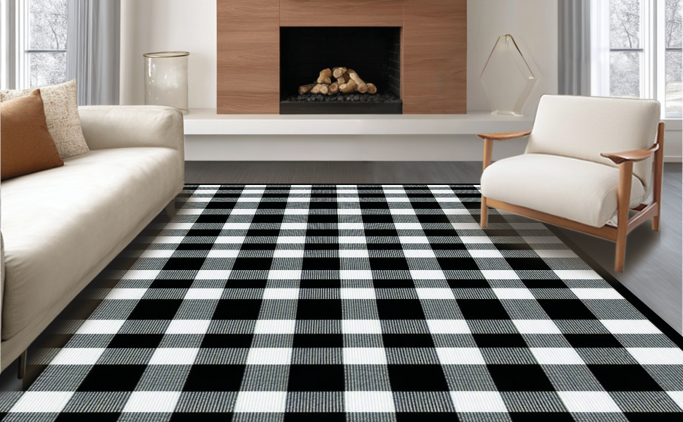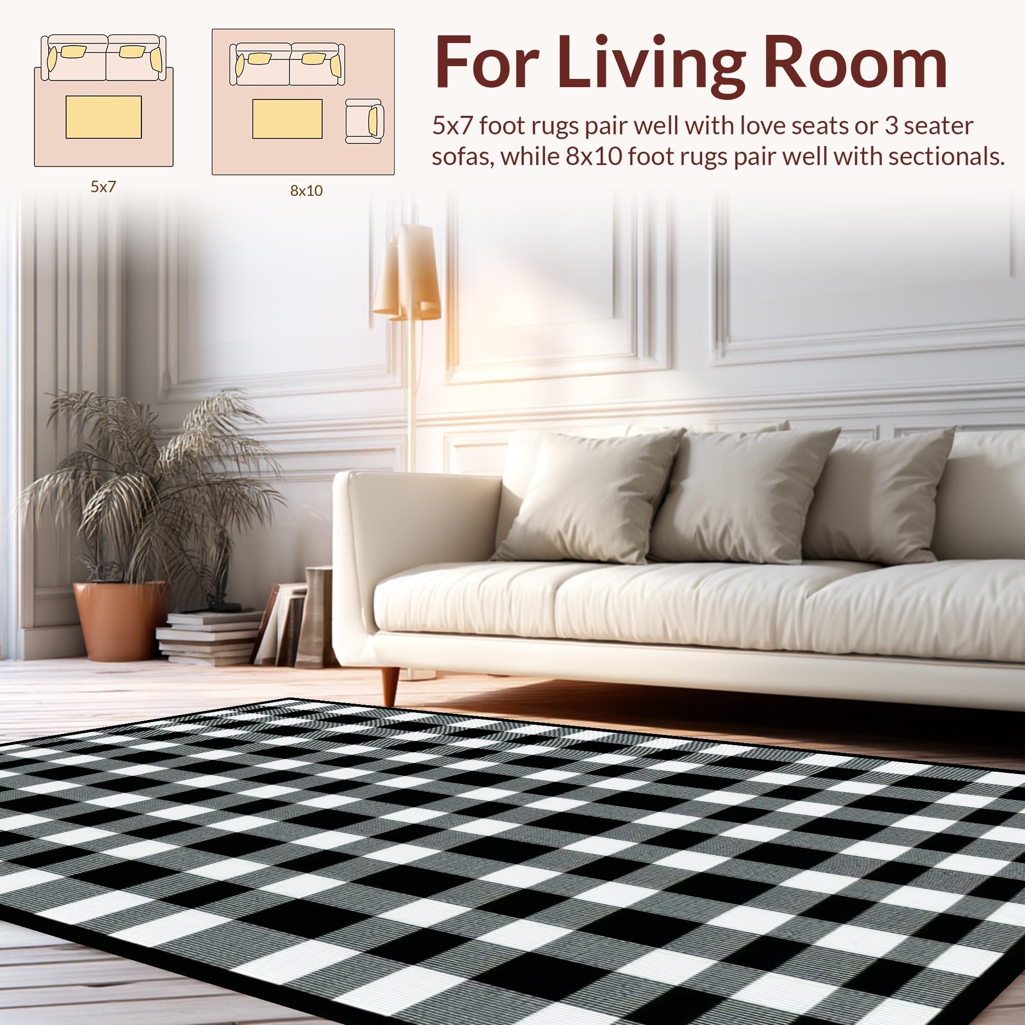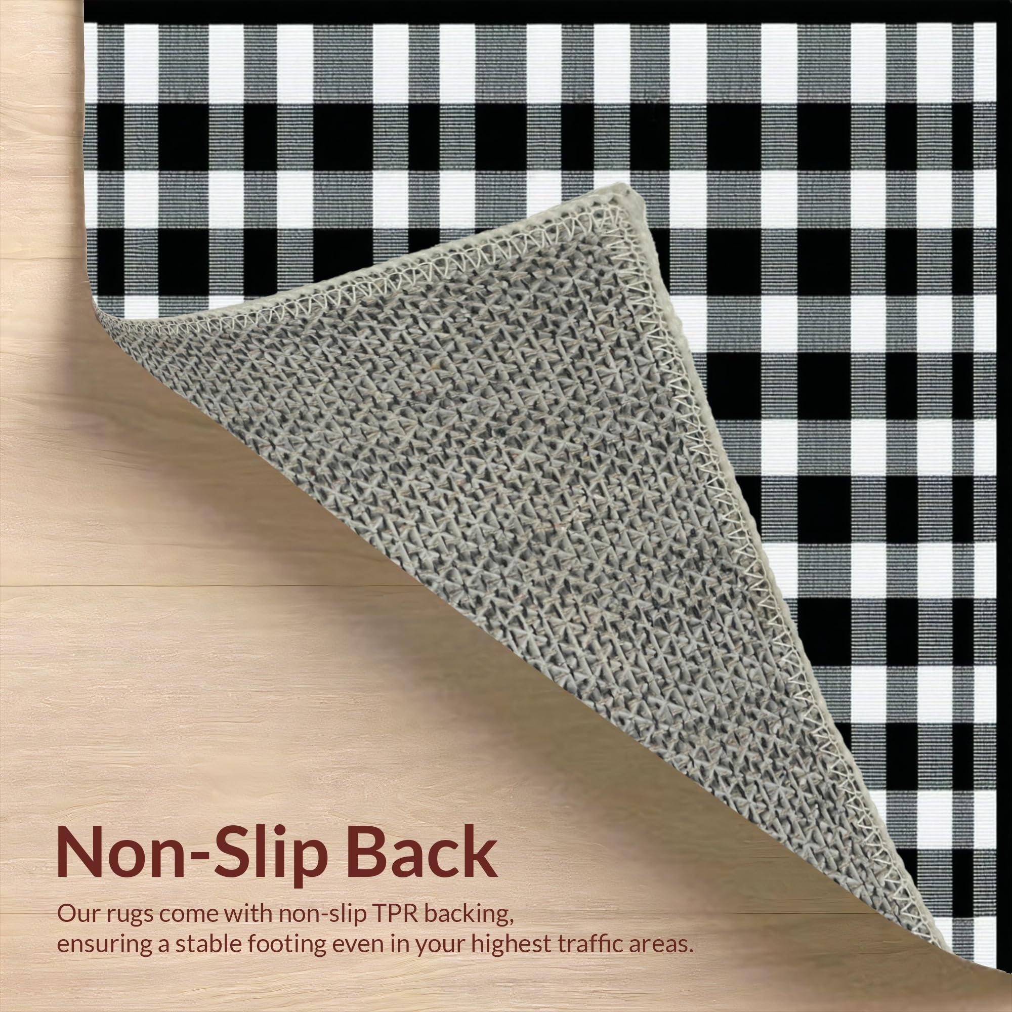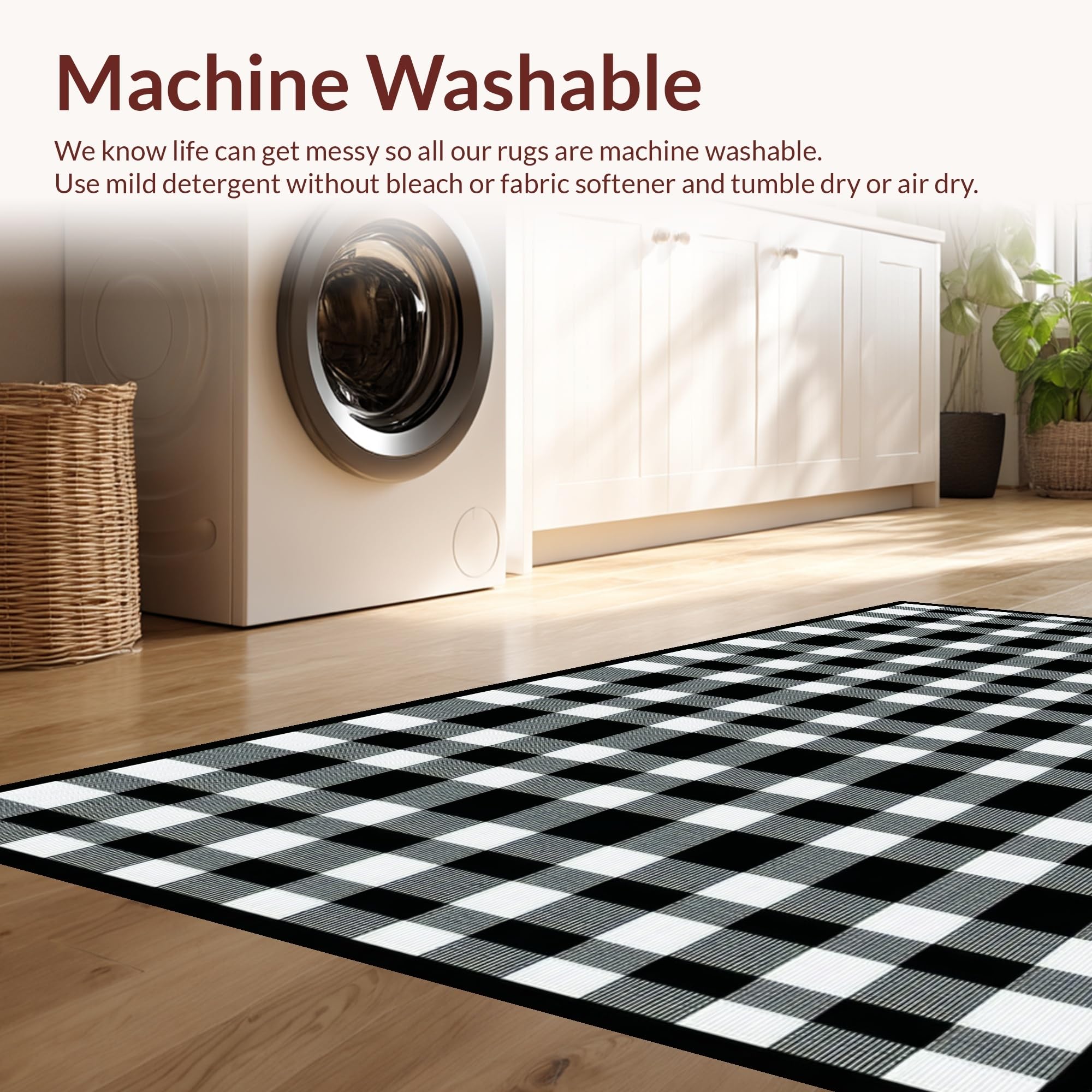 Ultra Soft Area Rug, Non Slip, Stain Resistant, Washable Area Rugs for Living Room, Bedroom, Classic Farmhouse Plaid Aesthetic(Black) Overview: