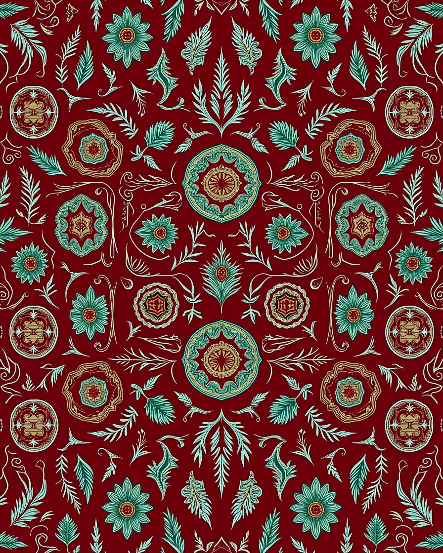 Classic Festive Pinecone Medallion Interlocking Botanical Heritage(Red)