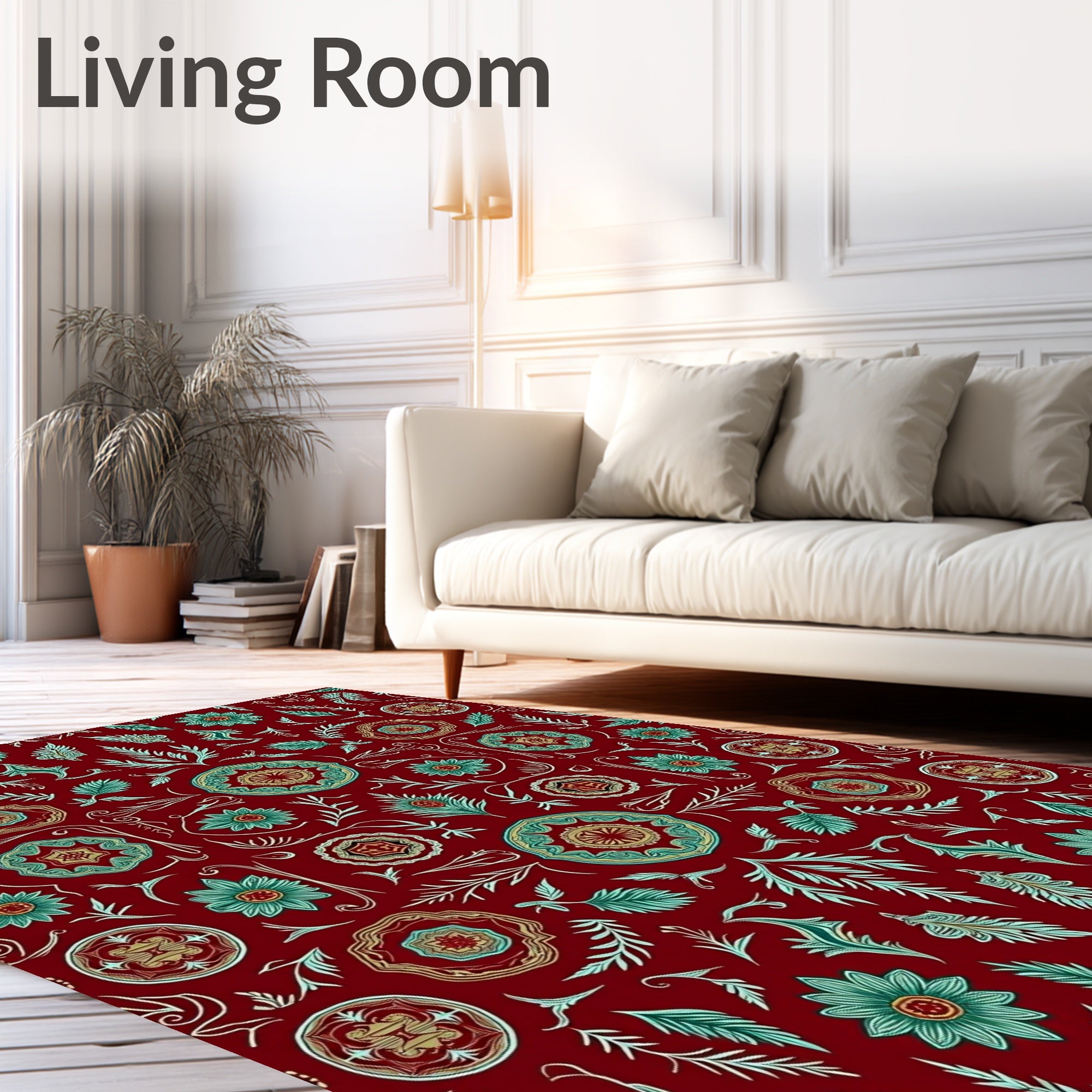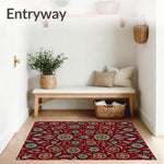 Ultra Soft Area Rug, Non Slip, Stain Resistant, Washable Area Rugs for Living Room, Bedroom, Classic Festive Pinecone Medallion Interlocking Botanical Heritage(Red) Overview: