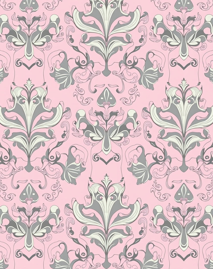 Classic Floral Damask Motif Enhanced by Subtle Pastel Filigree Detailing(Pink)